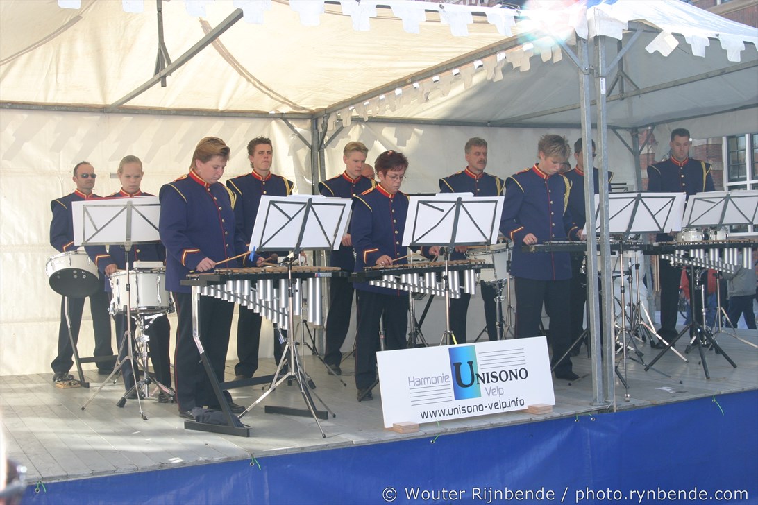 1 januari 2006 - Diverse foto's van optredens van het malletkorps en het orkest van Unisono Velp. Met o.a. Koninginnedag Velp, Airborne wandeltocht Oosterbeek, Doesburg binnenstebuiten, Dag van de chocolade (Zutphen) en Villapark Velp.