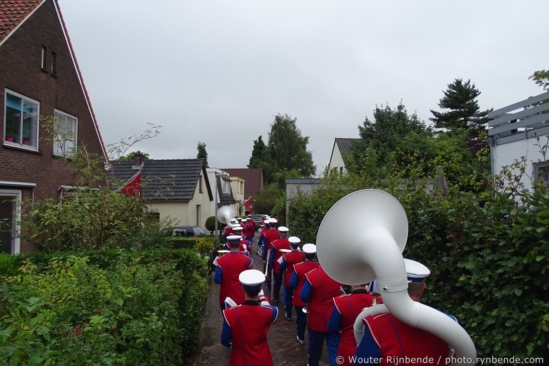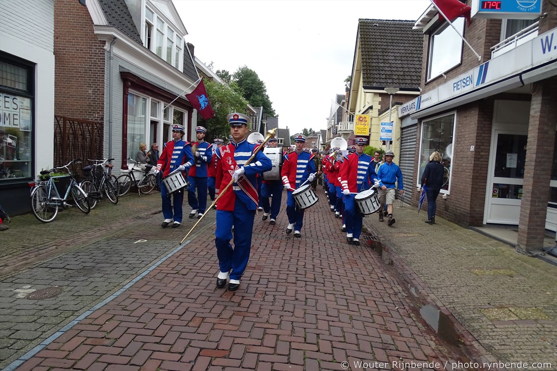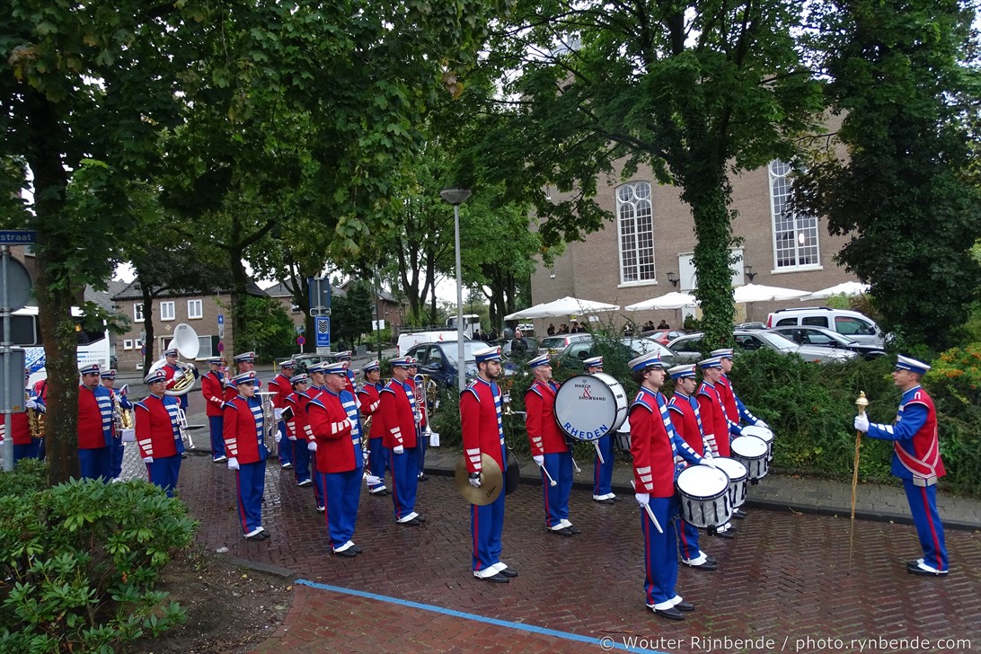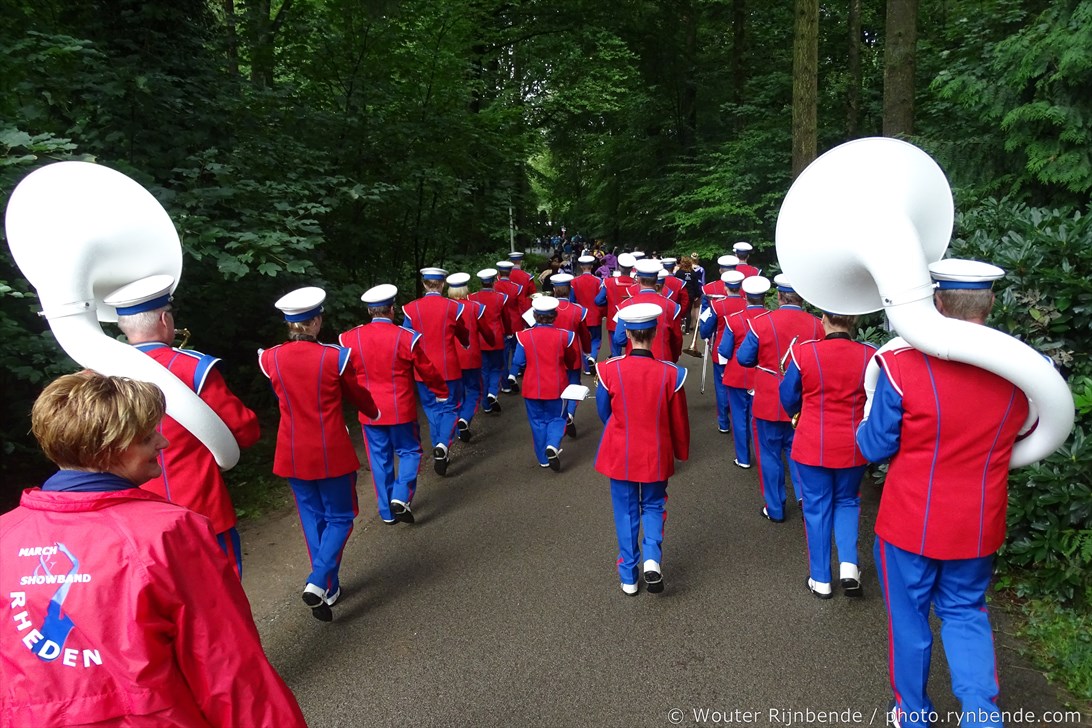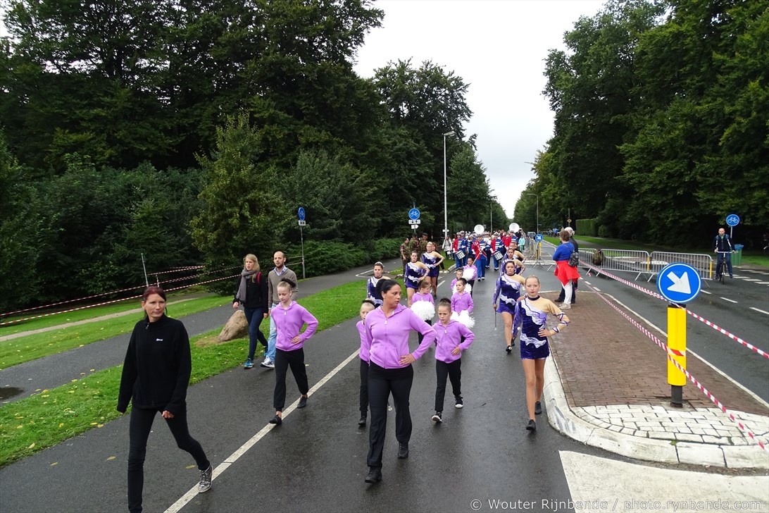 5 september 2015 - Veel regen vandaag tijdens de 69e Airborne Wandeltocht in Oosterbeek. Een nat pak weerhield de March en Showband Rheden er niet van om alle wandelaars te begeleiden bij hun vertrek langs het defilé, en 's middags bij de intocht.