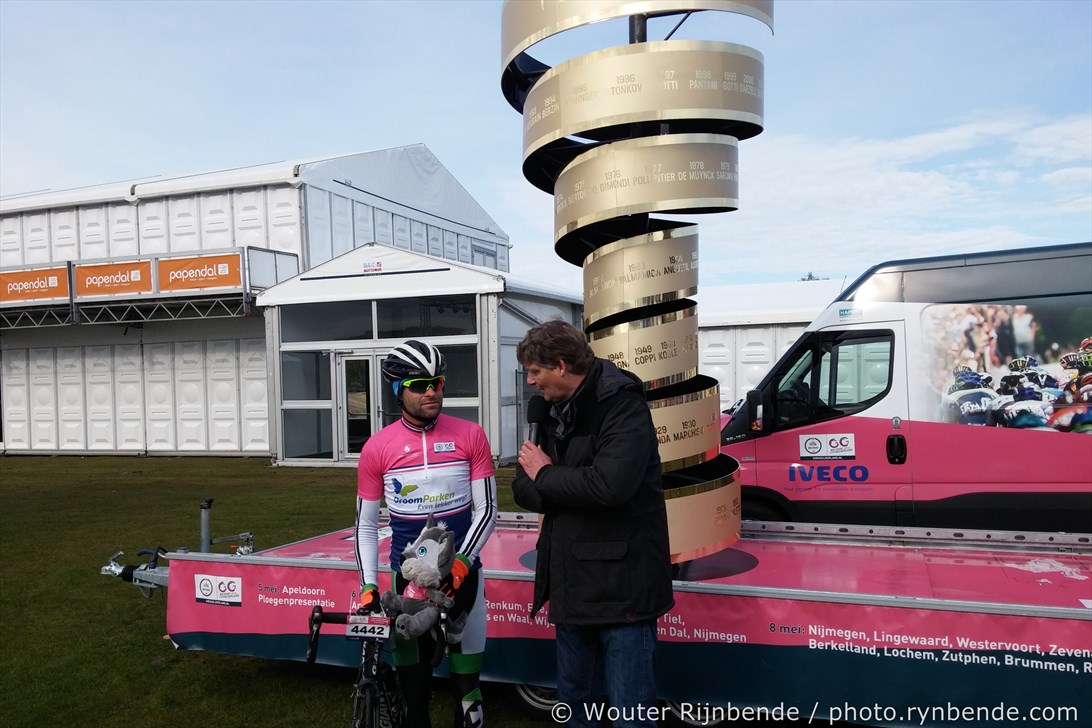 1 mei 2016 - Vandaag samen met Rene de 120 km route van de Giro Tourtocht Gelderland gereden. Vanaf Papendal vertrokken we via Hoenderloo naar Apeldoorn, toen via Loenen, Eerbeek (waar we een heerlijke pitstop hebben gemaakt), Dieren naar Rheden, de Posbank op, Emma-pyramide, Rozendaal, Arnhem, Nijmegen, Elst, Arnhem, Oosterbeek en weer terug naar Papendal.