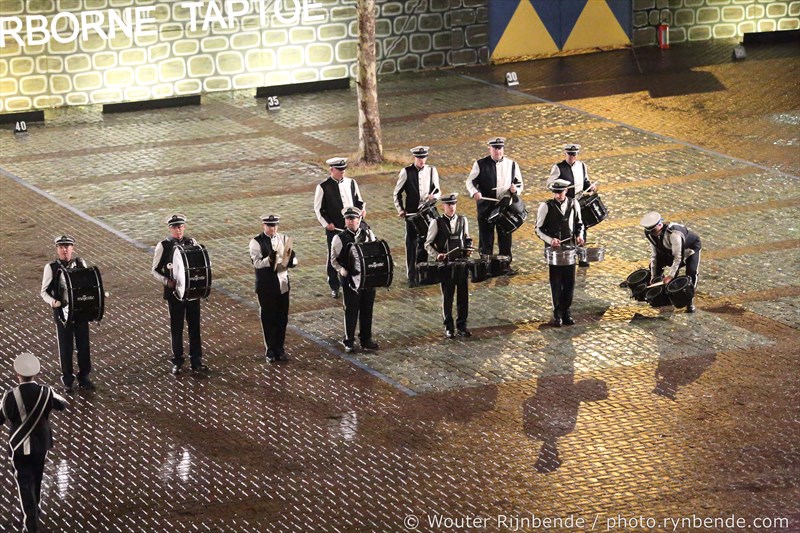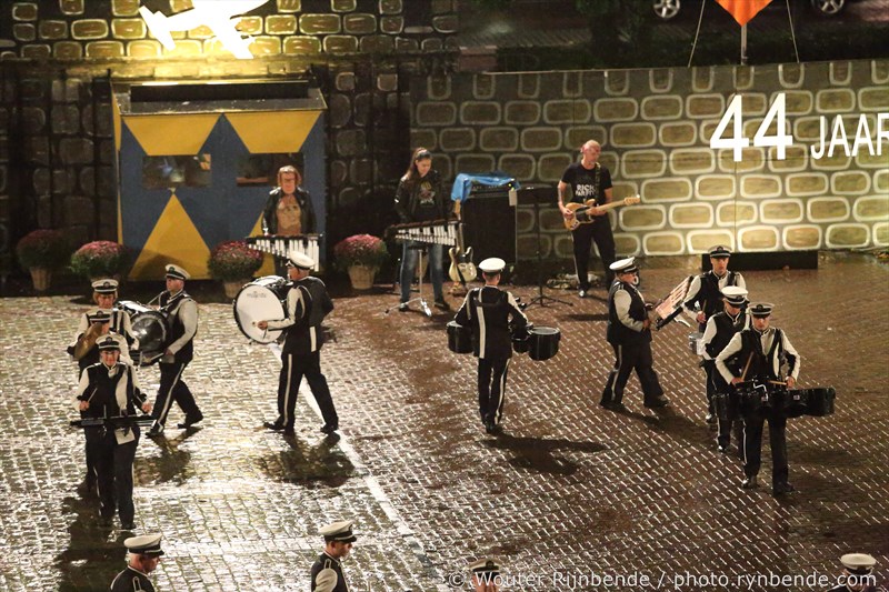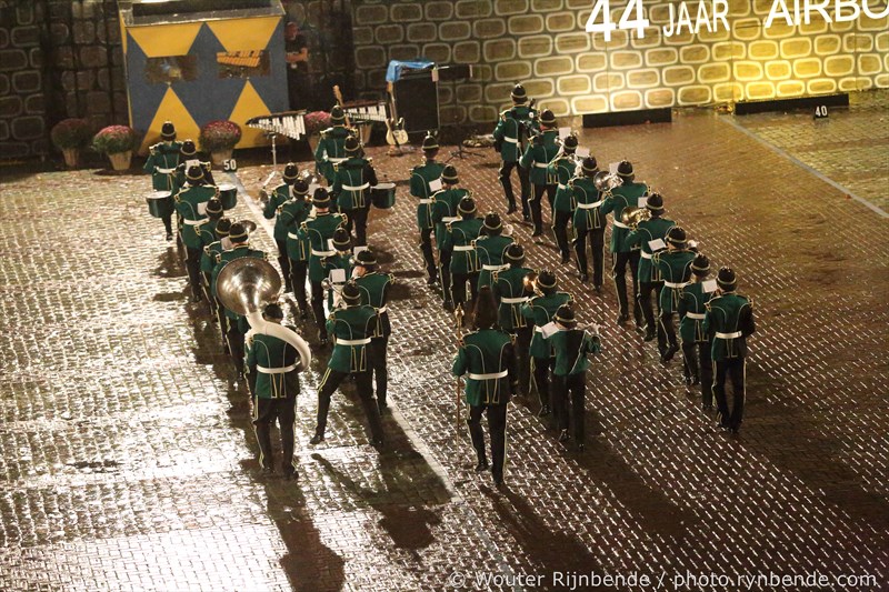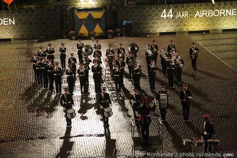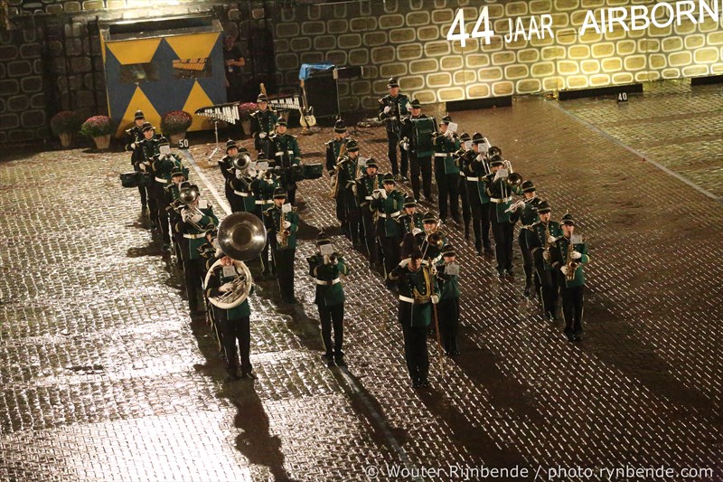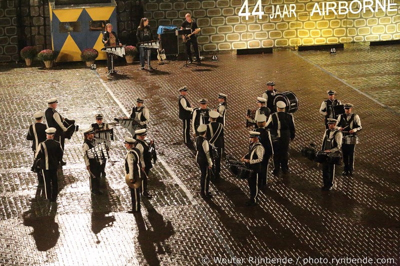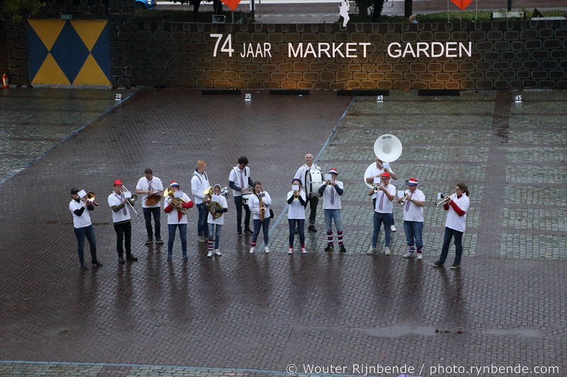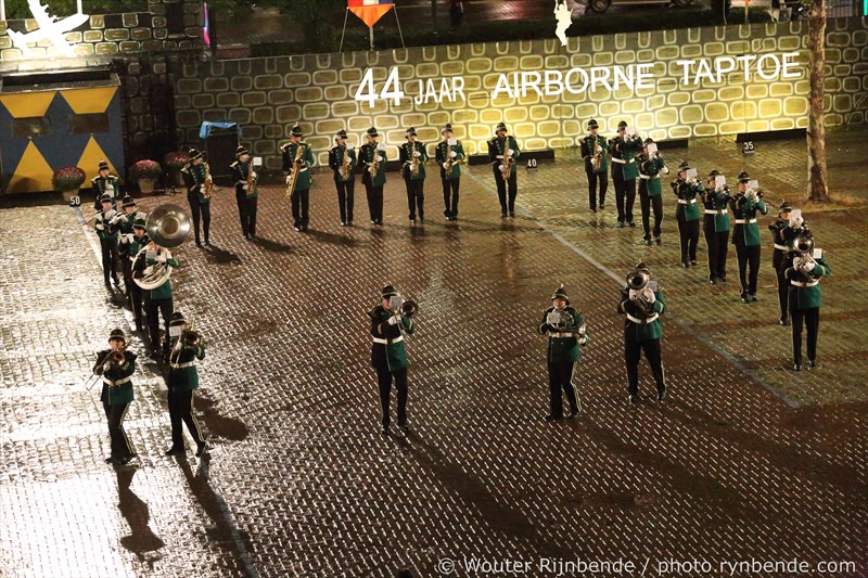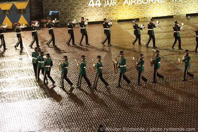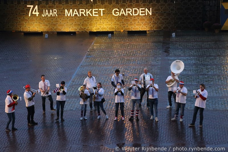 22 september 2018 - Foto's van de 44e Editie van Airborne Taptoe Oosterbeek. Dweilorkest 94½ warmde het publiek op in het voorprogramma van deze regenachtige Taptoe. Daarna konden de bezoekers genieten van optredens van Showband KDO uit Groessen, Excelsior uit Renkum, de Airborne Malletband uit Oosterbeek, het Vrijwillig Fanfarekorps der Genie uit Vught en Exempel uit Empel.