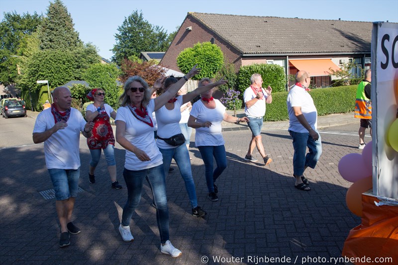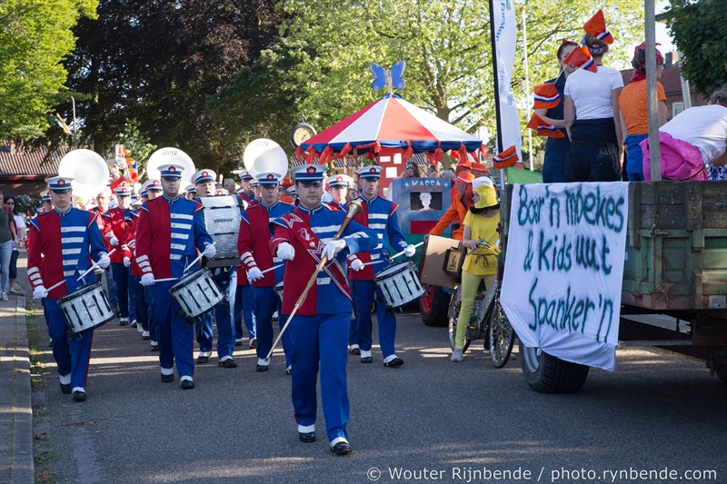 28 juni 2019 - Fotoverslag van de oranje optocht door Spankeren. De optocht werd muzikaal begeleid door muziekvereniging Wilhelmina uit Spankeren (ondersteund door MDVS Doesburg) en March & Showband (Jong) Rheden uit Rheden.