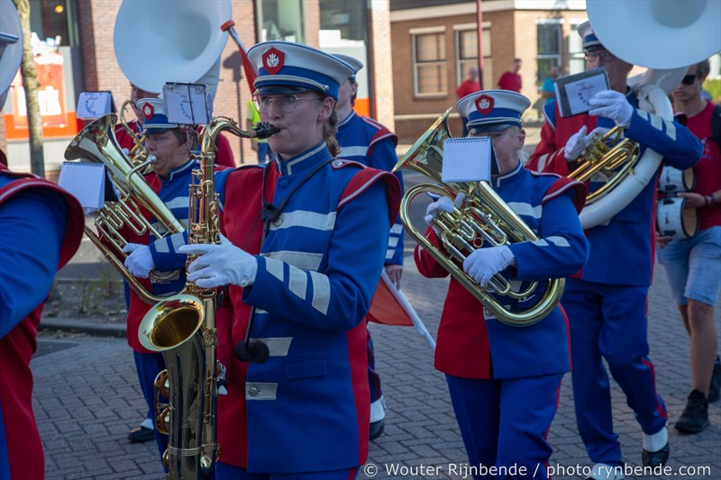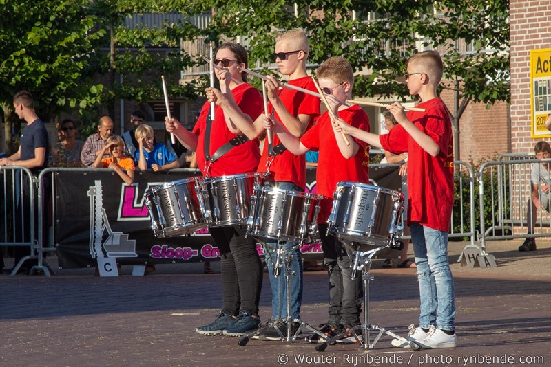 29 juni 2019 - Op het Lindenplein in Ter Aar gaf March & Showband Rheden acte de présence met hun show "The Line Up" tijdens de Taptoe Ter Aar.