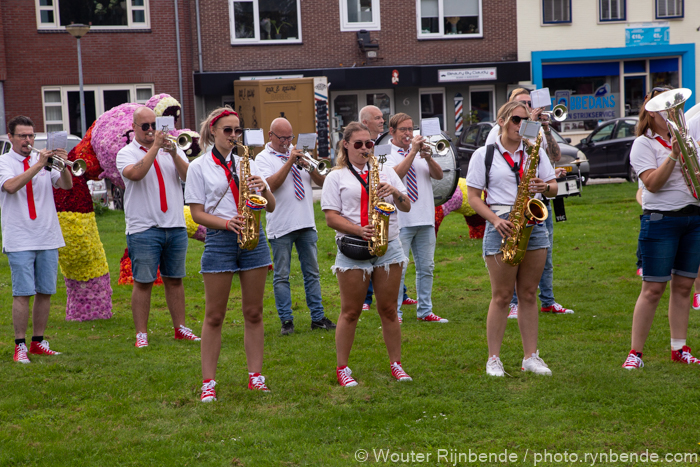 12 september 2021 - Voor het eerst in lange tijd waren er weer vrolijke noten te horen op straat. Dweilorkest 94½ van March & Showband Rheden verleende in Lichtenvoorde haar medewerking aan de Dahlia Kunstobjecten Route.