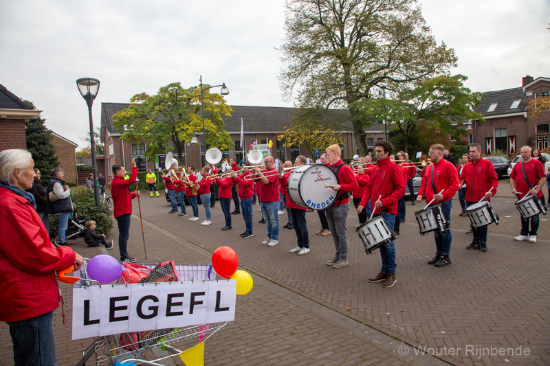23 oktober 2021 - March & Showband Rheden maakte zaterdag 23 oktober een rondgang door Rheden om aandacht te besteden aan hun flessenactie voor nieuwe kleding.