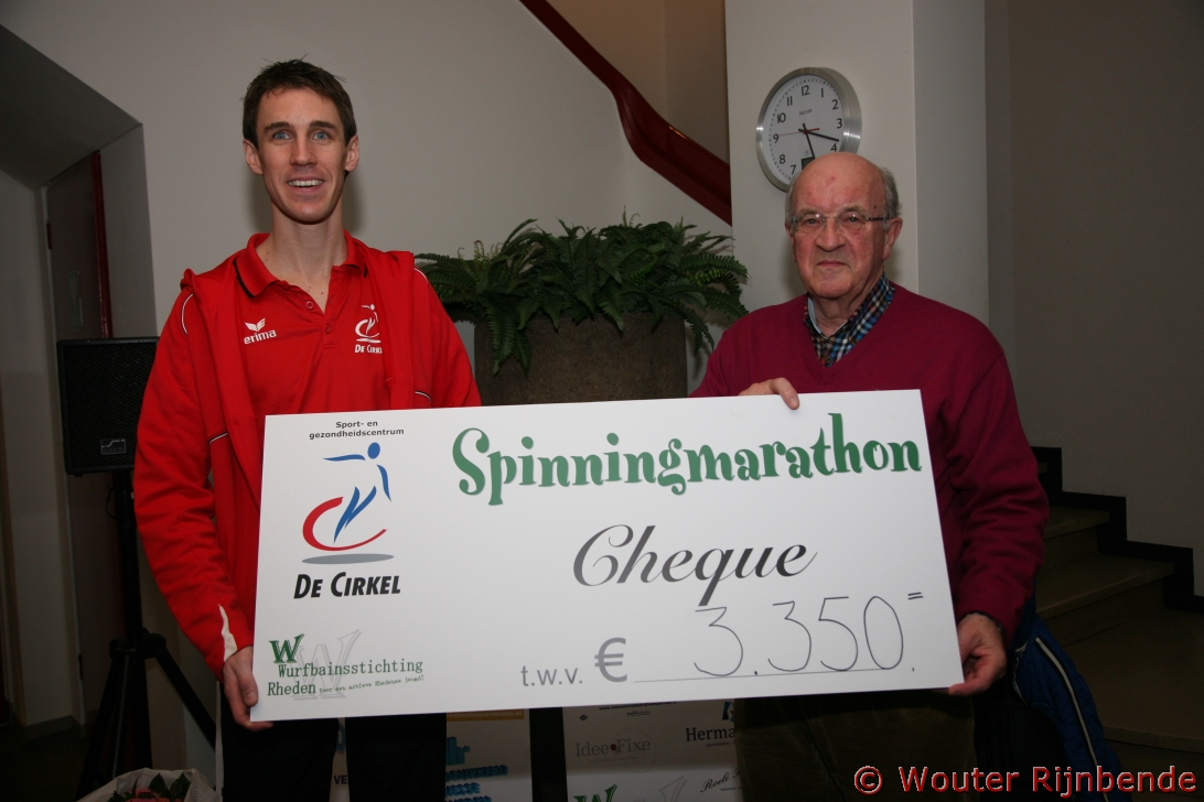 20 januari 2013 - Tijdens de Spinningmarathon bij De Cirkel in Rheden werd EUR 3.350,- ingezameld voor de Wurfbainstichting.