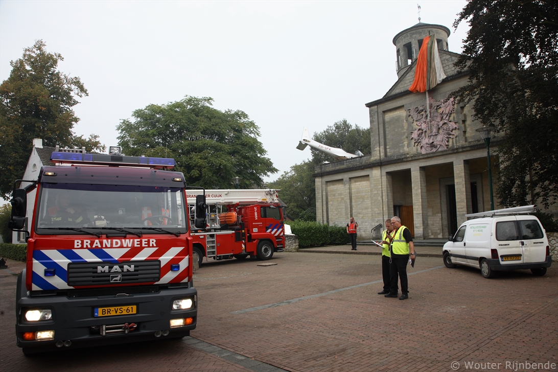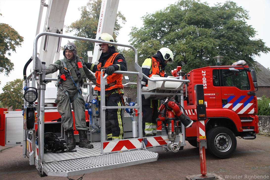 6 september 2014 - Vliegtuig stort neer op kerk bij ABWC brandweerwedstrijden in Oeffelt.