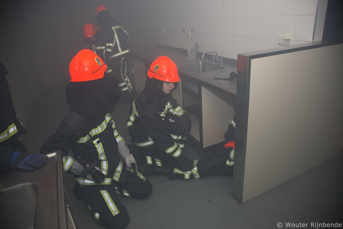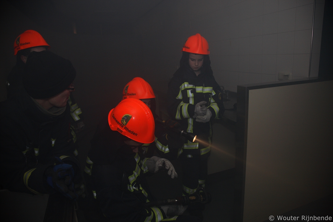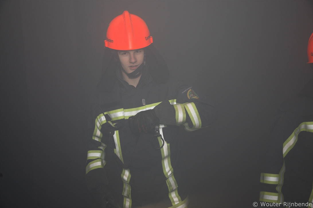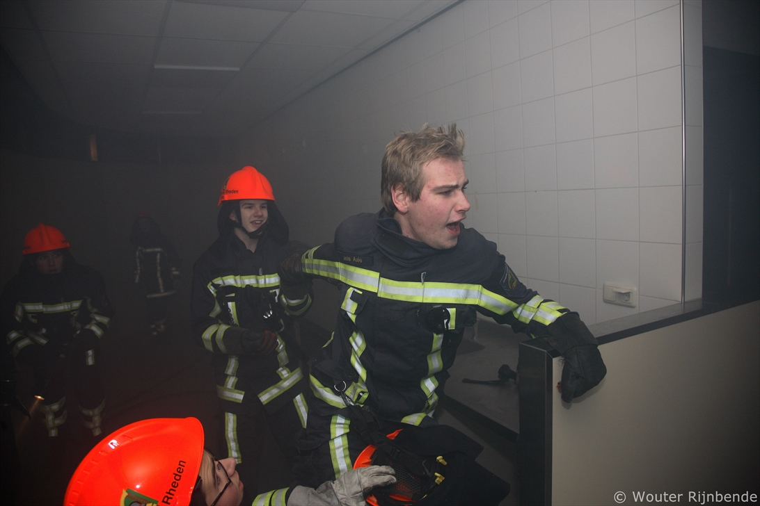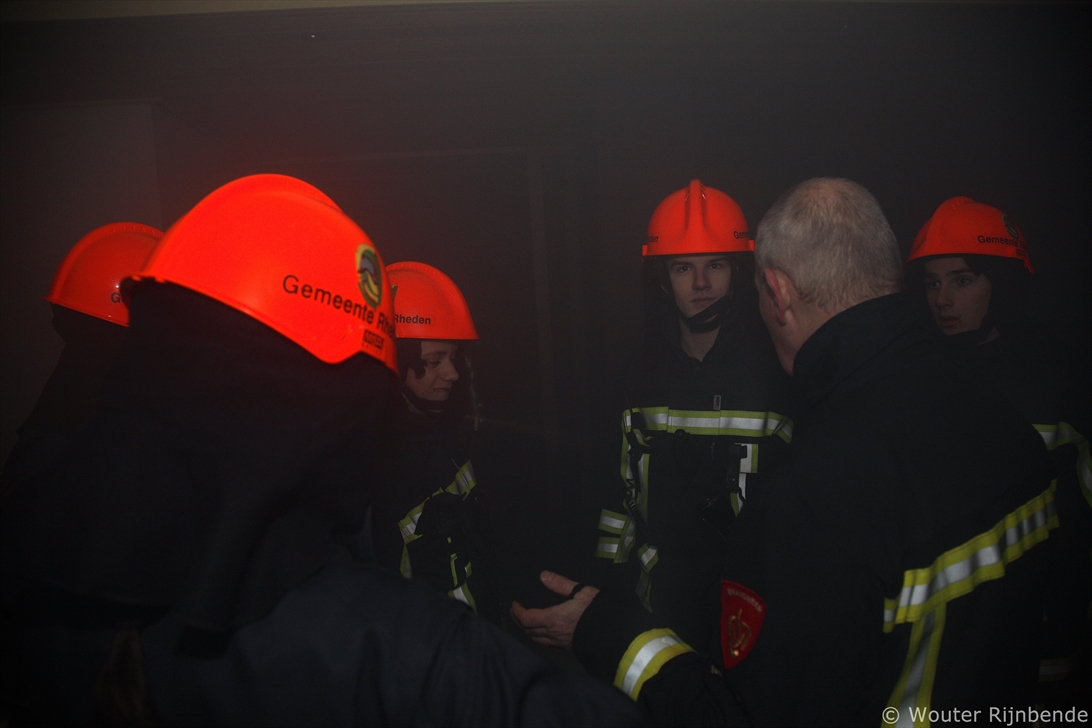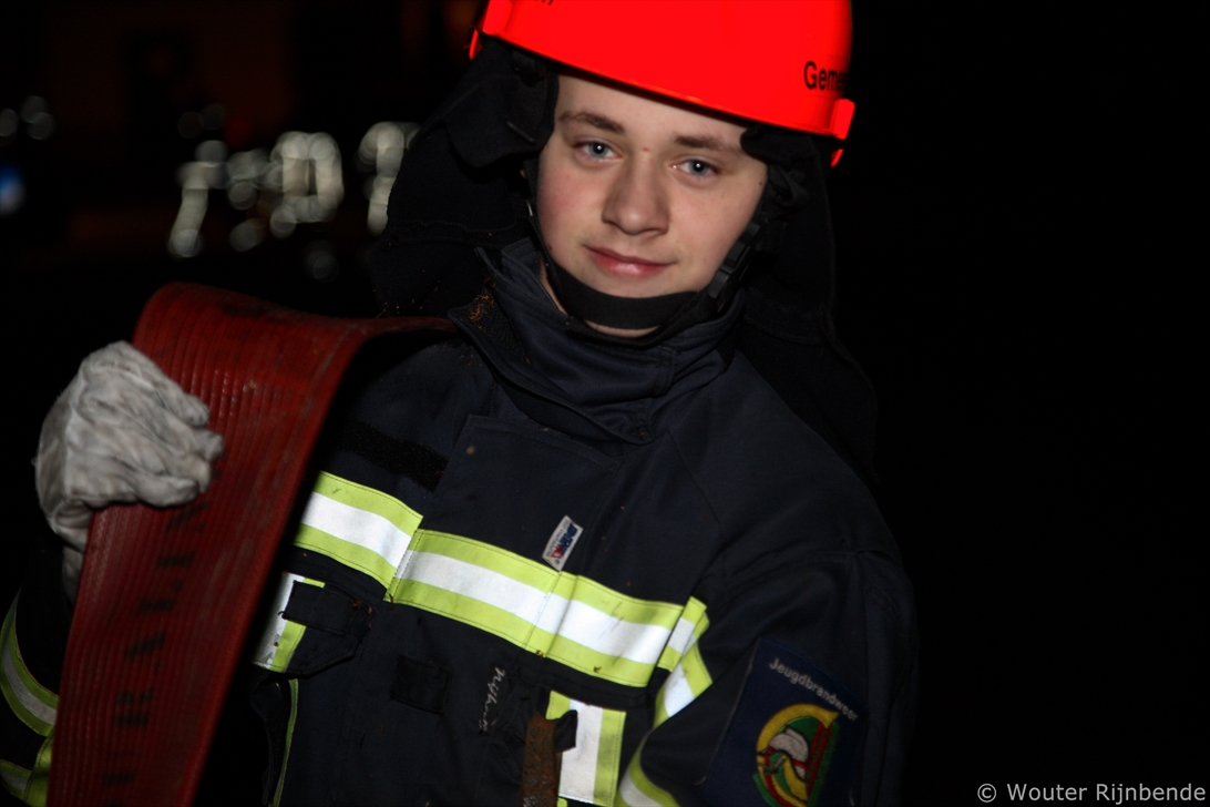 21 januari 2015 - Jeugdbrandweer Rheden oefent tijdens een in scene gezette brand in Velp.
