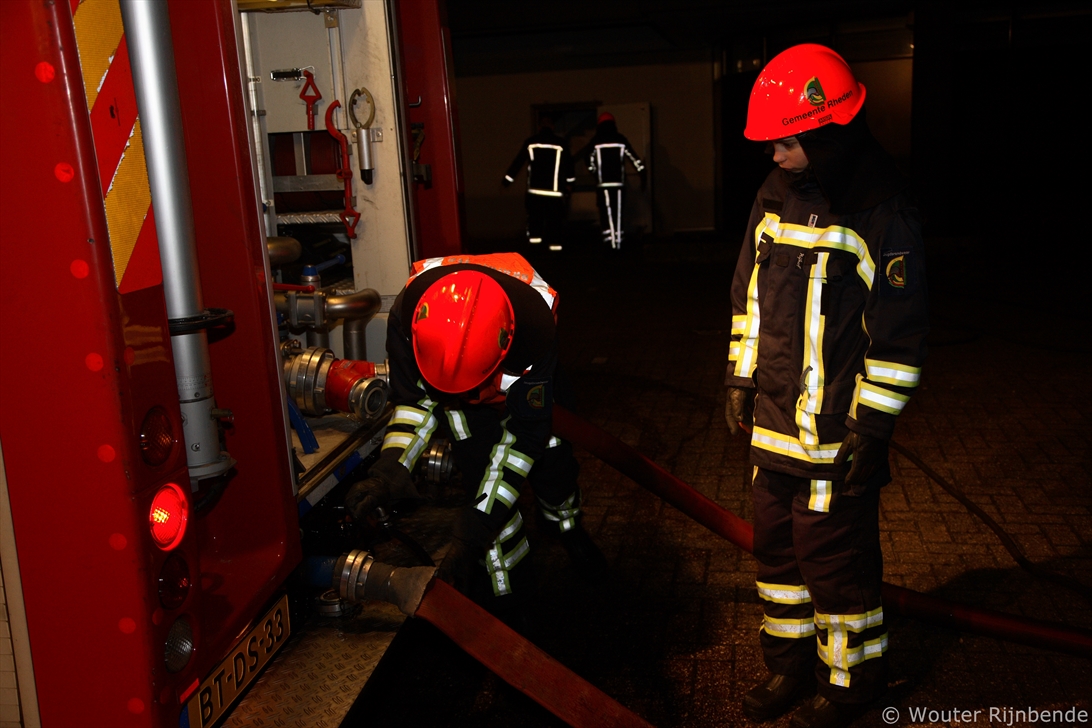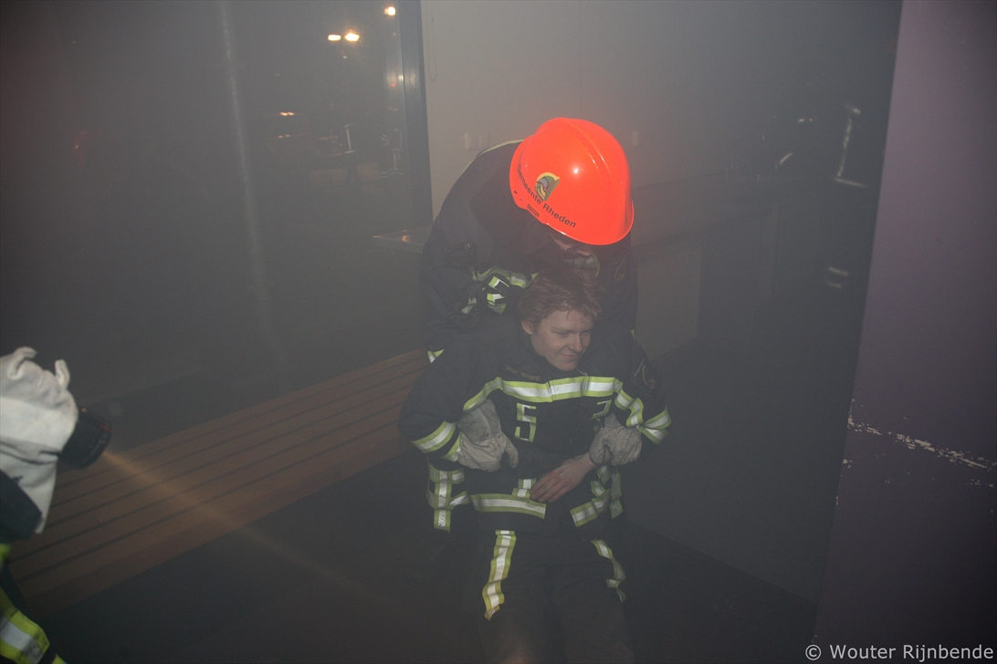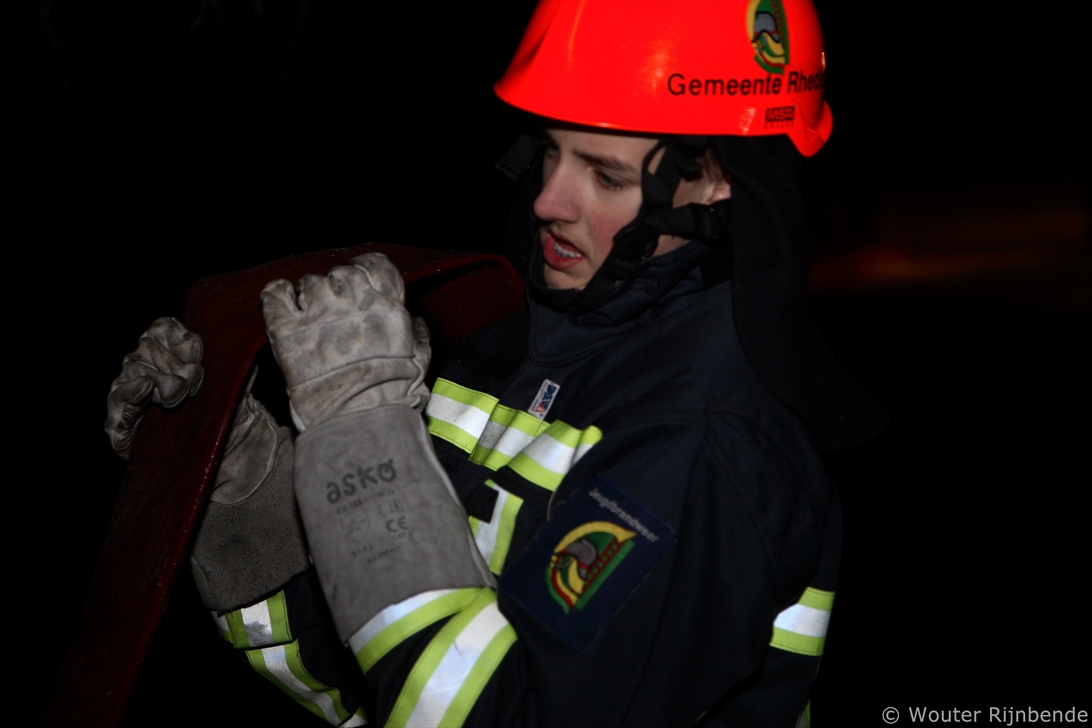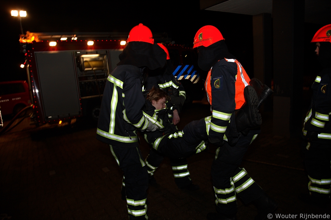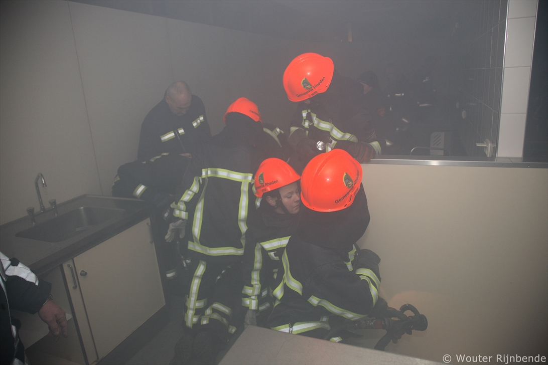 21 januari 2015 - Jeugdbrandweer Rheden oefent tijdens een in scene gezette brand in Velp.