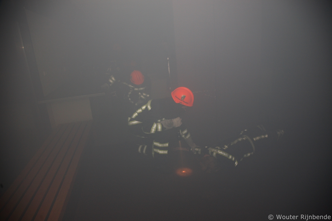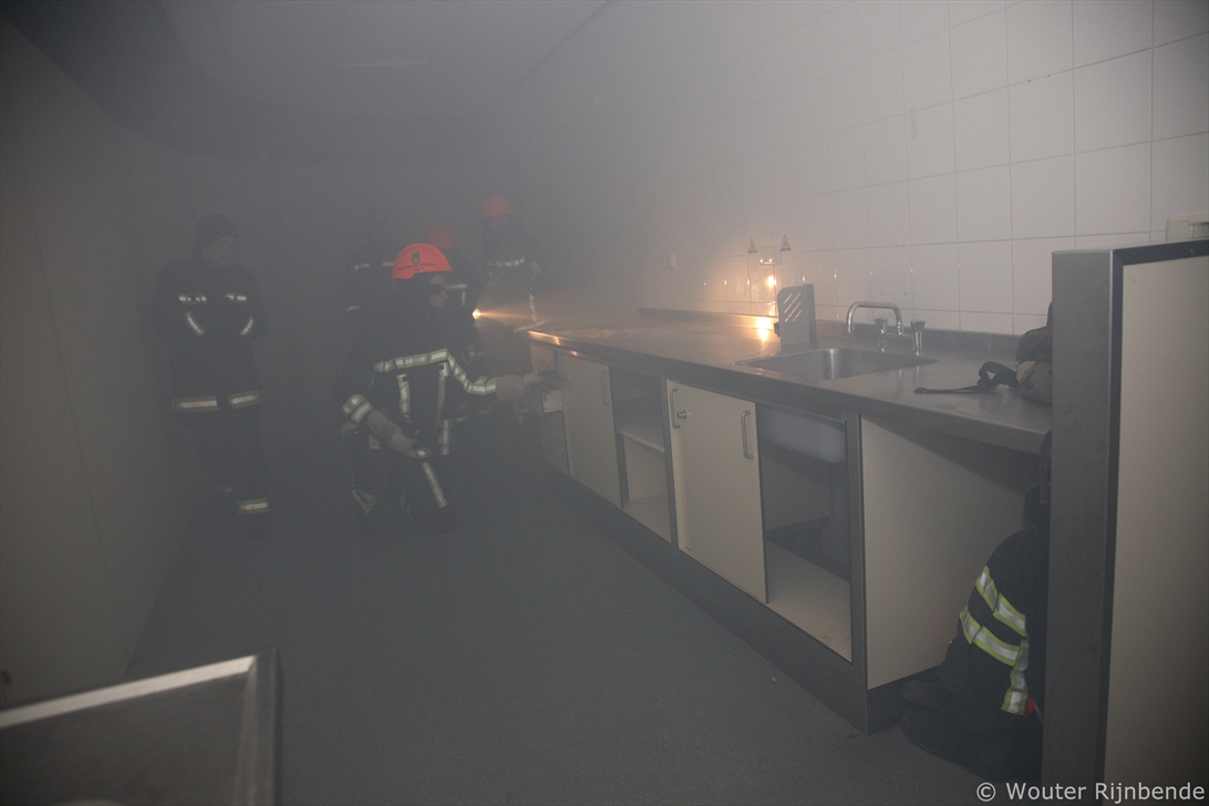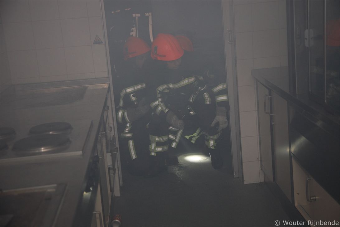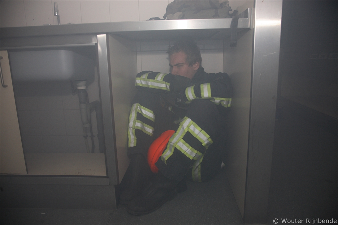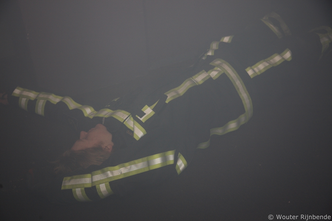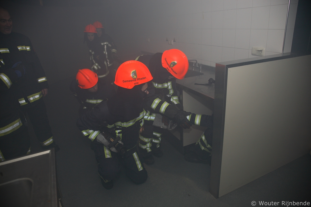 21 januari 2015 - Jeugdbrandweer Rheden oefent tijdens een in scene gezette brand in Velp.