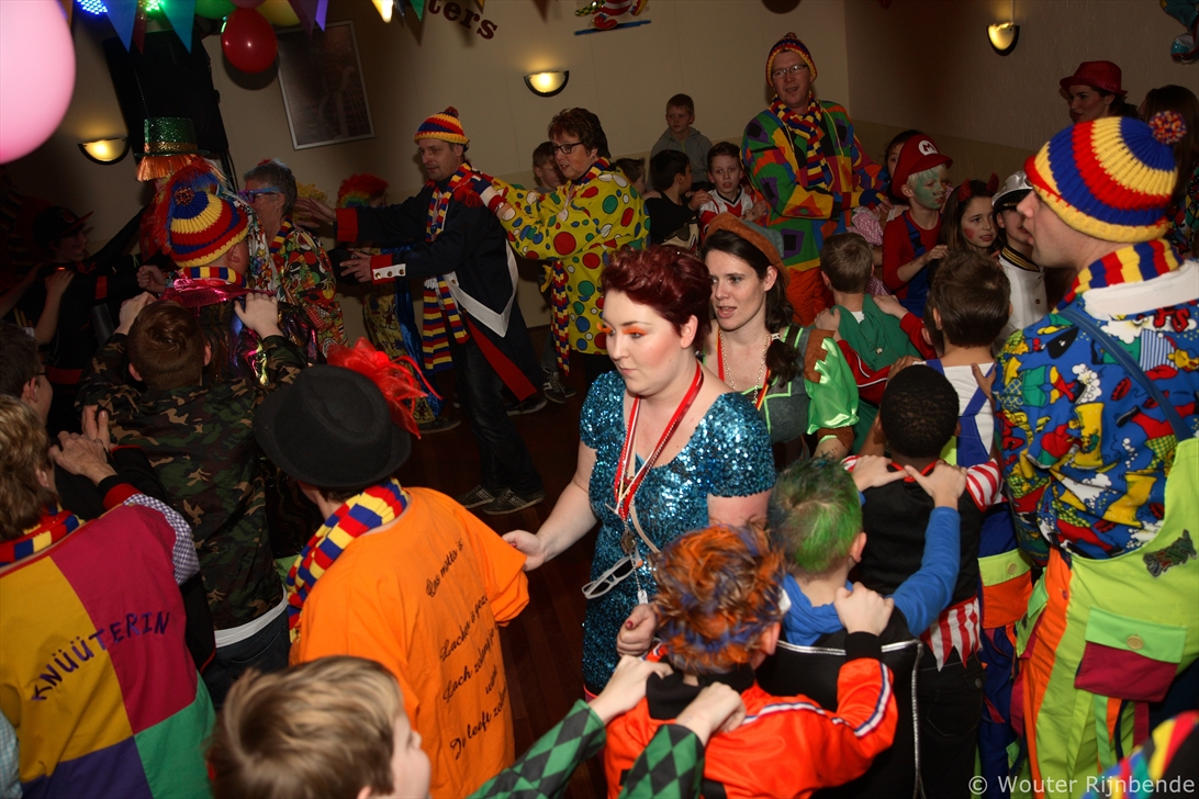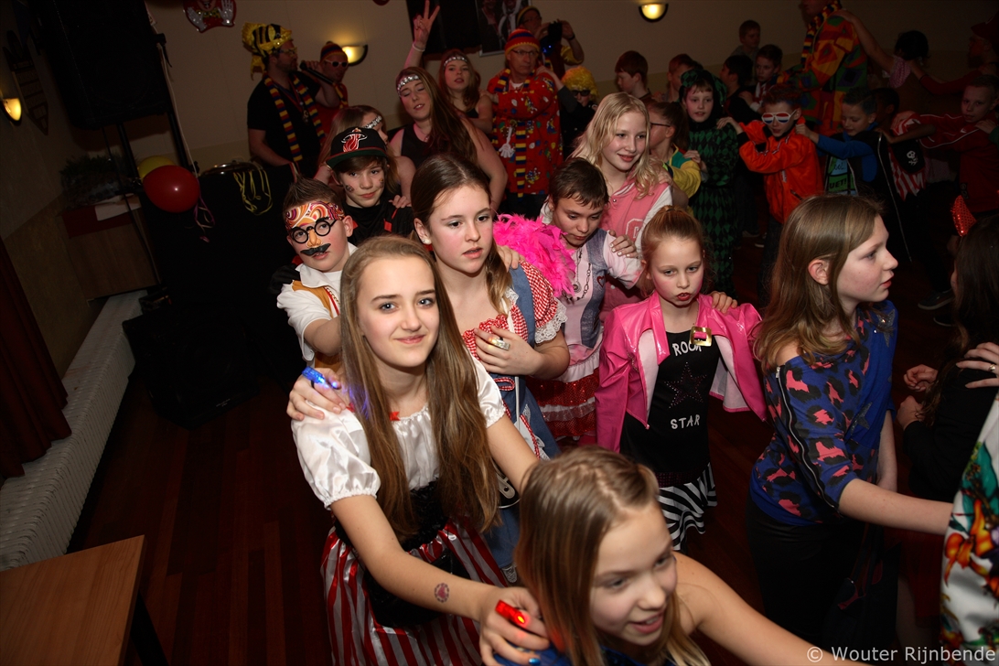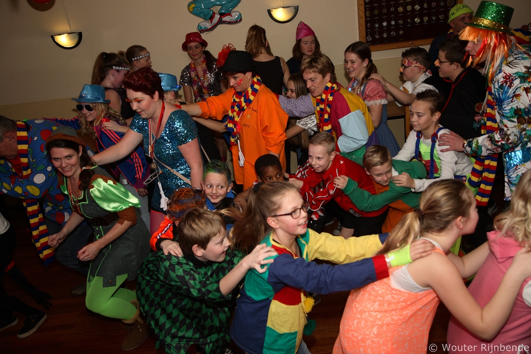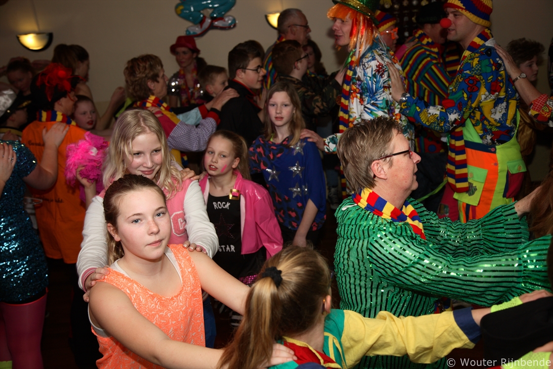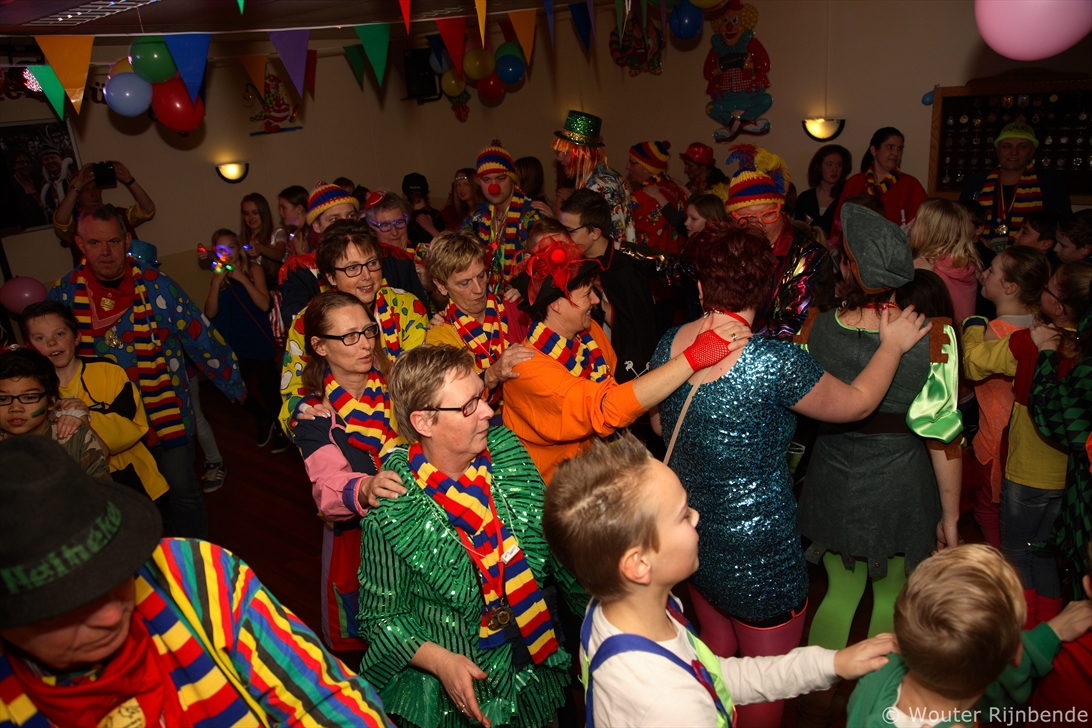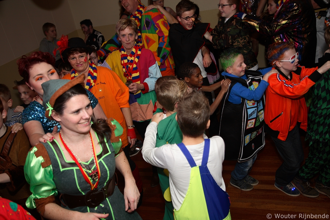 13 februari 2015 - En 's avonds was de Mauritiusschool dan weer te gast bij de Heiknüüters om samen met hun Carnaval te vieren in de feestburcht.
