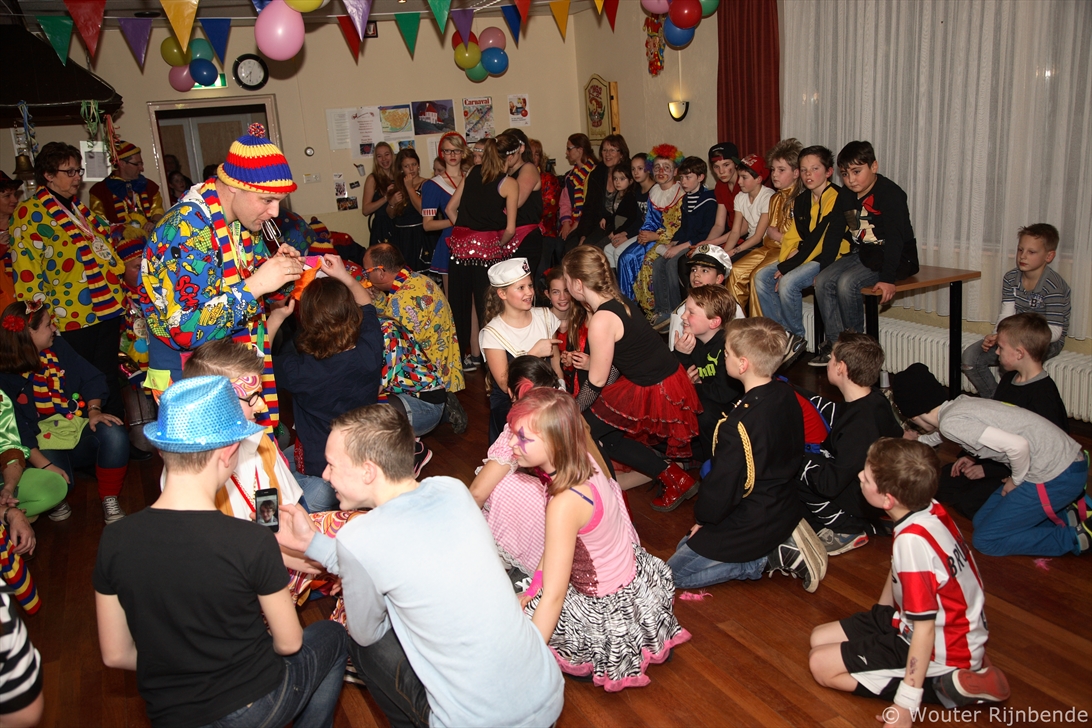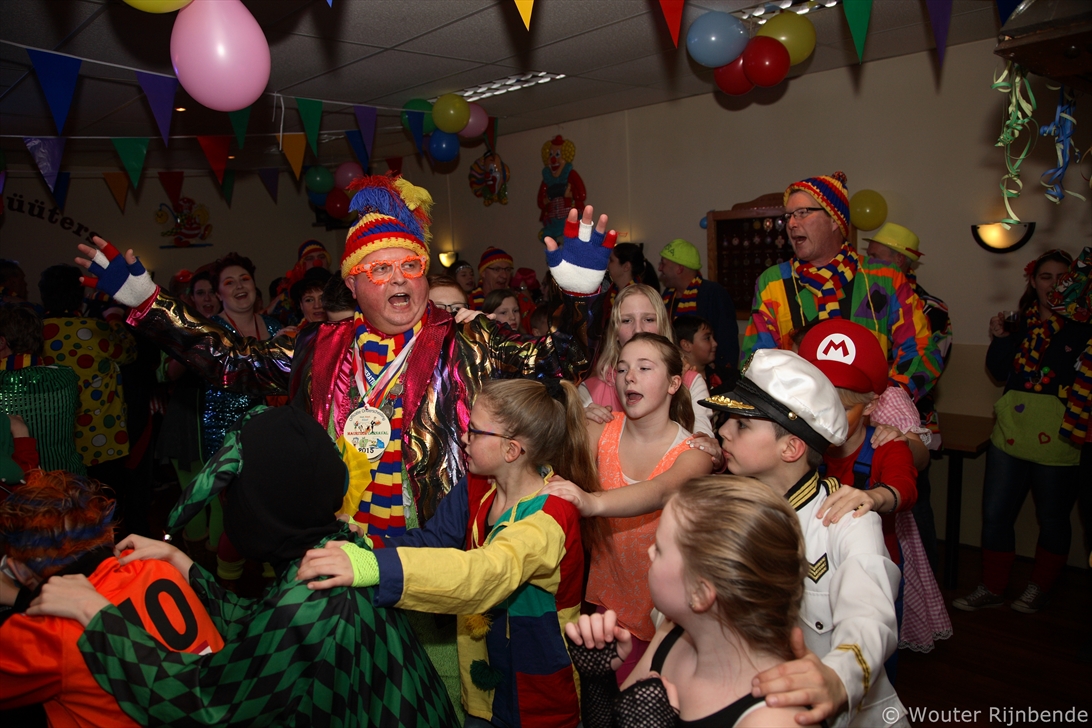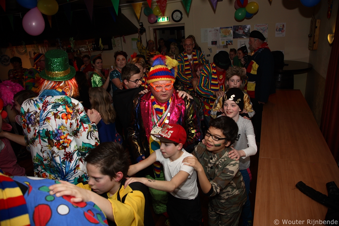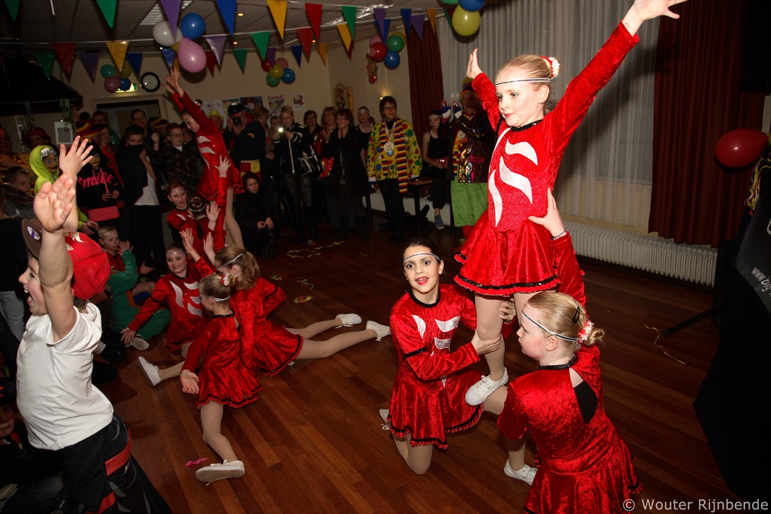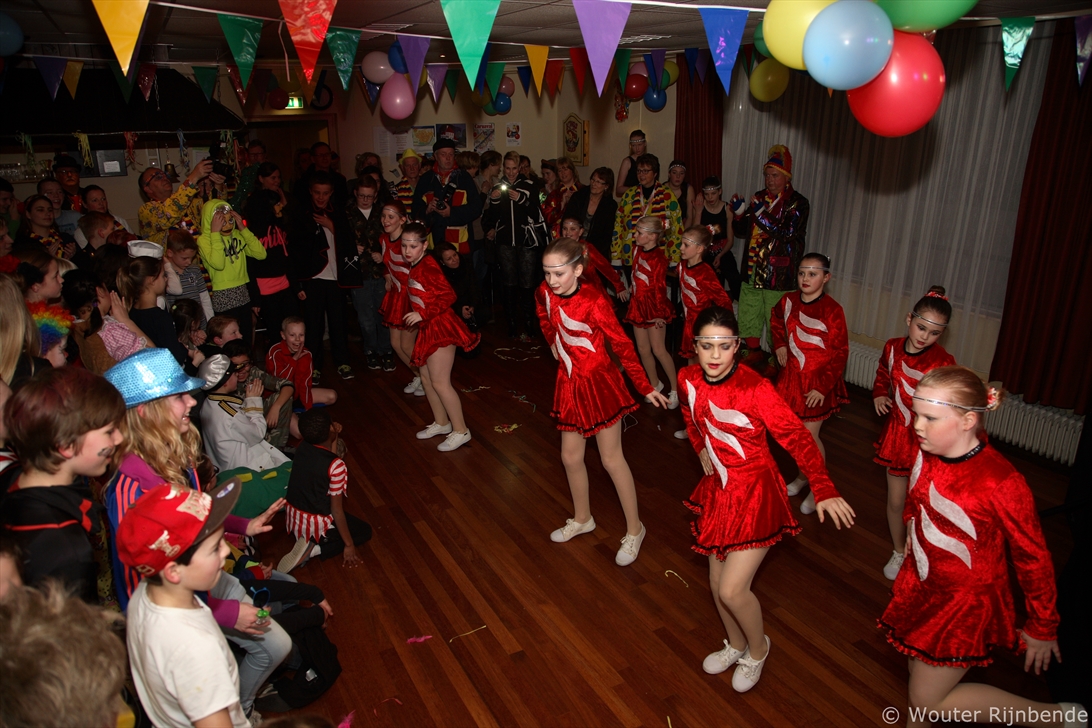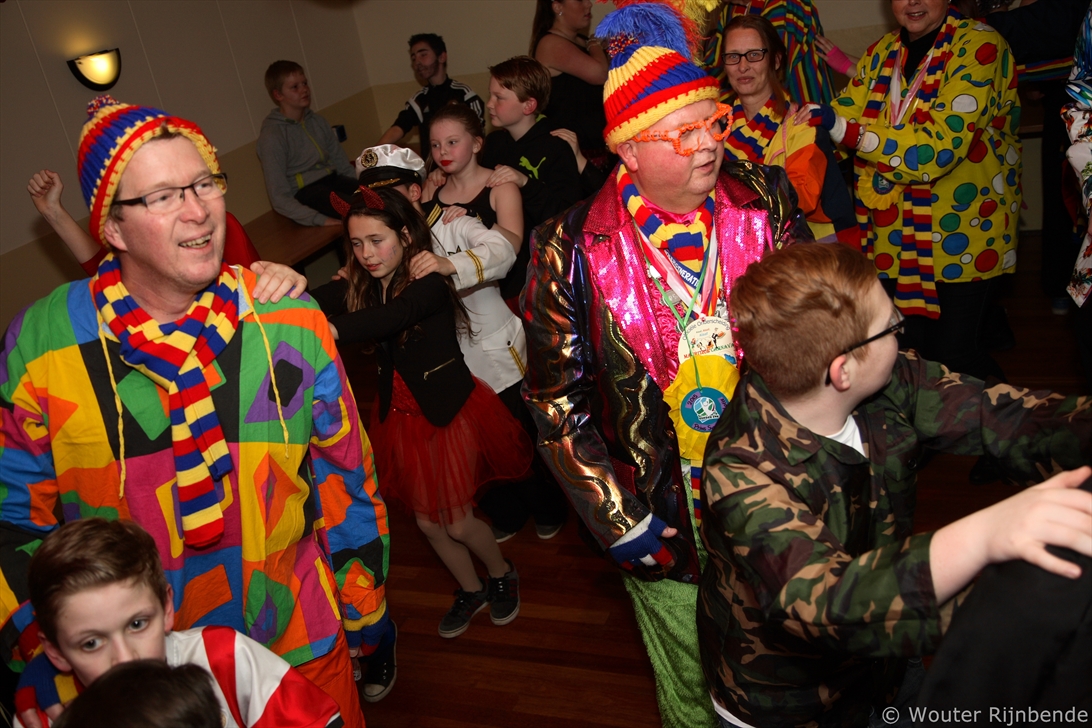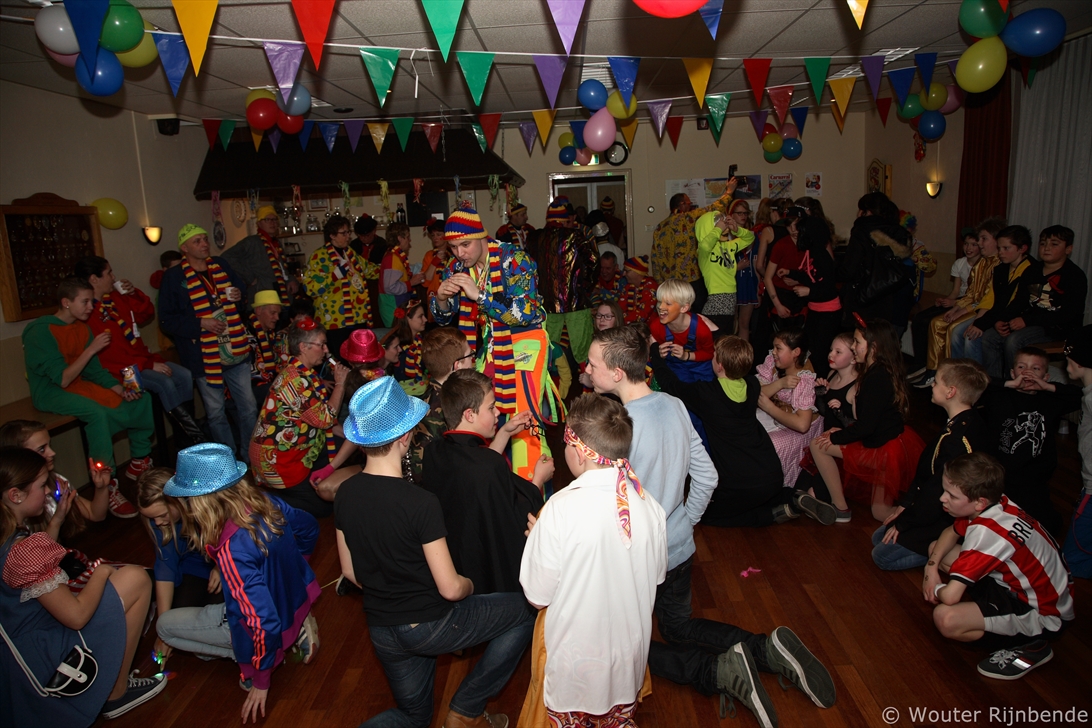 13 februari 2015 - En 's avonds was de Mauritiusschool dan weer te gast bij de Heiknüüters om samen met hun Carnaval te vieren in de feestburcht.