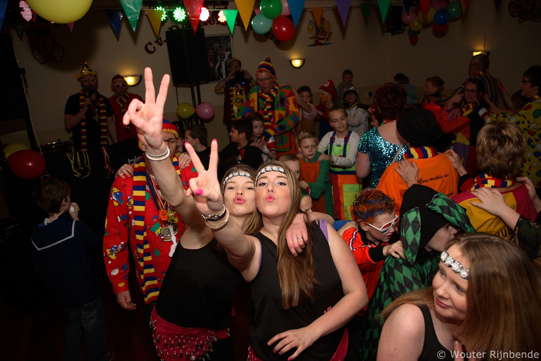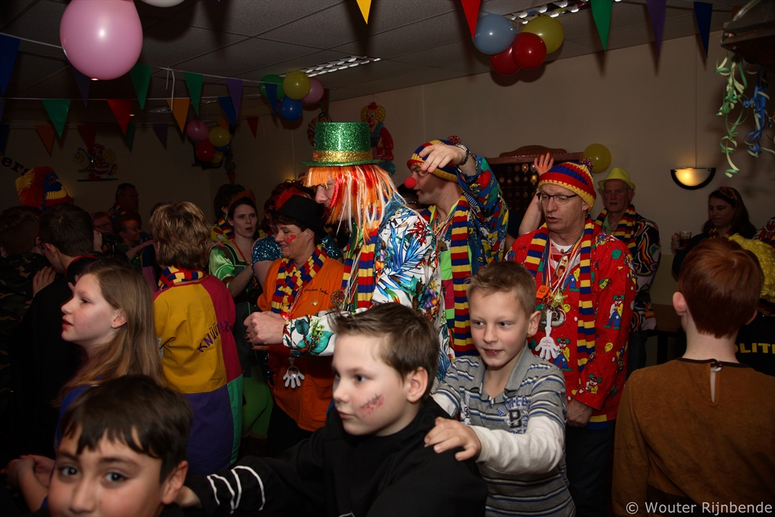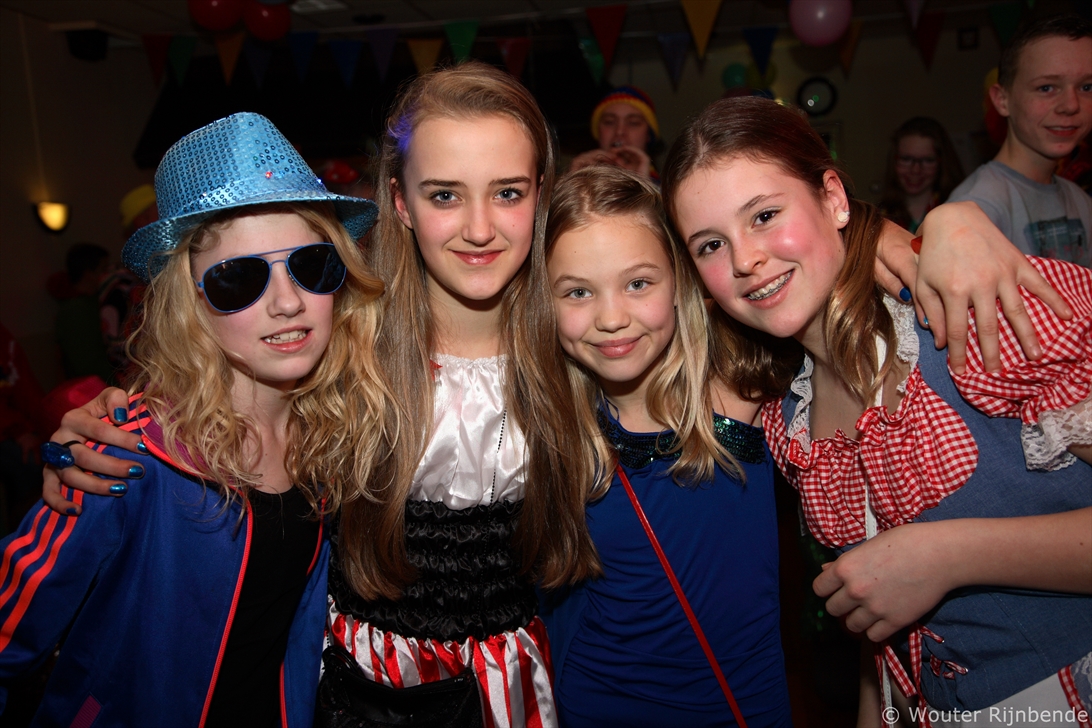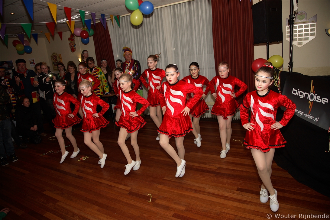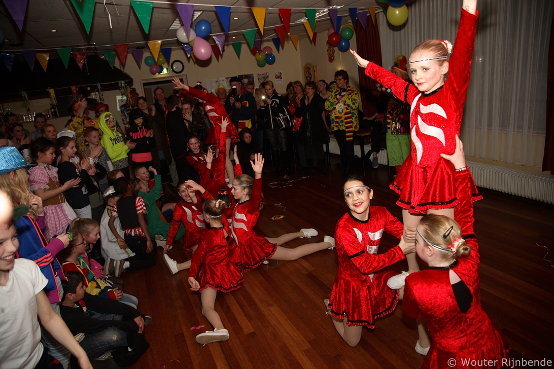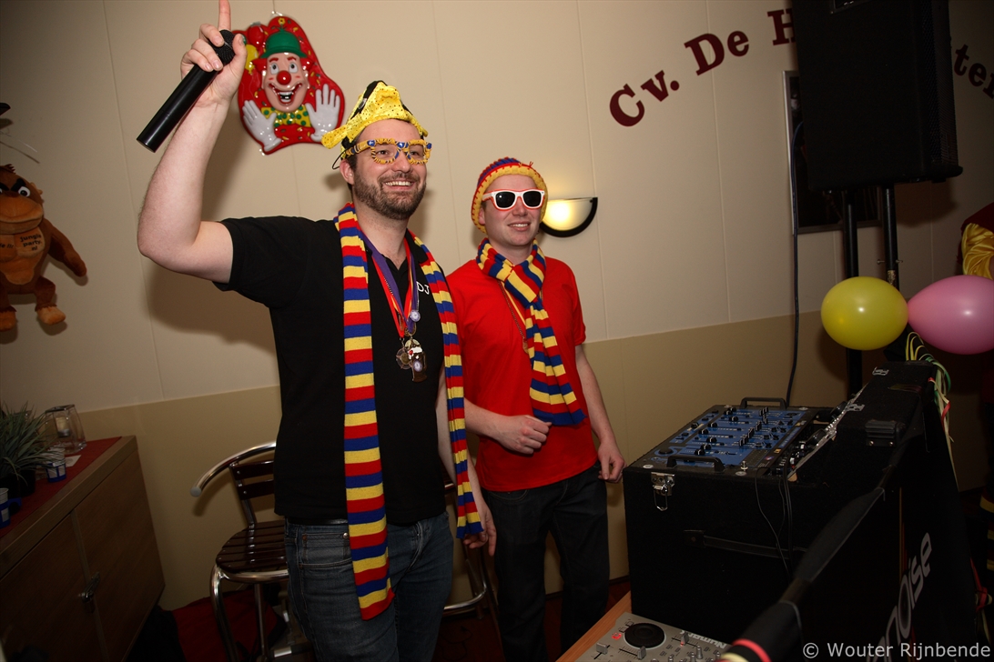 13 februari 2015 - En 's avonds was de Mauritiusschool dan weer te gast bij de Heiknüüters om samen met hun Carnaval te vieren in de feestburcht.