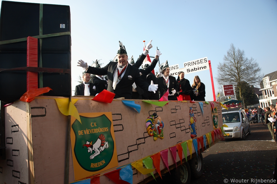 15 februari 2015 - Om 13:11 vertrok de Carnavalsstoet met een nieuwe route die langs alle kroegen van Rheden loopt. In 3 categoriën waren prijzen te winnen. Prijsuitreiking was om 16:00 in Ons Huis.