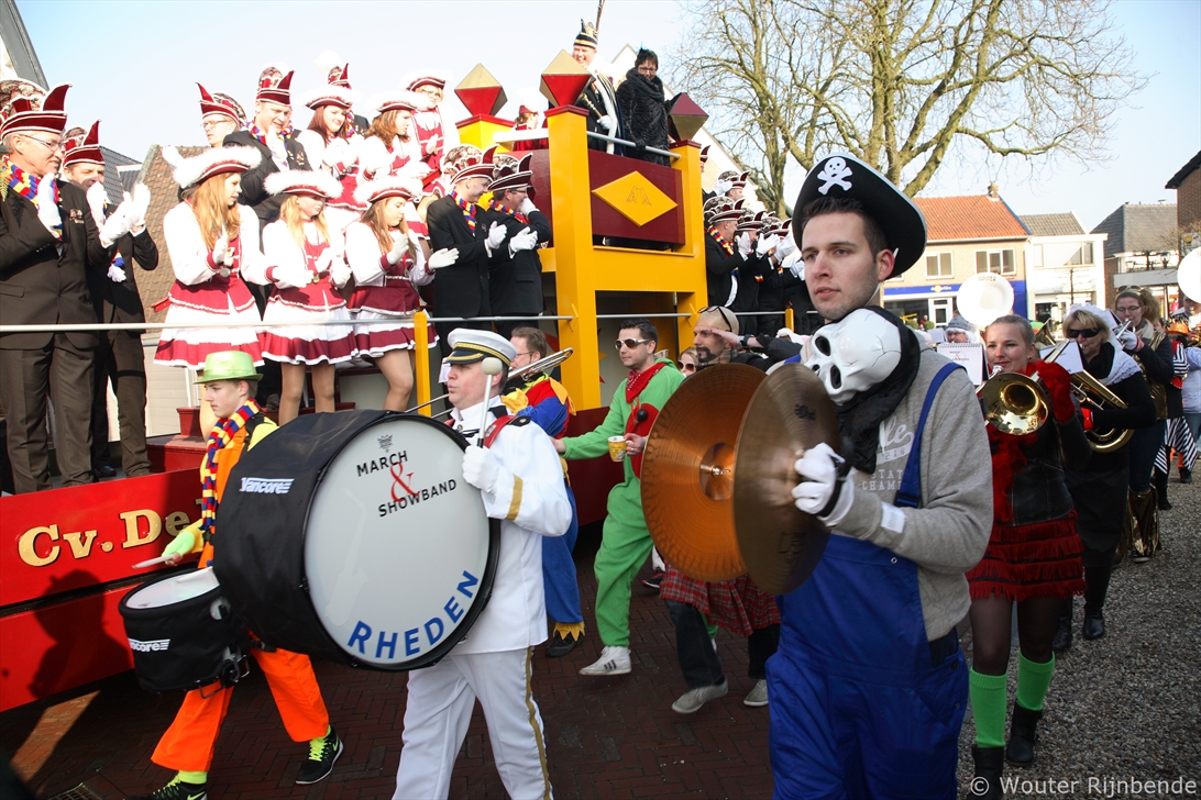 15 februari 2015 - Om 13:11 vertrok de Carnavalsstoet met een nieuwe route die langs alle kroegen van Rheden loopt. In 3 categoriën waren prijzen te winnen. Prijsuitreiking was om 16:00 in Ons Huis.