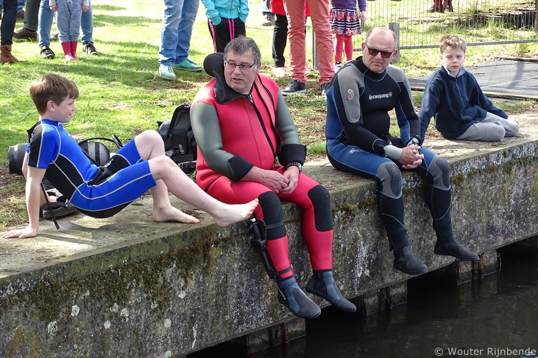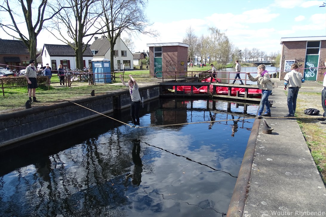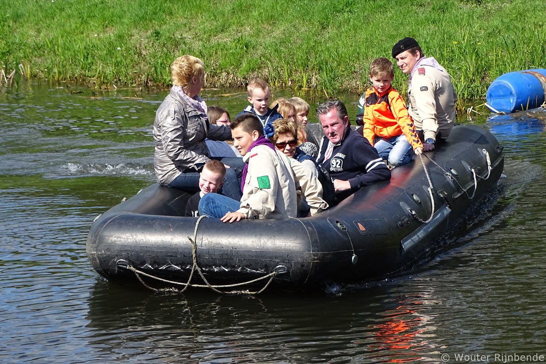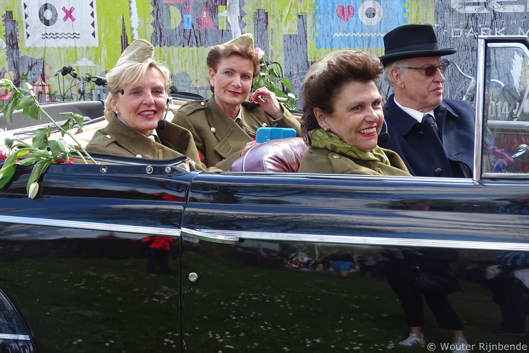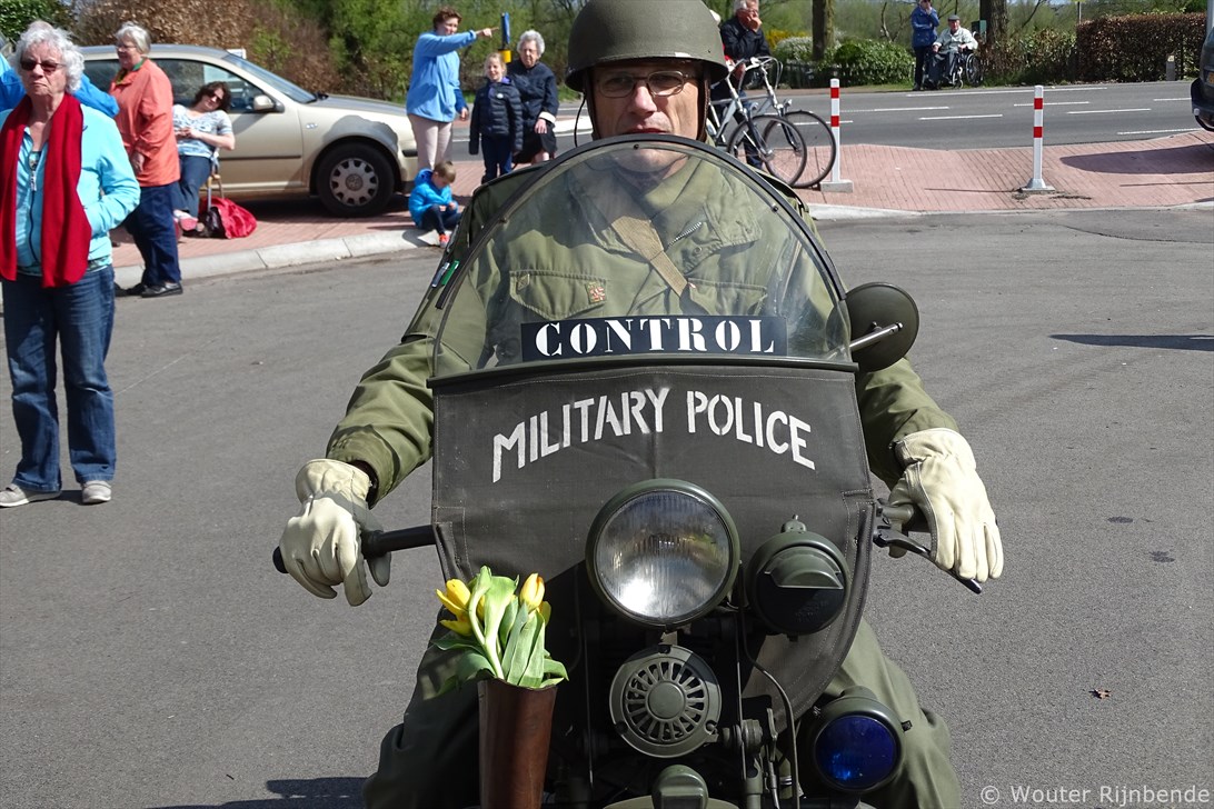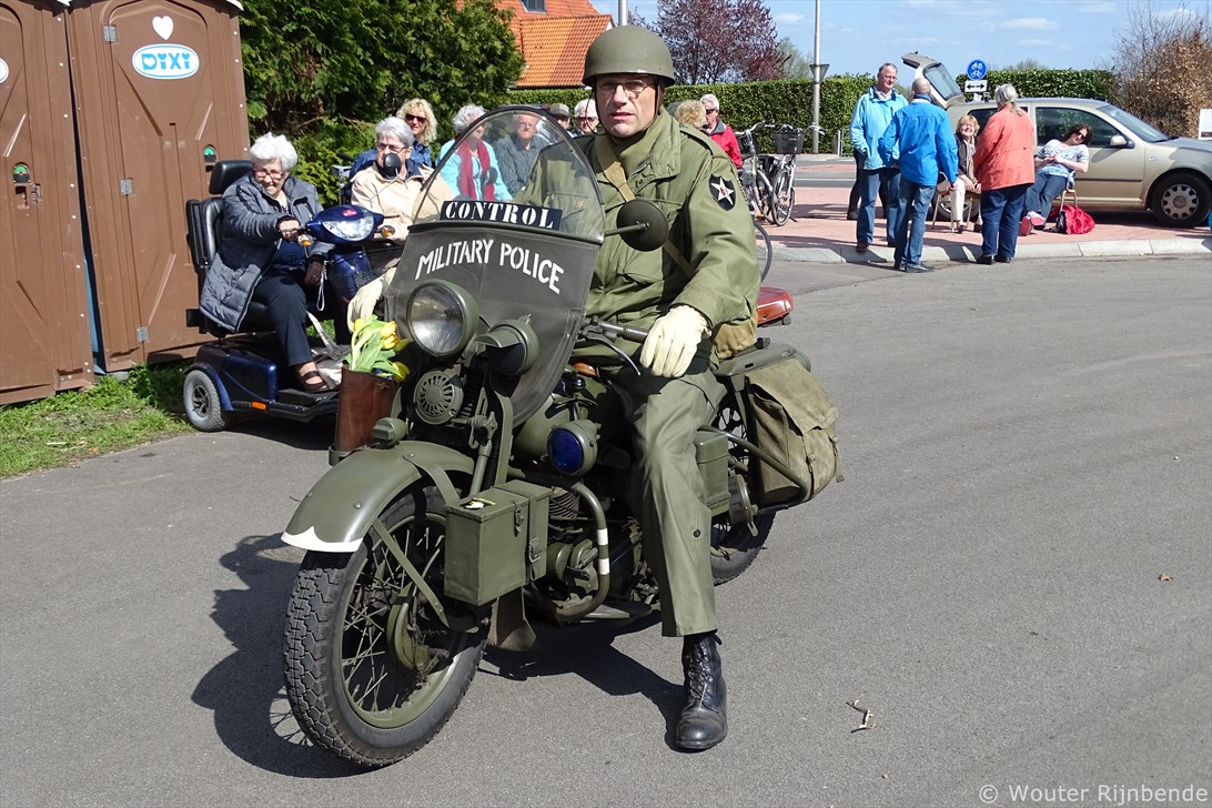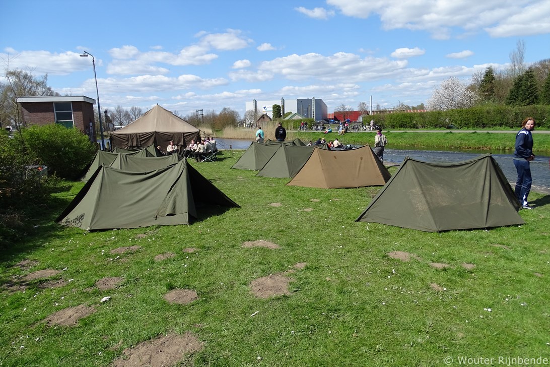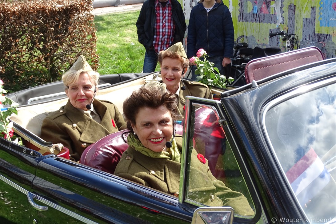 18 april 2015 - Bevrijdingsoptocht komt aan bij de sluis in Dieren. Burgemeester Petra van Wingerden-Boers en wethouder Tjebbe Vugts onthulden een bevrijdingsbank bij de sluis van Dieren.