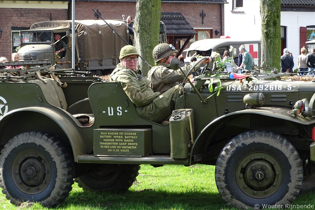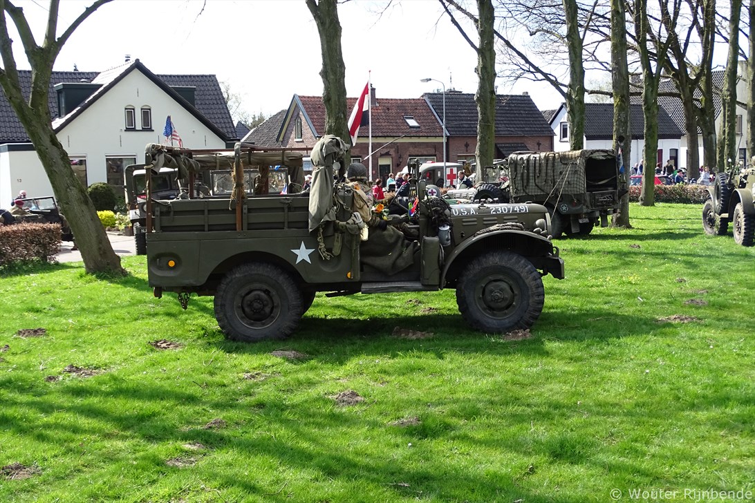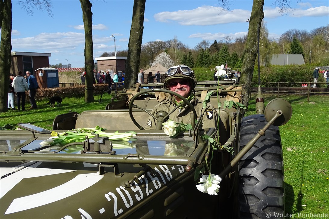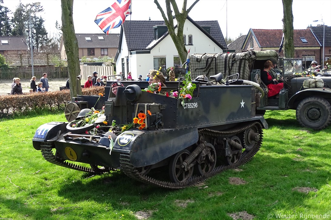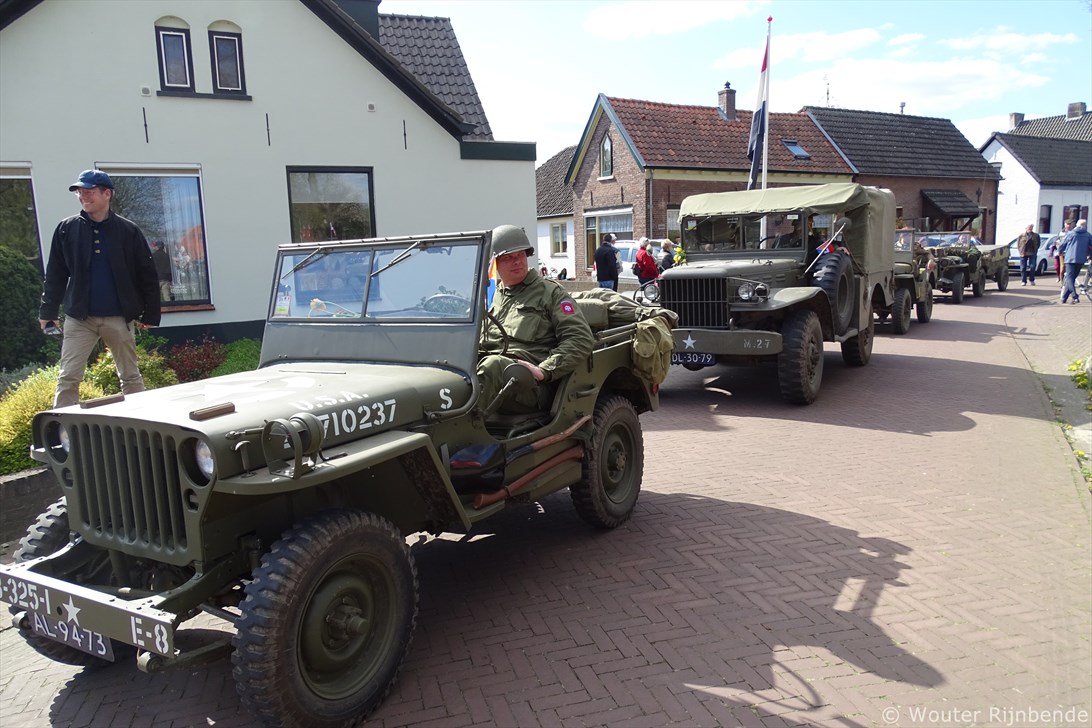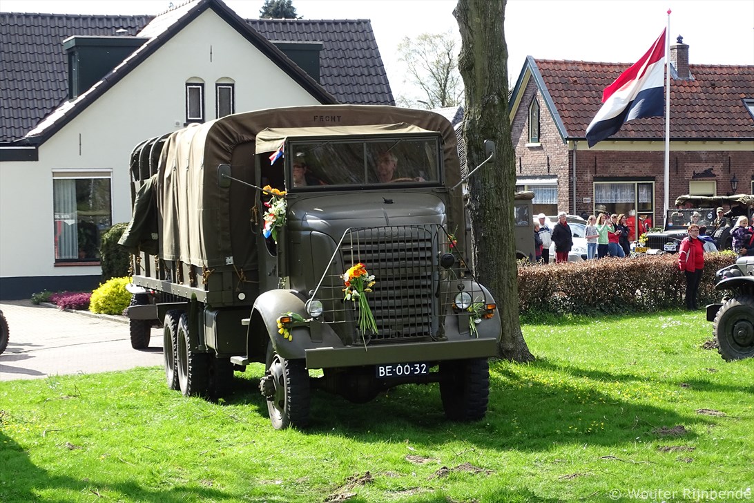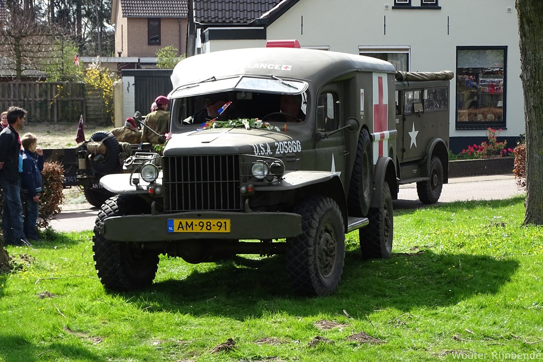 18 april 2015 - Bevrijdingsoptocht komt aan bij de sluis in Dieren. Burgemeester Petra van Wingerden-Boers en wethouder Tjebbe Vugts onthulden een bevrijdingsbank bij de sluis van Dieren.