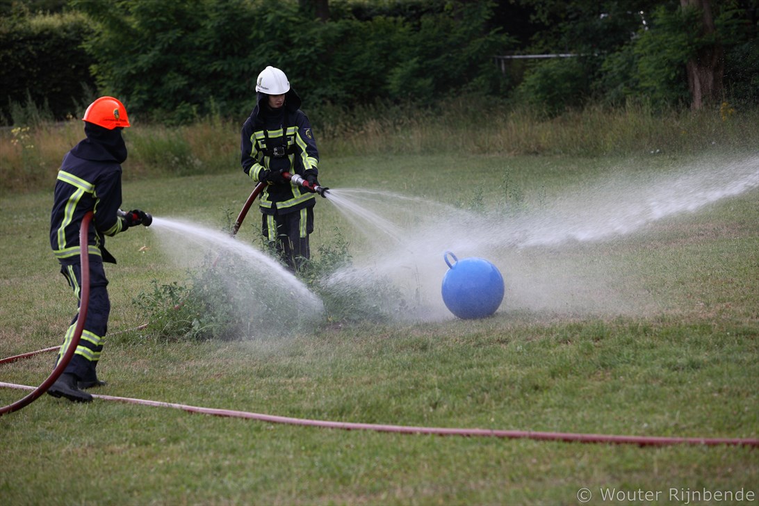 8 juli 2015 - De jeugdbrandweer van Rheden heeft de laatste dag van het seizoen afgesloten met een spelletje "spuitvoetbal"; een wedstrijd waarbij een skippybal door een bepaald parcours geleid moet worden.