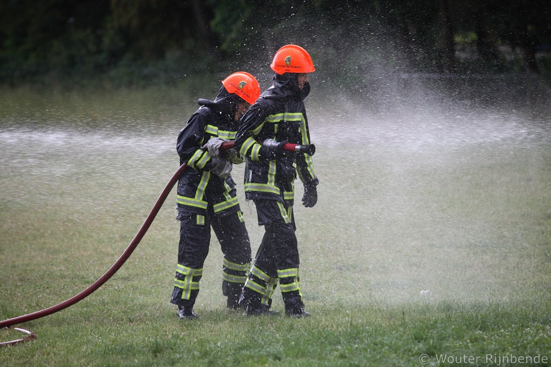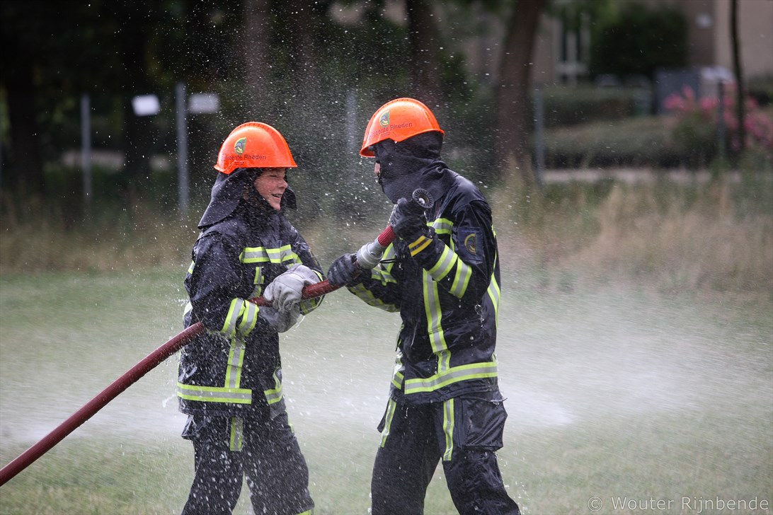 8 juli 2015 - De jeugdbrandweer van Rheden heeft de laatste dag van het seizoen afgesloten met een spelletje "spuitvoetbal"; een wedstrijd waarbij een skippybal door een bepaald parcours geleid moet worden.