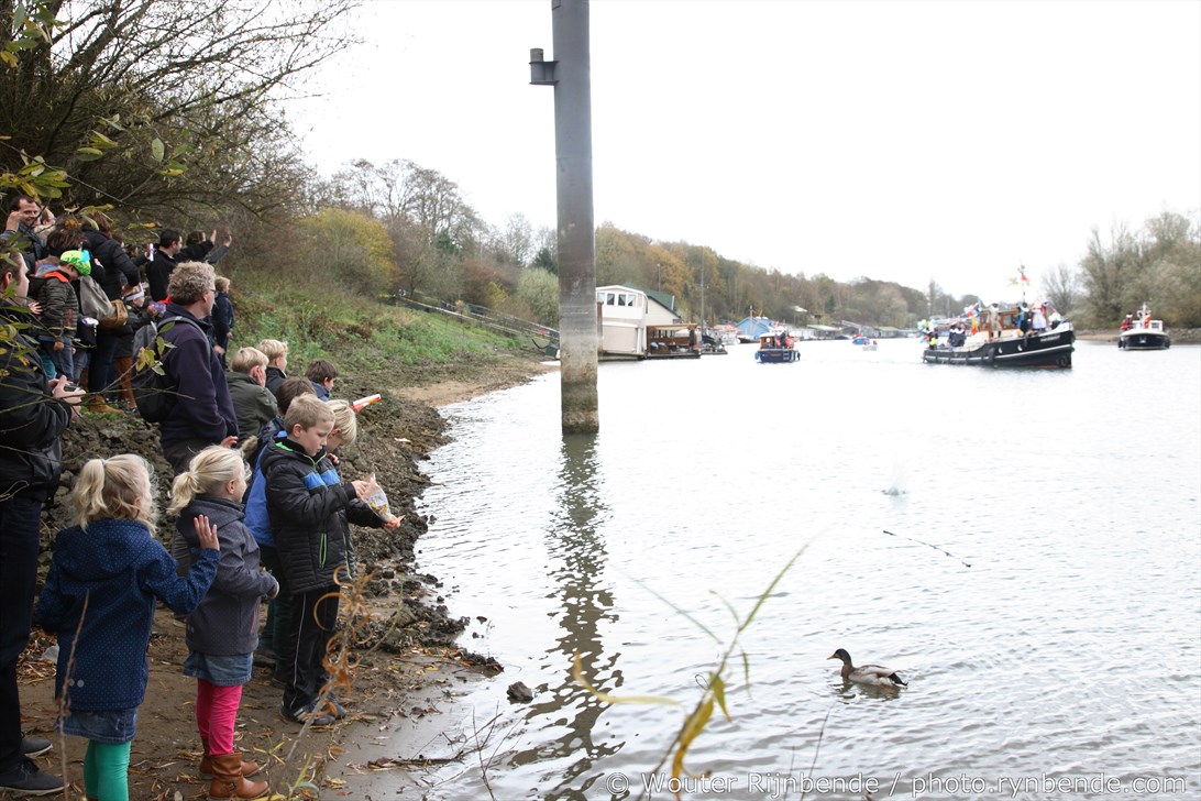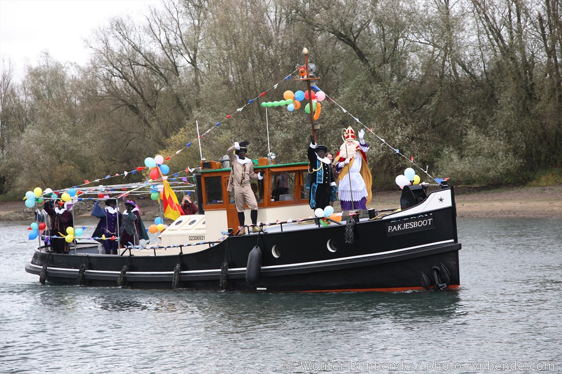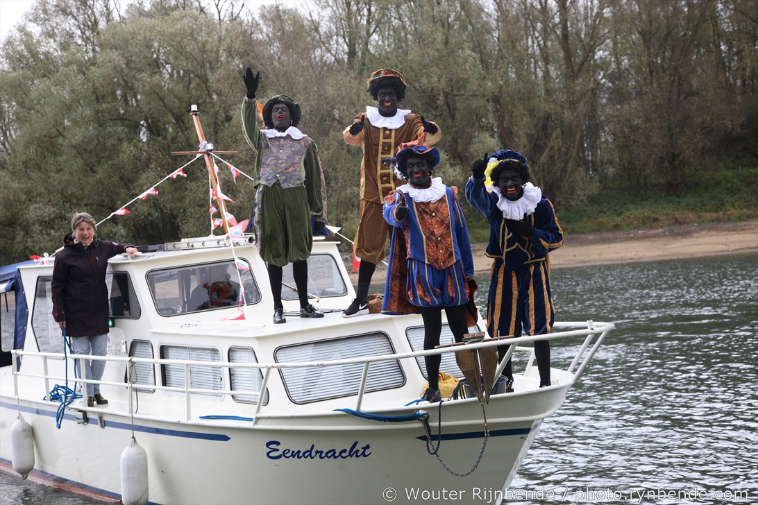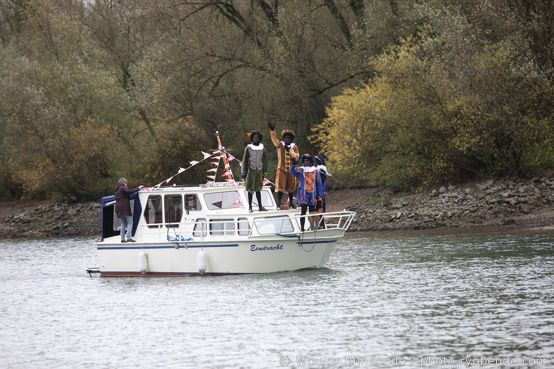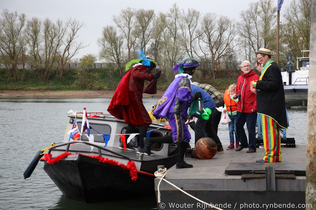 14 november 2015 - Sinterklaas en zijn pieten zijn weer veilig aangekomen in de haven van Rheden. Door het lage water was de intocht dit jaar recht tegenover het kantoor van de Meteoor, omdat de boot niet kon aanmeren in de haven zelf. Even dreigde het mis te lopen...
