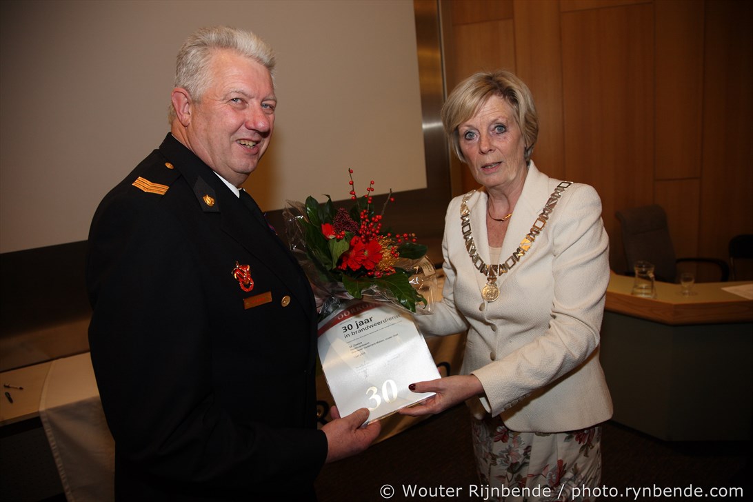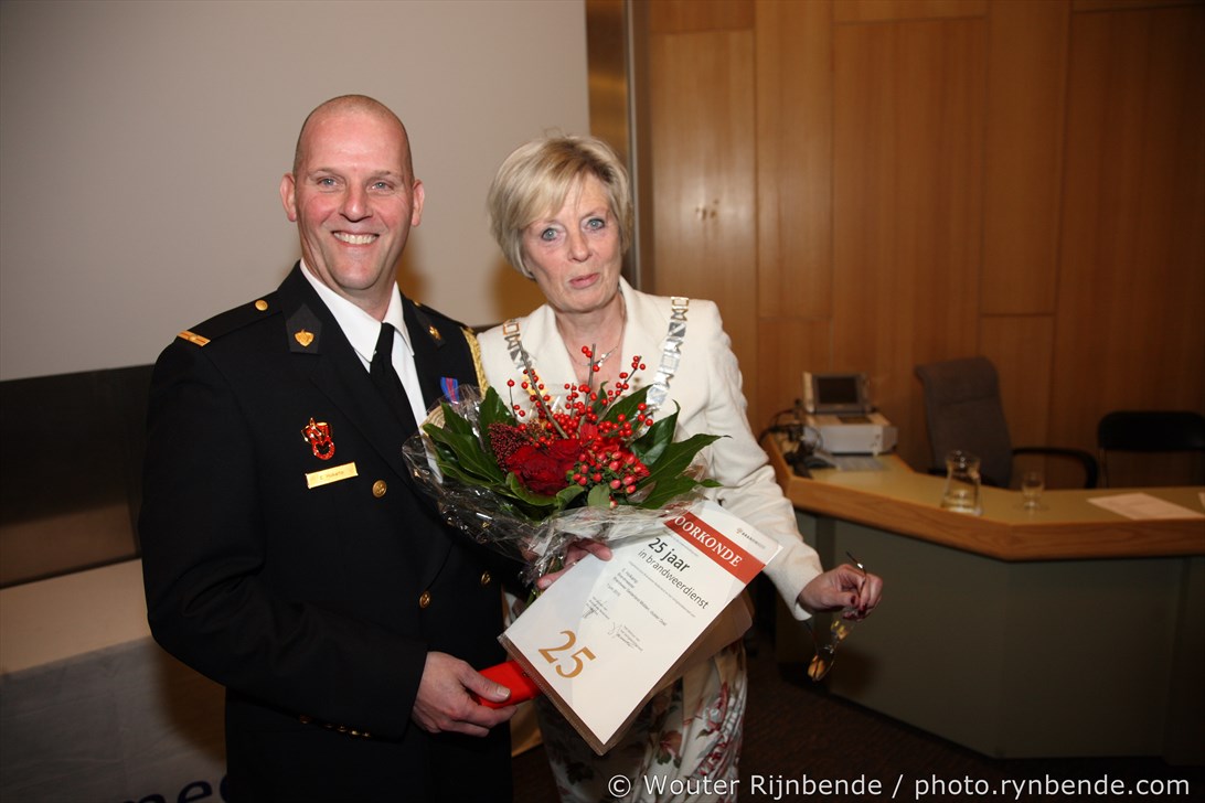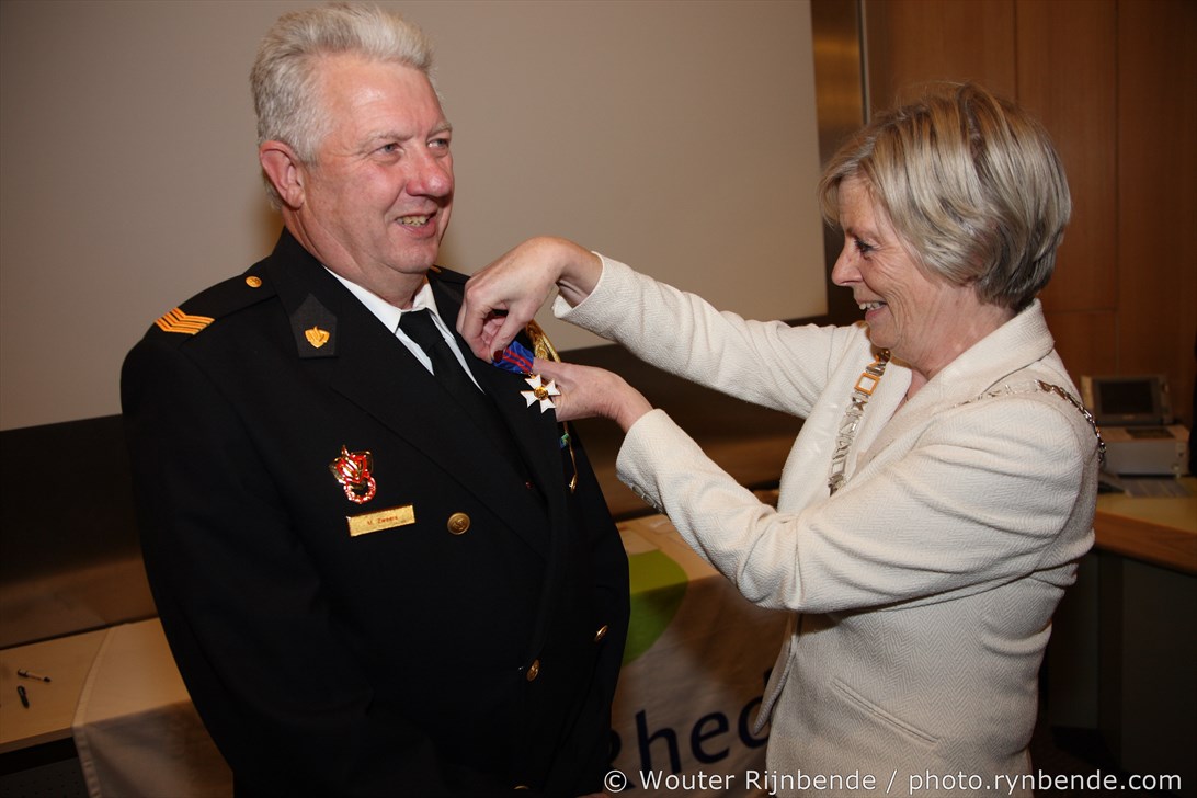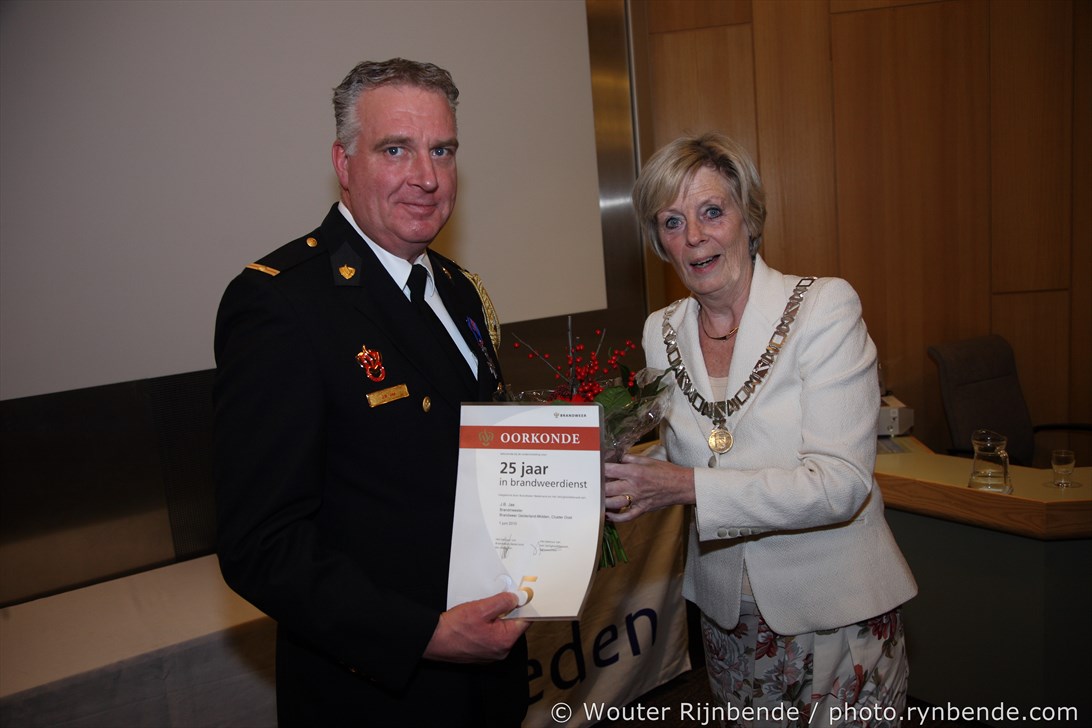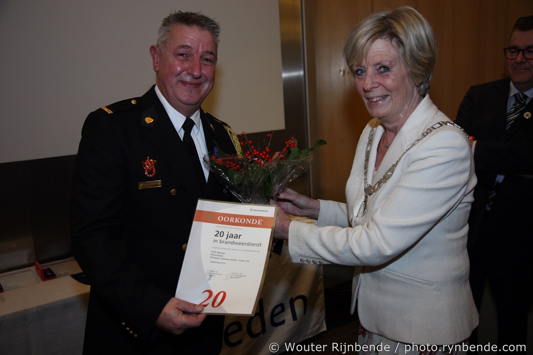 27 november 2015 - In het Gemeentehuis van Rheden werden vrijdagavond 27 november de brandweerjubilarissen gehuldigd. Burgemeester Petra van Wingerden-Boers reikte o.a. de vrijwilligersmedailles uit. De avond werd geopend door mevrouw Marrit Yntema, commandant van Cluster Oost.