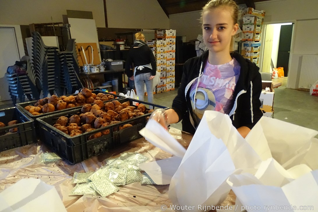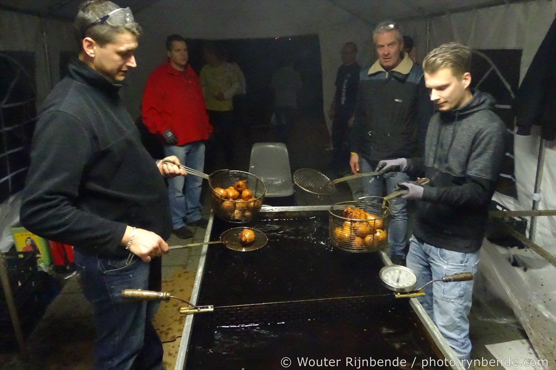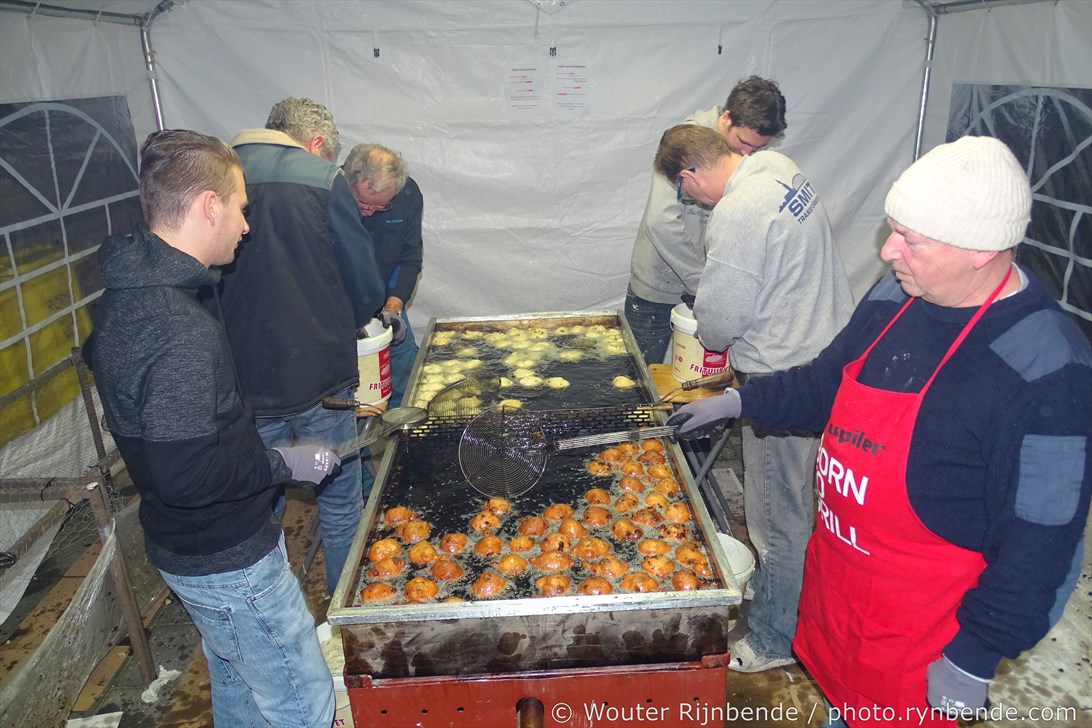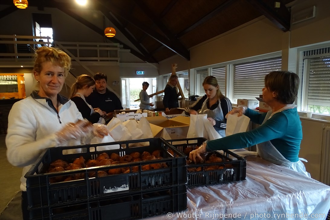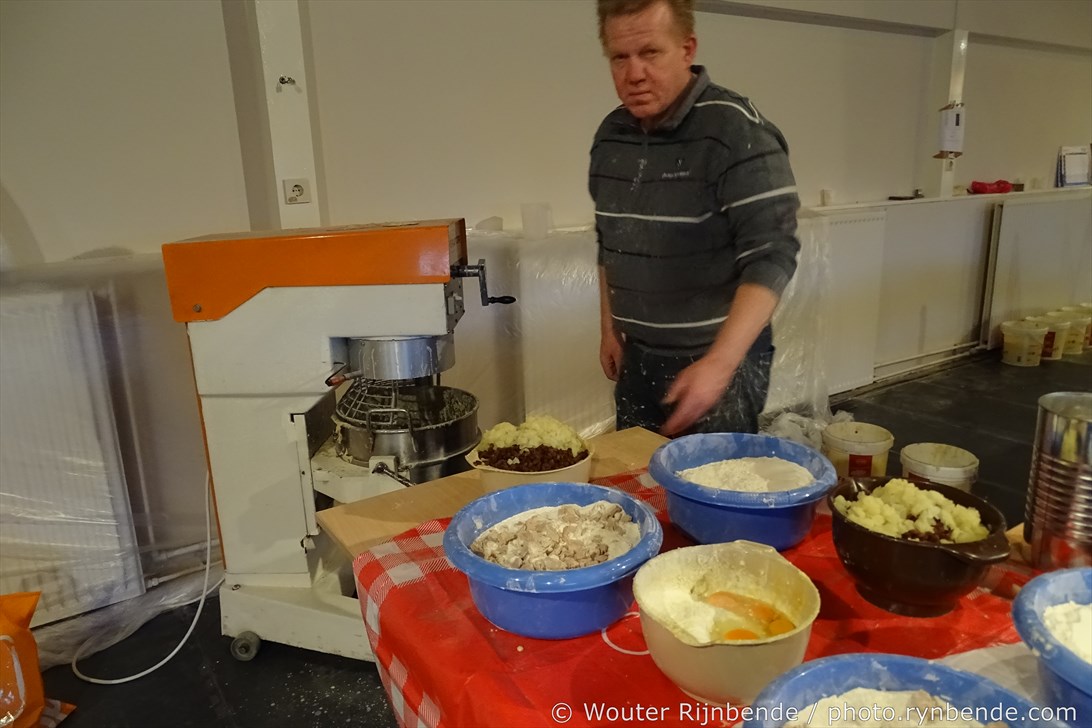 29 december 2015 - In de bakkerij van de March & Showband Rheden hebben de bakkers van de muziekvereniging dinsdag 29 december 8000 oliebollen en 2500 appelbeignets gebakken.