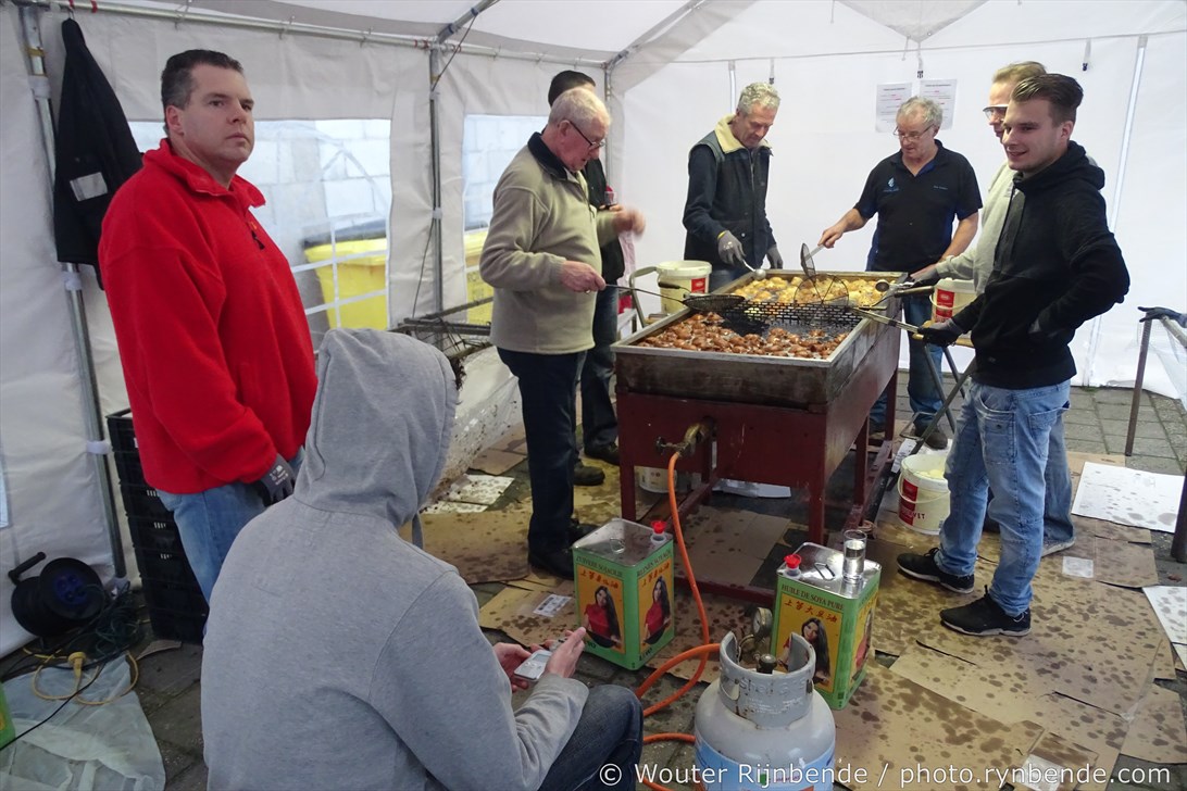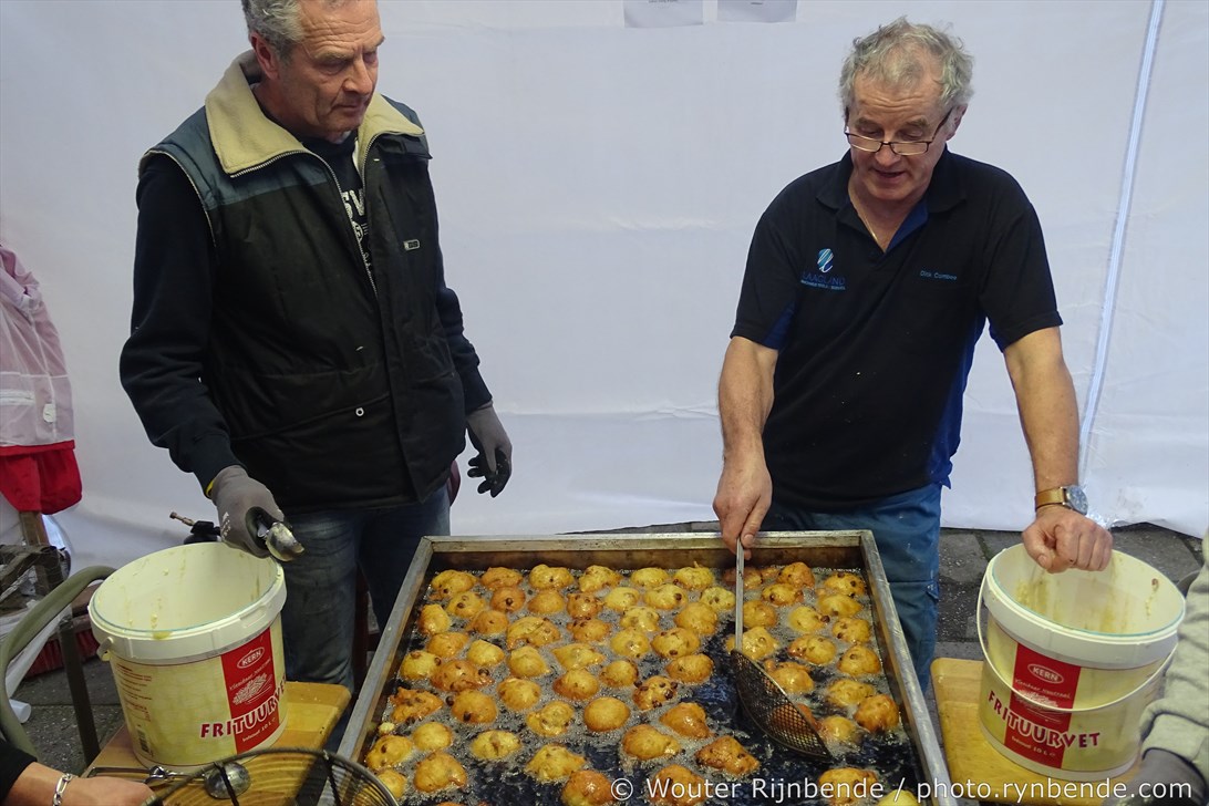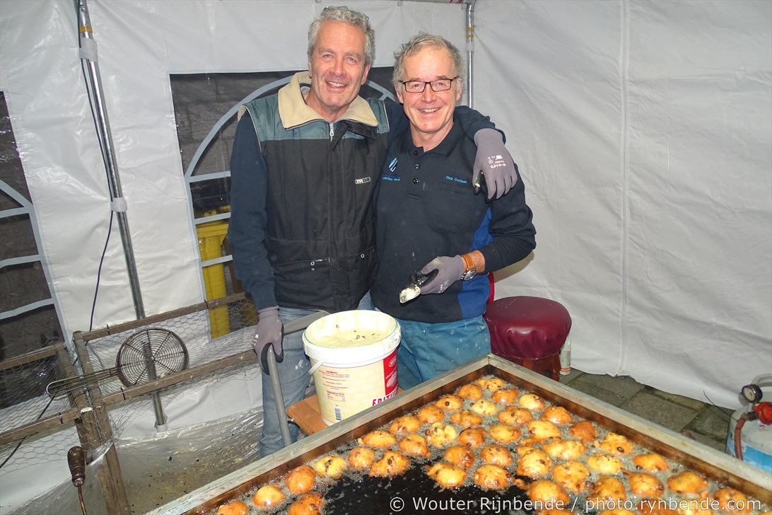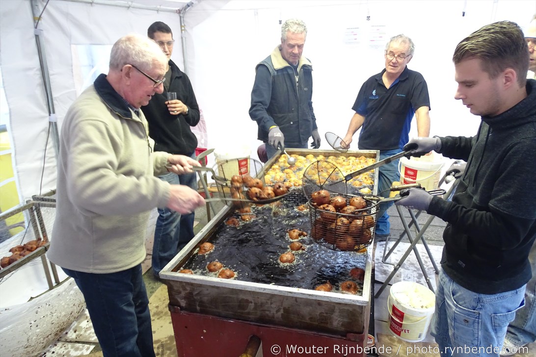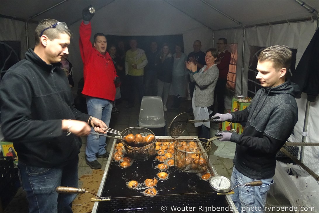 29 december 2015 - In de bakkerij van de March & Showband Rheden hebben de bakkers van de muziekvereniging dinsdag 29 december 8000 oliebollen en 2500 appelbeignets gebakken.
