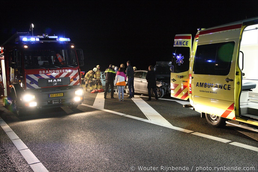 6 februari 2016 - Op de snelweg A348 zijn ter hoogte van Ellecom twee auto's betrokken geraakt bij een aanrijding. Een 34-jarige automobiliste uit Rheden raakte daarbij bekneld en gewond. Zij is door de hulpdiensten uit het wrak gehaald en naar het ziekenhuis gebracht. De andere partij was na de aanrijding te voet op de vlucht geslagen. Agenten hebben nog vergeefs naar de bestuurder gezocht. Daarbij werd een politiehelikopter en een diensthond ingezet.