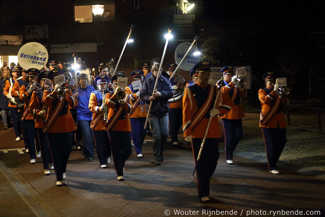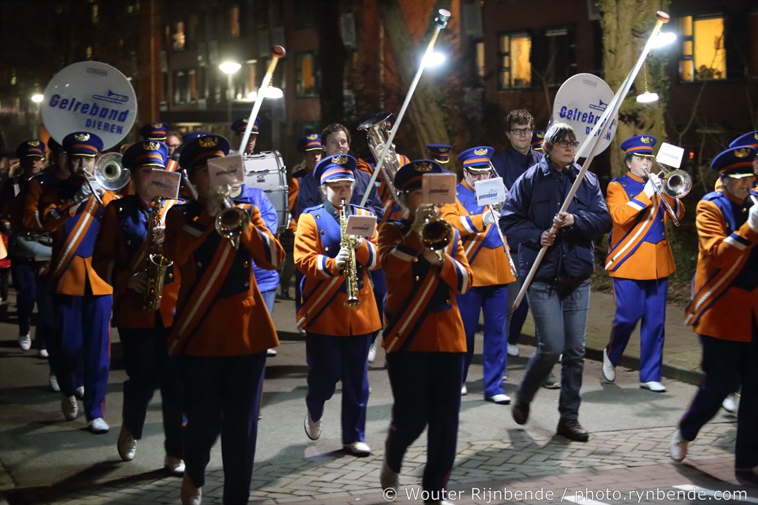 10 maart 2016 - Oranjevereniging Rheden voor Oranje organiseerde donderdag 10 maart weer de jaarlijkse Lampionnenoptocht. Bij de start speelde het Rhedens Fanfare Corps. De optocht zelf werd muzikaal begeleid door Mr. H.M. van der Zandt uit Velp, March en Showband Rheden uit Rheden en de Gelreband uit Dieren. De Rhedense Pioniers liepen met brandende fakkels mee in de optocht.