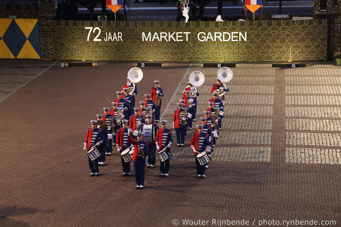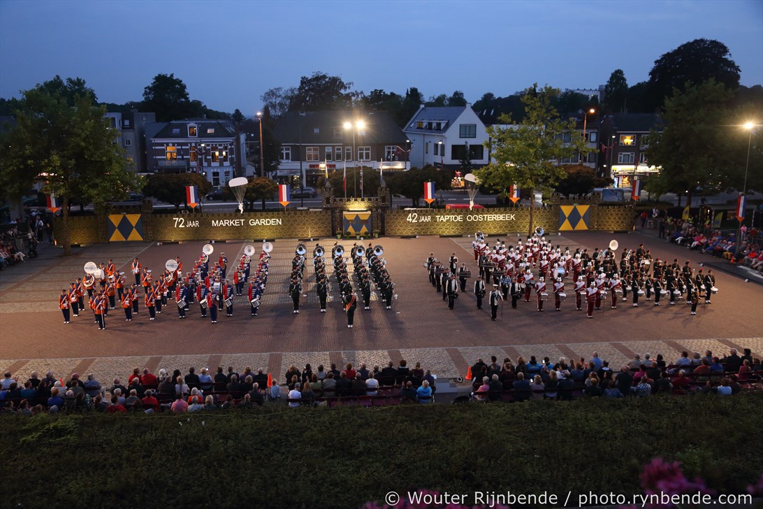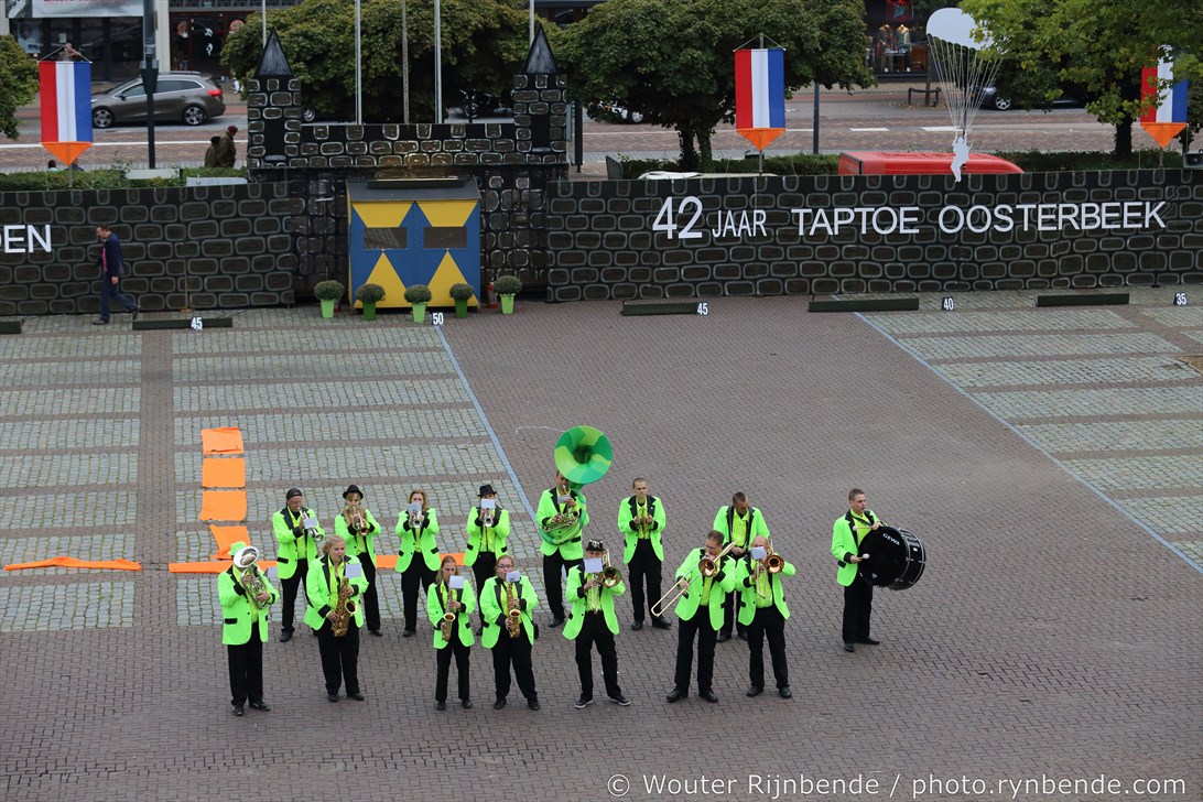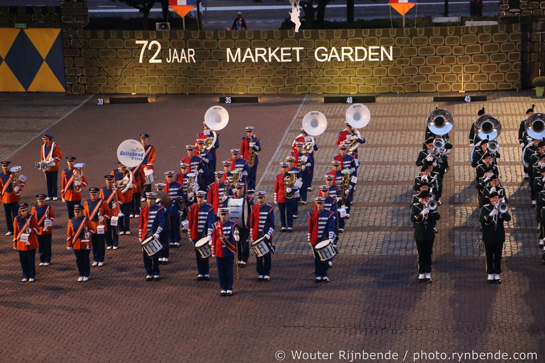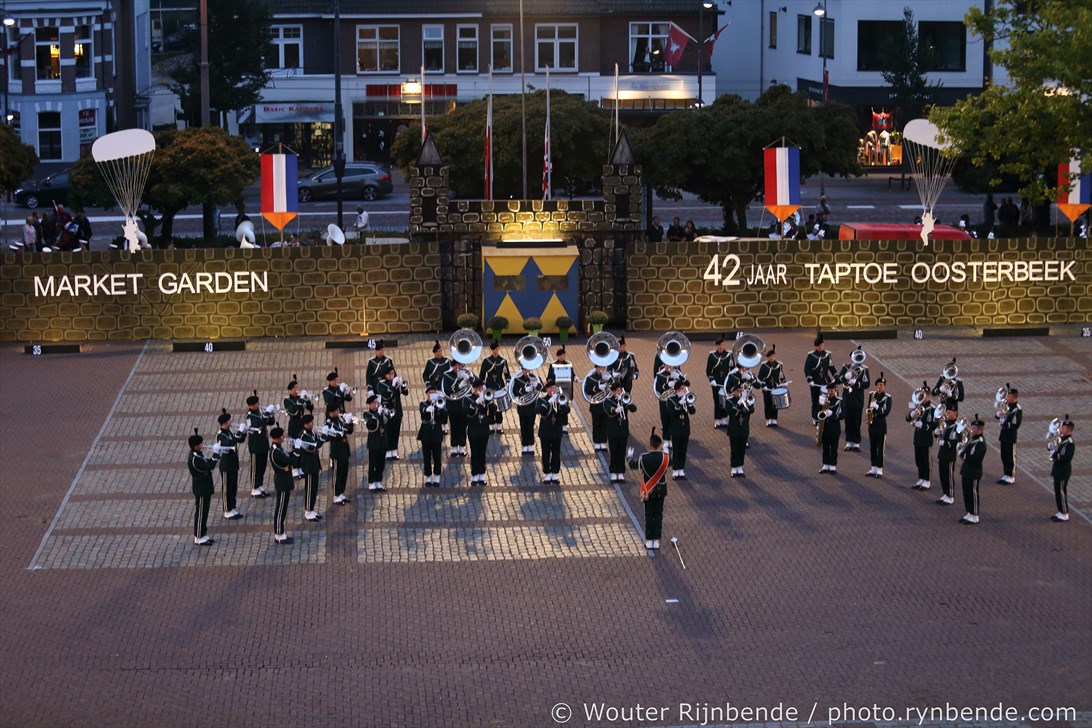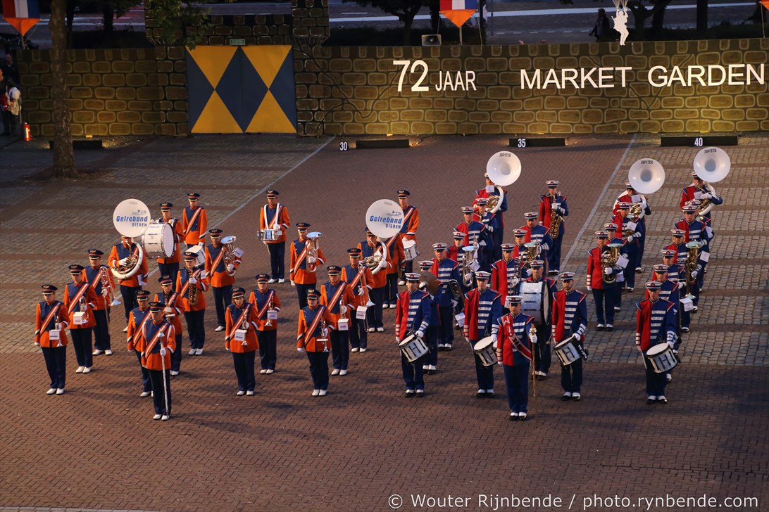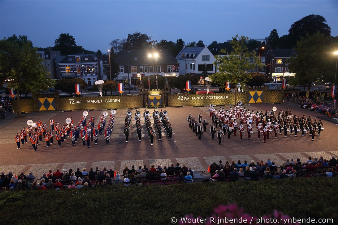 17 september 2016 - 72 jaar Market Garden - 42 jaar Taptoe Oosterbeek. In het voorprogramma warmde De Onbekend Band het publiek op voor de 42e editie van de Taptoe Oosterbeek. Ook dit jaar weer geweldige muziekkorpsen: Junioren - Chr. Muziekvereniniging DVS - Katwijk, Drum- en showfanfare Gelreband - Dieren, Airborne Malletband uit Oosterbeek, March & Showband Rheden, Showband Irene - Ede, Marchingband - Chr. Muziekvereniniging DVS - Katwijk.