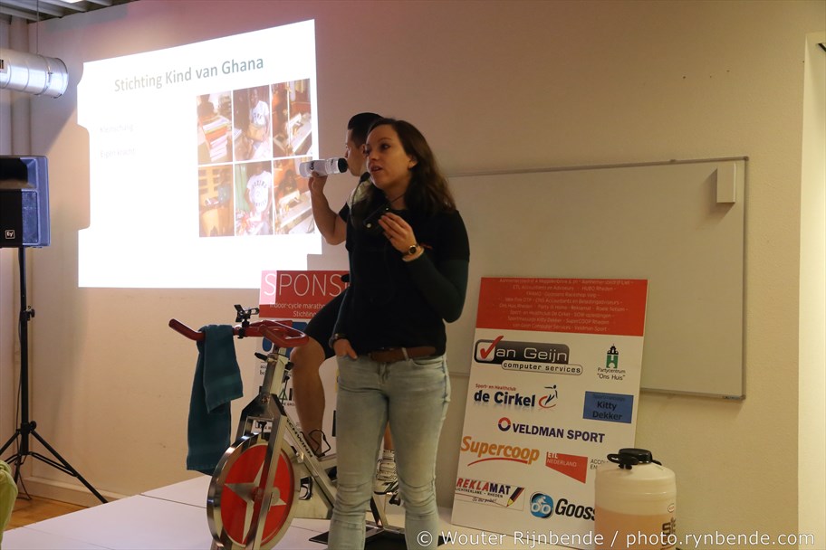 22 januari 2017 - Vijf uur lang werd er tijdens de Indoor Cycle Marathon bij De Cirkel in Rheden gefietst voor Stichting Kind van Ghana. De opbrengst van deze actie, bij elkaar getrapt door de fietsers, de massages van Kitty & Miny, een pasta maaltijd en diverse sponsoren bedroeg in totaal EUR 2.240,-