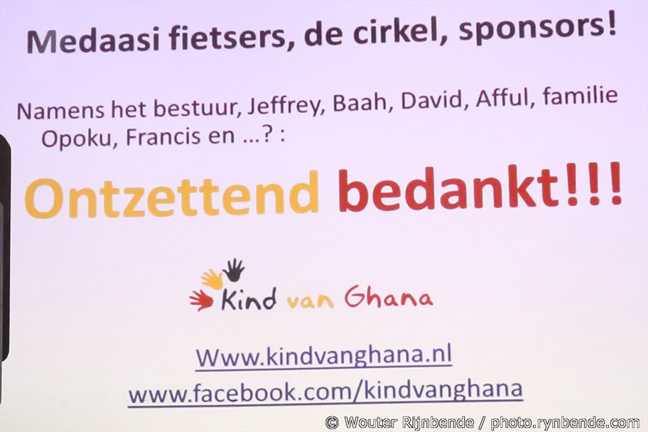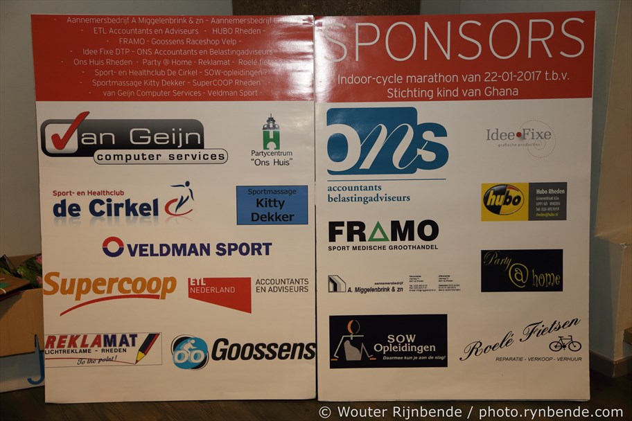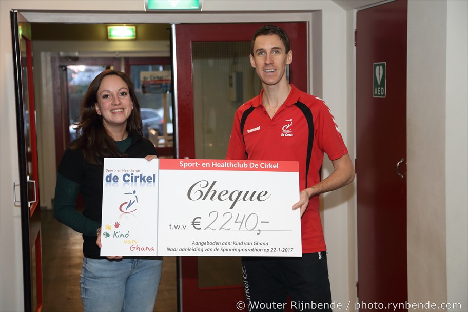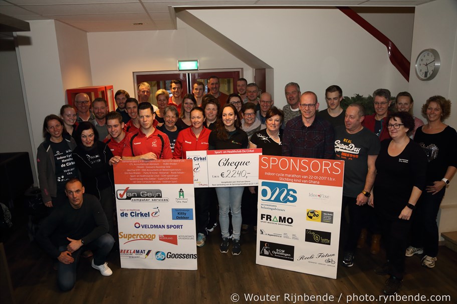 22 januari 2017 - Vijf uur lang werd er tijdens de Indoor Cycle Marathon bij De Cirkel in Rheden gefietst voor Stichting Kind van Ghana. De opbrengst van deze actie, bij elkaar getrapt door de fietsers, de massages van Kitty & Miny, een pasta maaltijd en diverse sponsoren bedroeg in totaal EUR 2.240,-