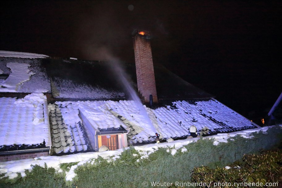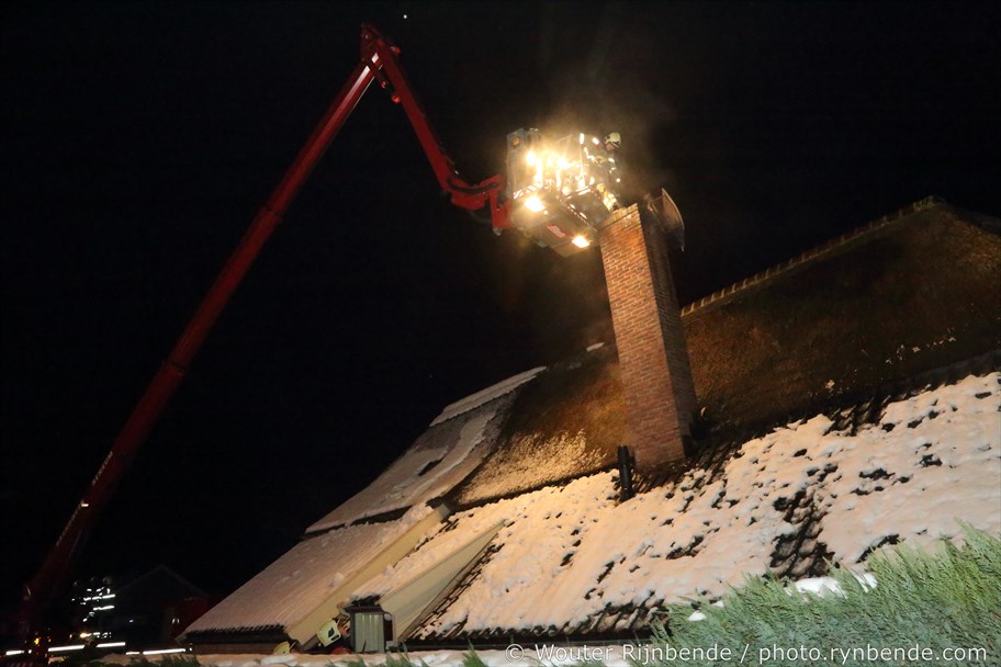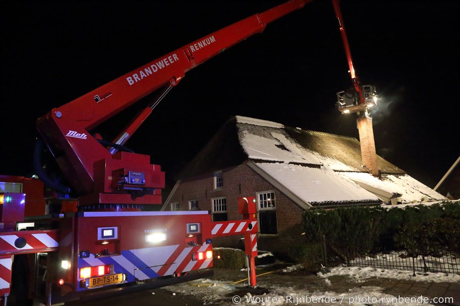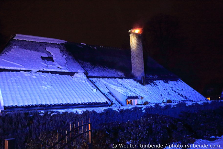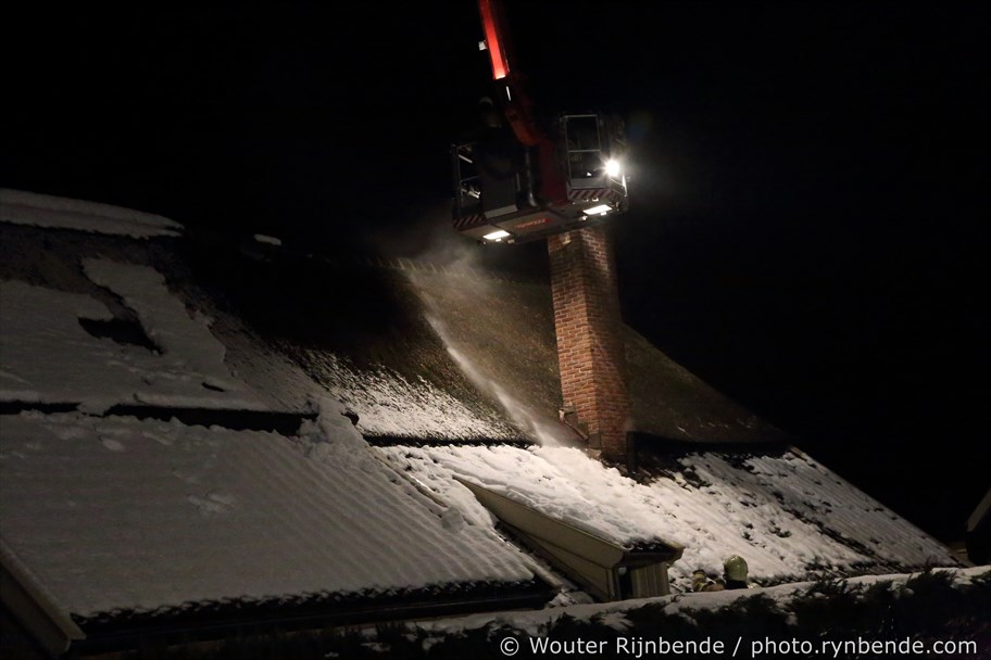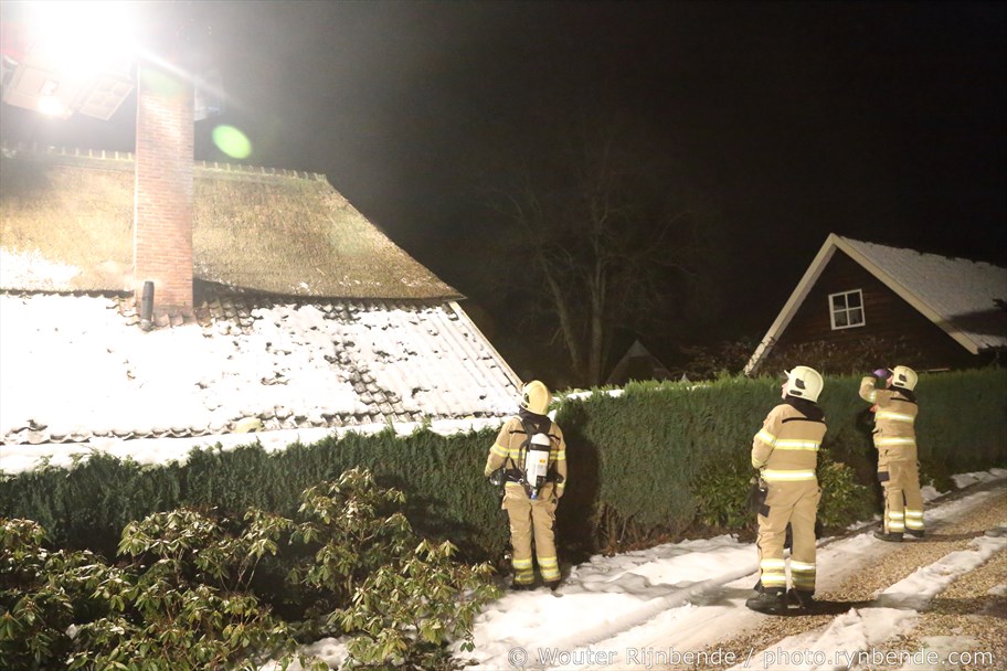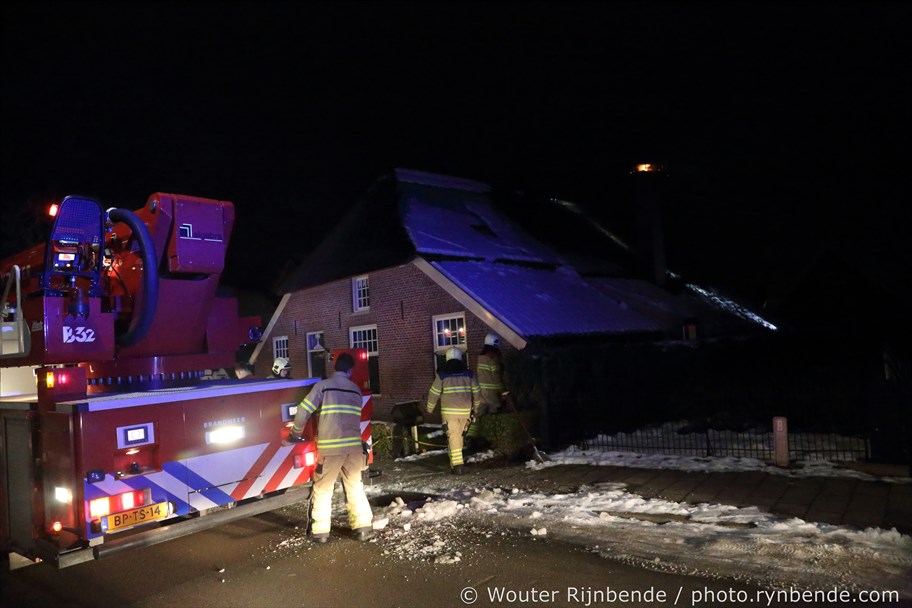 23 januari 2017 - Aan de Binnenweg in Ellecom woedde maandagavond een felle schoorsteenbrand bij een boerderij met een rieten dak.
