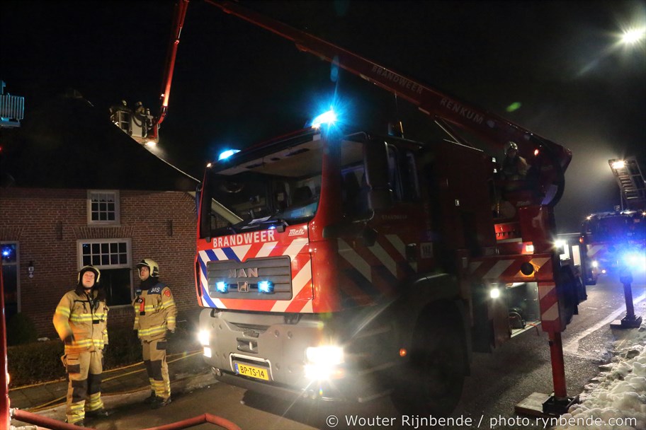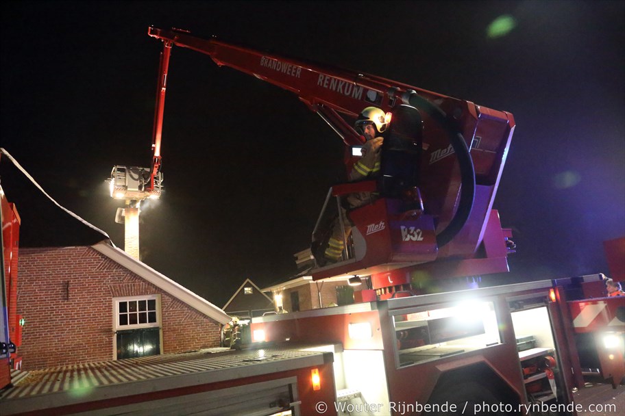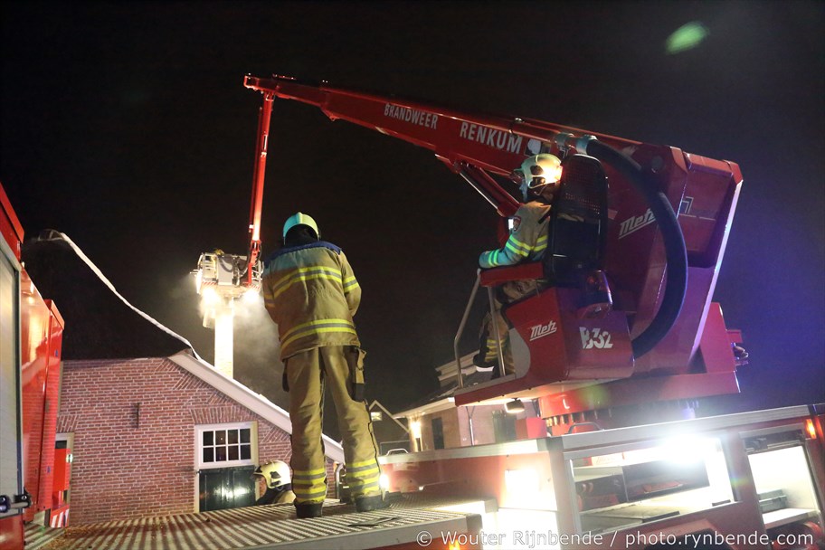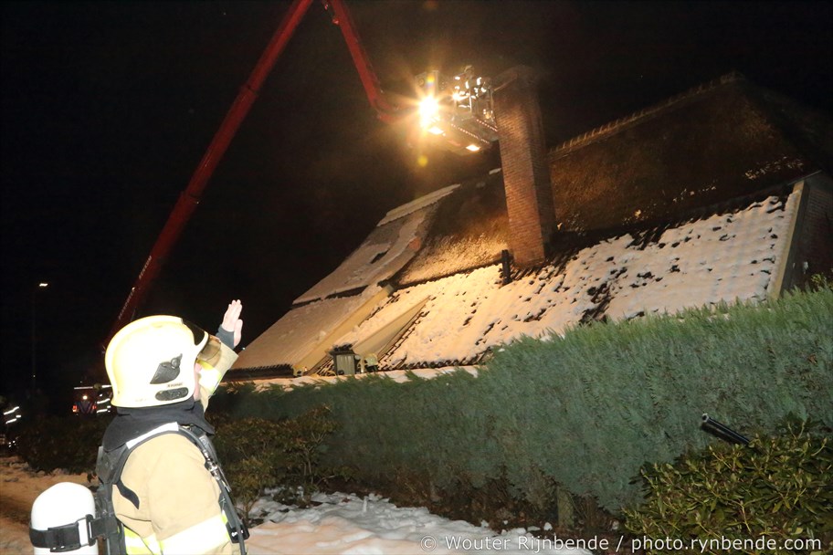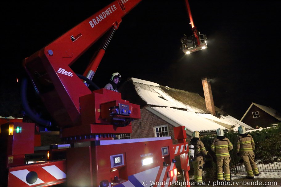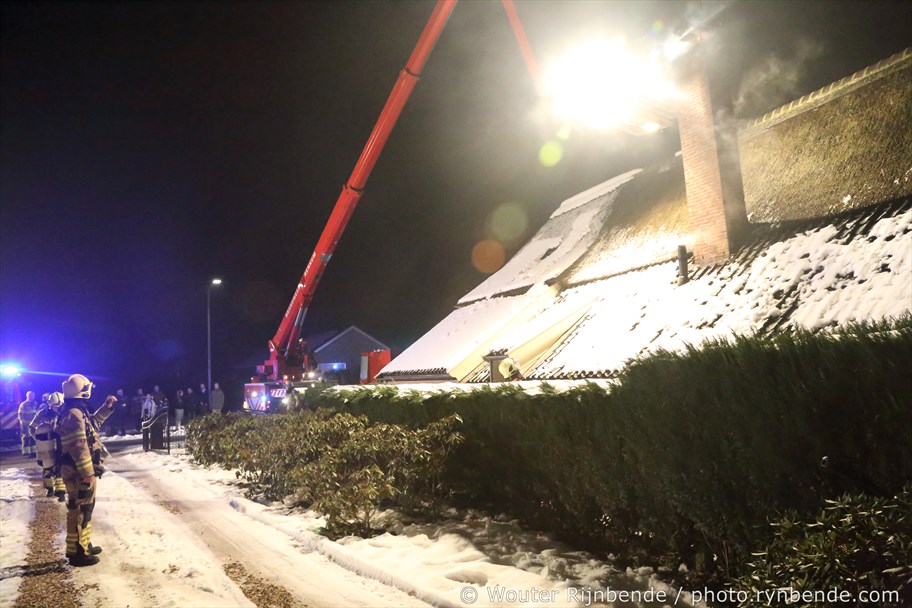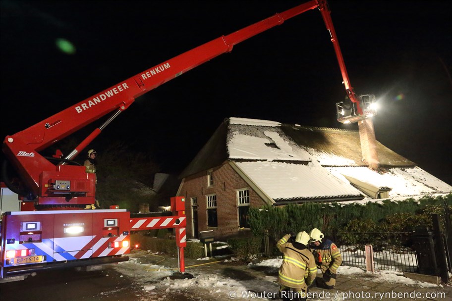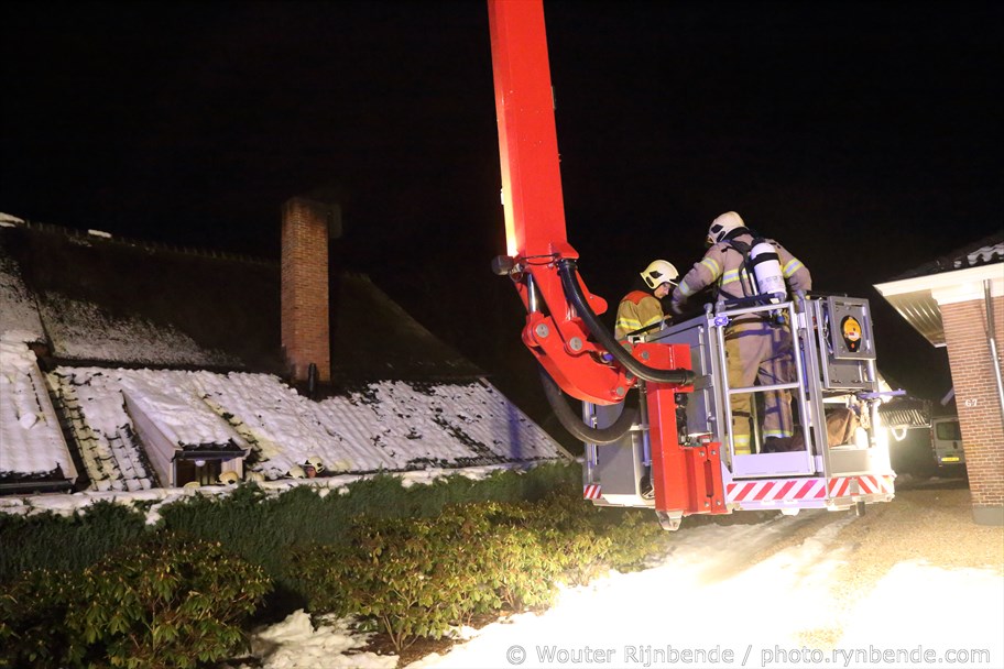 23 januari 2017 - Aan de Binnenweg in Ellecom woedde maandagavond een felle schoorsteenbrand bij een boerderij met een rieten dak.