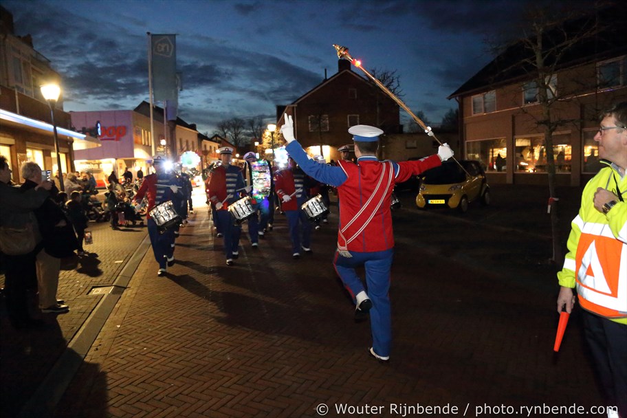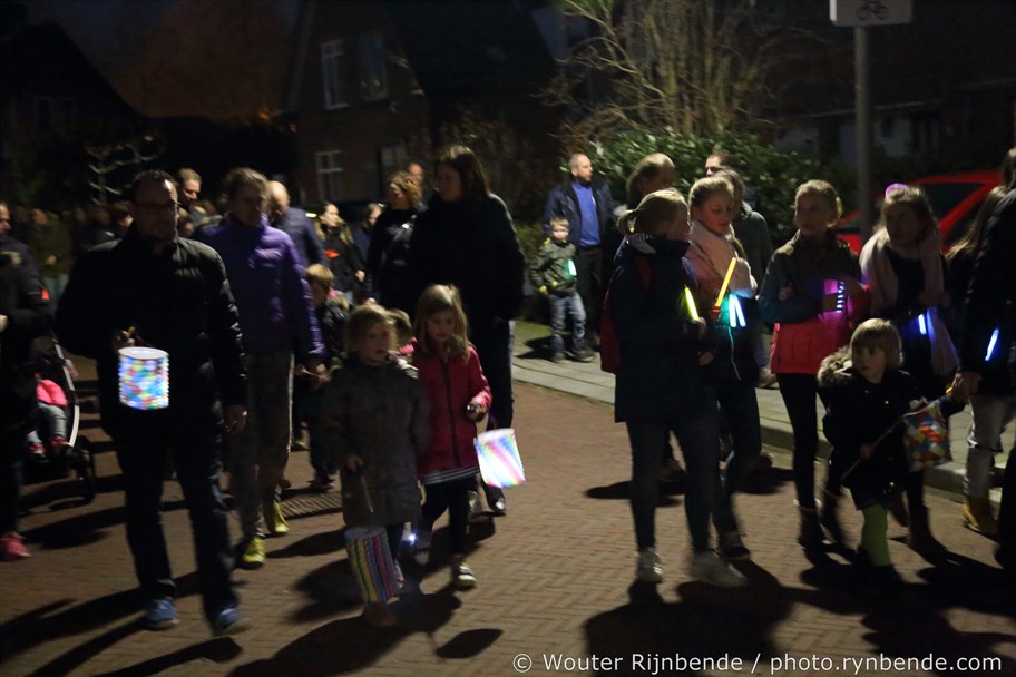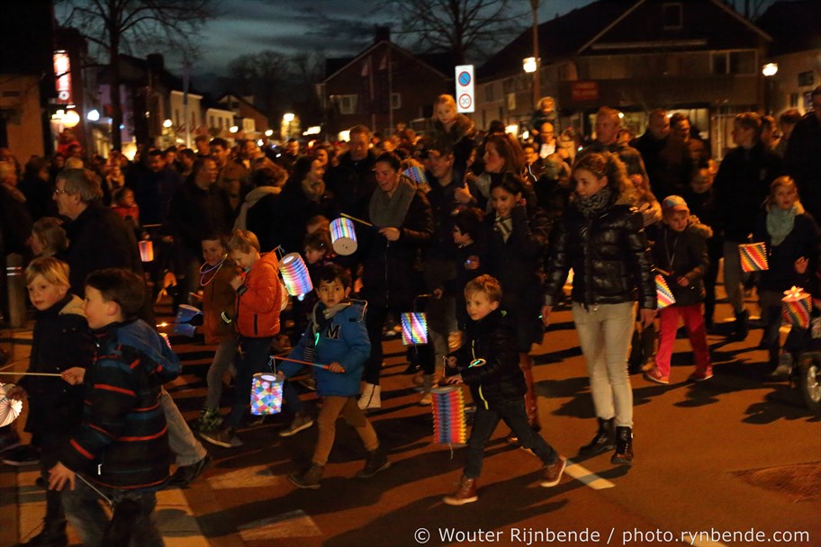 10 maart 2017 - Mede vanwege het schitterende weer kwamen veel kinderen met hun ouders meelopen in de Rhedense Lampionnenoptocht.
