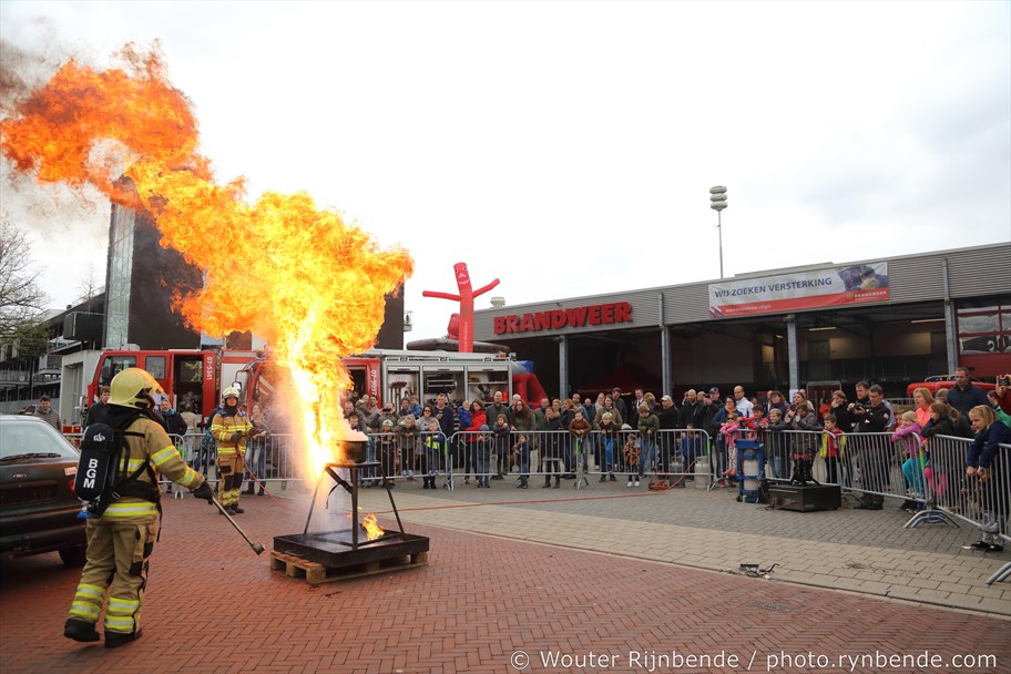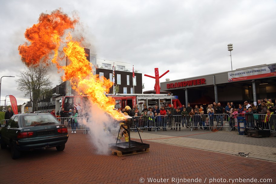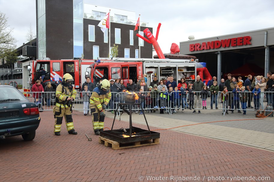 22 april 2017 - De vrijwillige brandweerpost te Velp opende zaterdag 22 april haar deuren voor het publiek. Bezoekers konden de brandweervoertuigen bekijken, kinderen konden bij de Jeugdbrandweer Rheden zelf blussen, er was een springkussen en diverse informatiestands. Buiten werden demonstraties verzorgd. Zo werd een slachtoffer van een auto ongeval uit zijn auto geknipt en werd ook getoond hoe je wel (en vooral NIET) een vlam in de pan moet blussen.