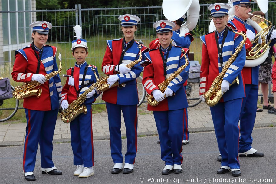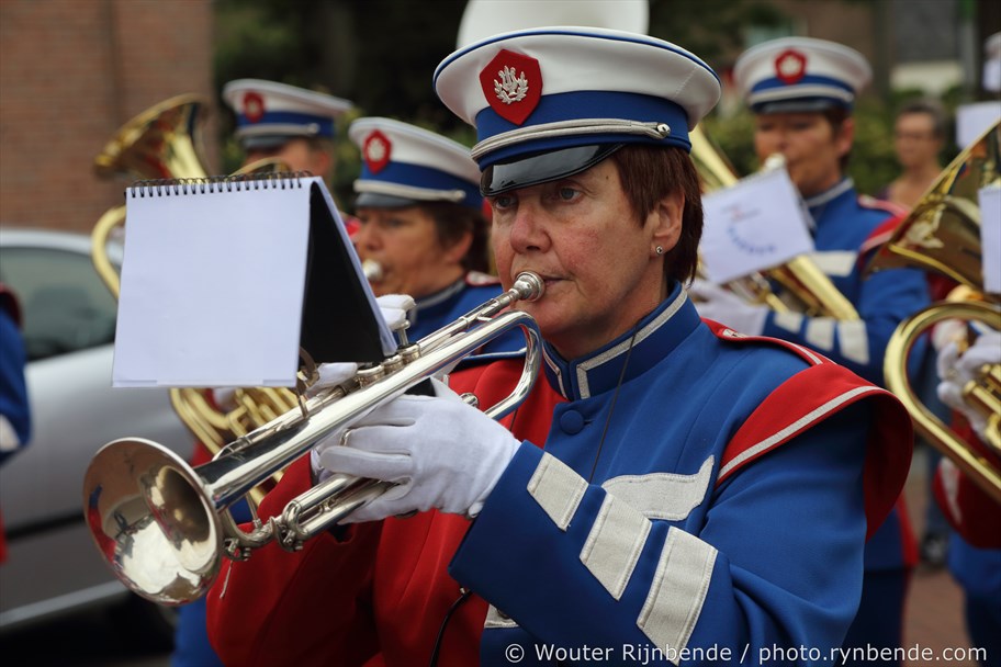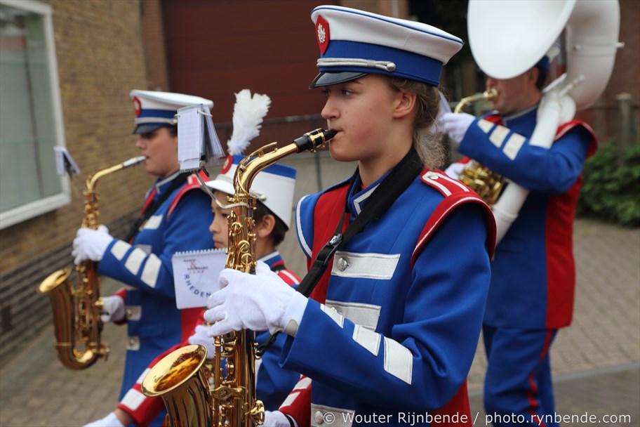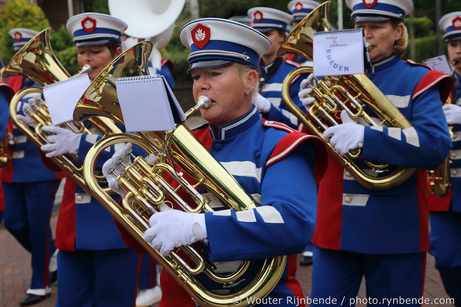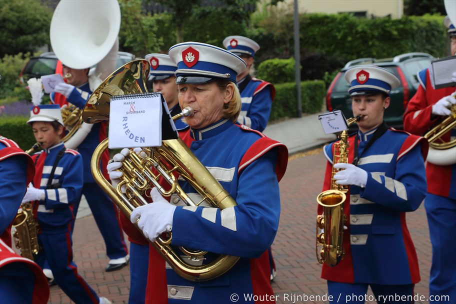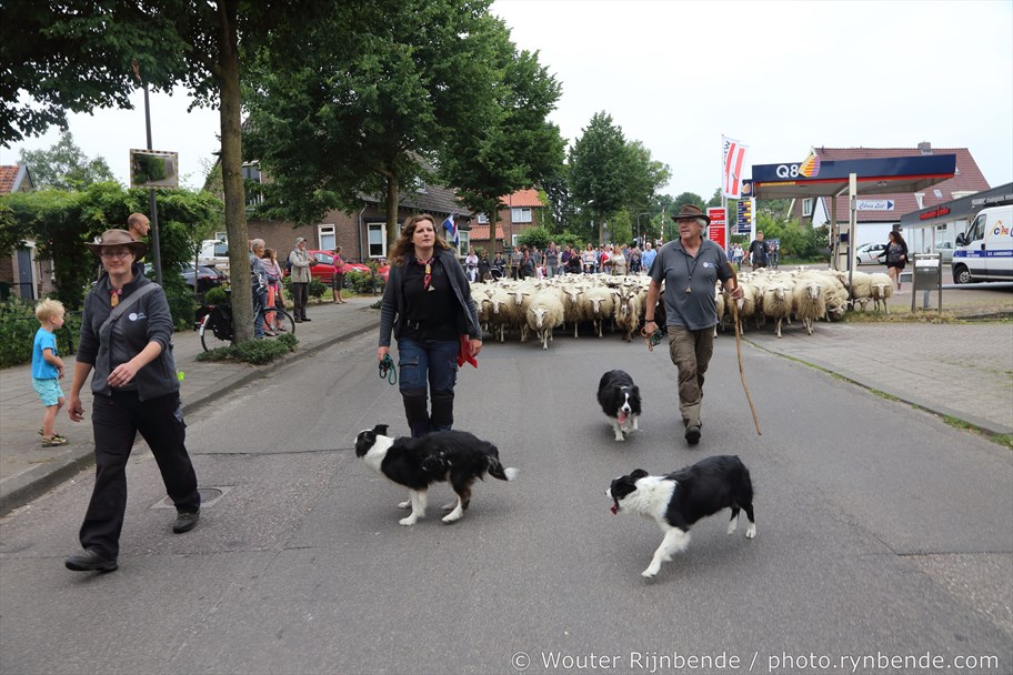 17 juni 2017 - De 50e editie van het Rhedense Schaapscheerdersfeest is vanmorgen van start gegaan. Om 09.00 's morgens werden de schaapjes het dorp ingeleid, muzikaal begeleid door March & Showband Rheden. Burgemeester Petra van Wingerden-Boers overhandigde voor Het Wapen van Rheden de schaar aan herderin Cynthia Berendsen. Samen knipten ze daarna het eerste schaap. Bij de opening van het feest speelde ook het Rhedens Fanfare Corps.
