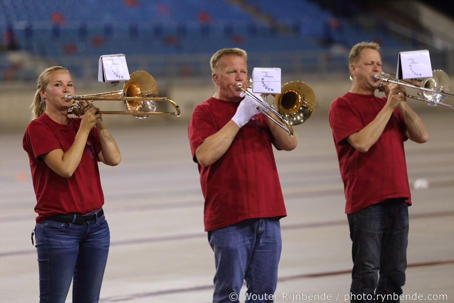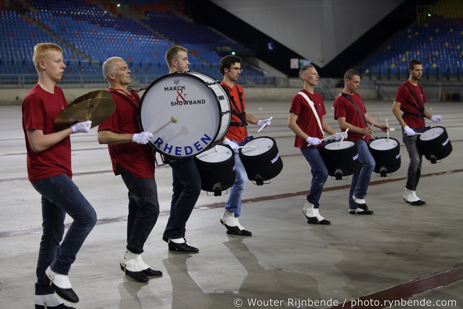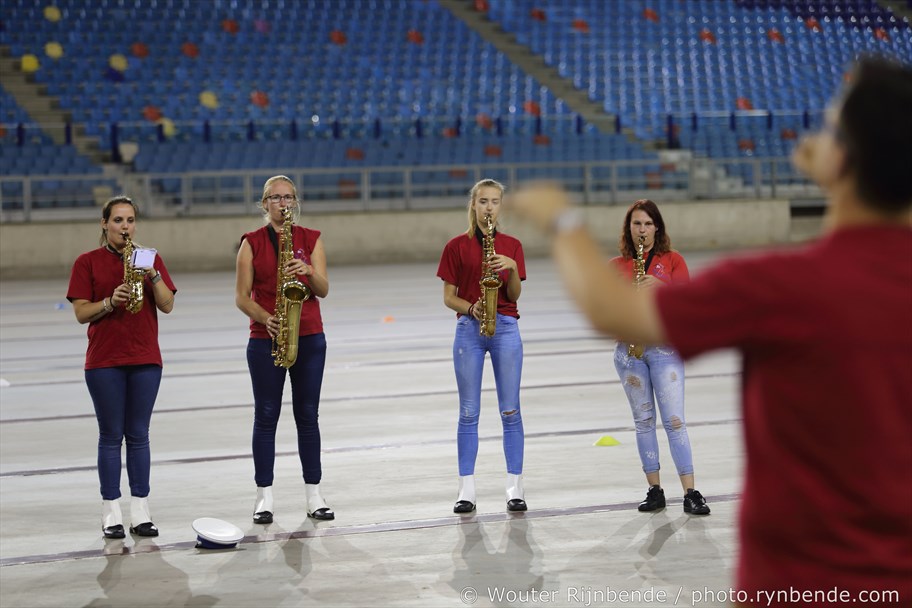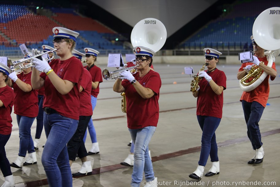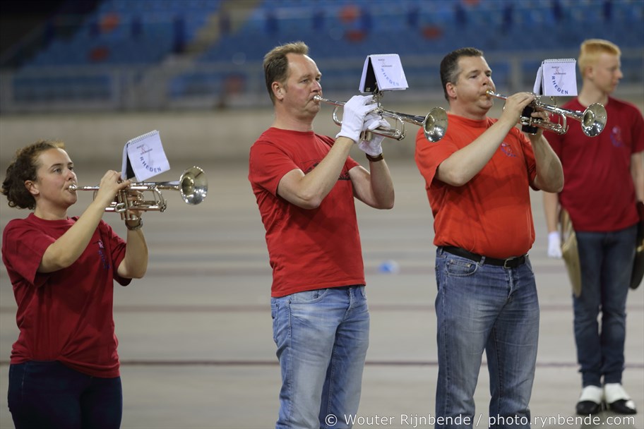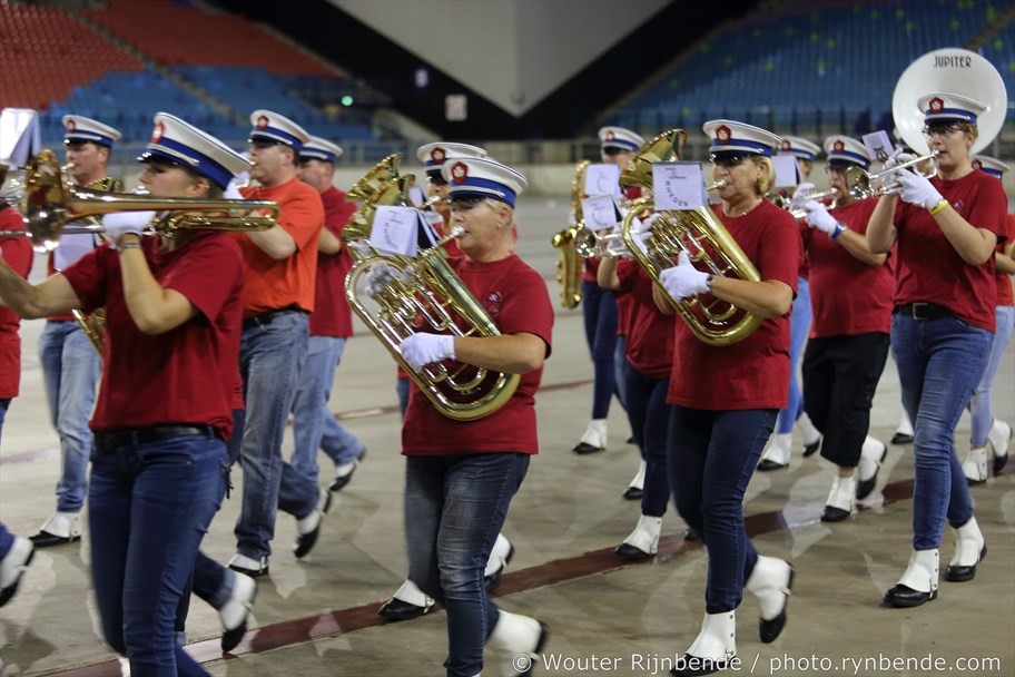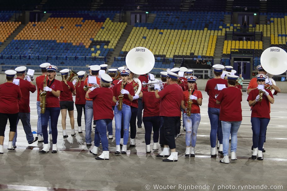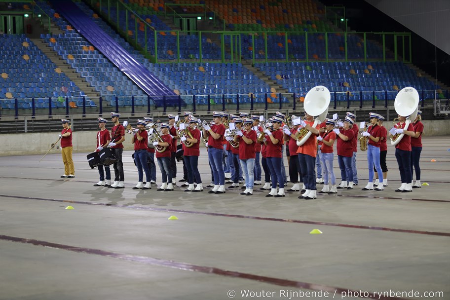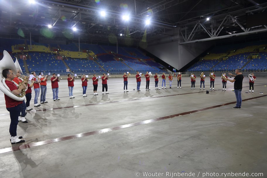 17 juli 2017 - En als je dan in de voorbereiding op het Wereld Muziek Concours nog de mogelijkheid hebt om in een echt stadion te kunnen oefenen, dan grijp je dat natuurlijk met twee handen vast. March- & Showband Rheden vandaag druk aan het repeteren in Gelredome Arnhem.