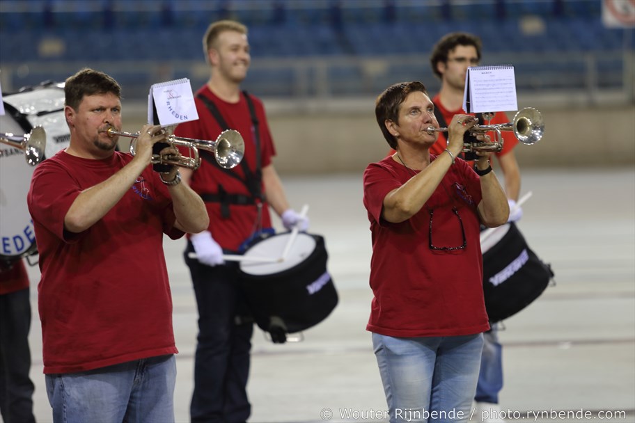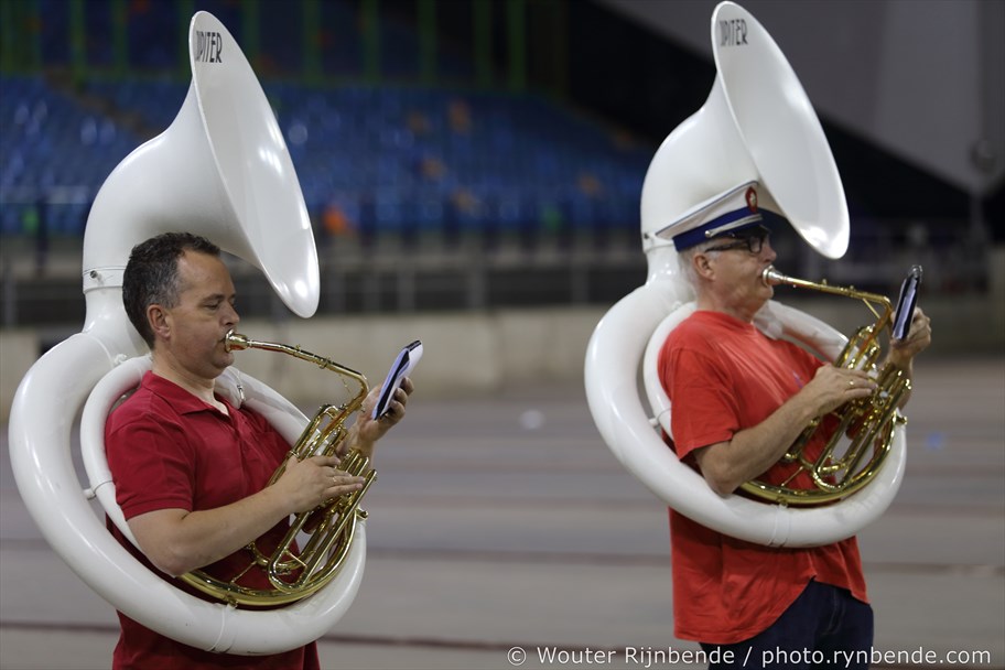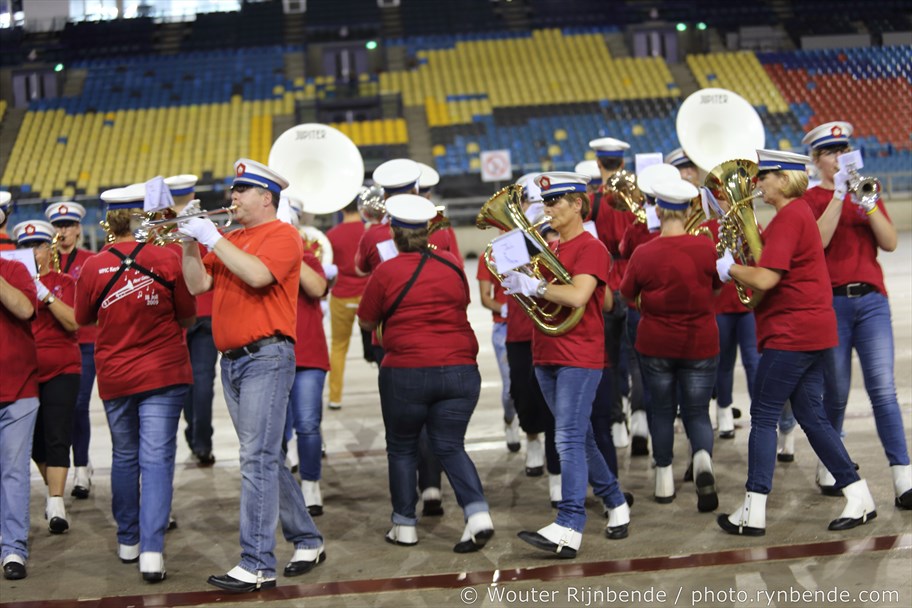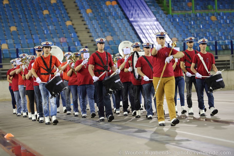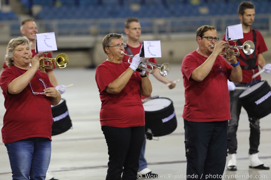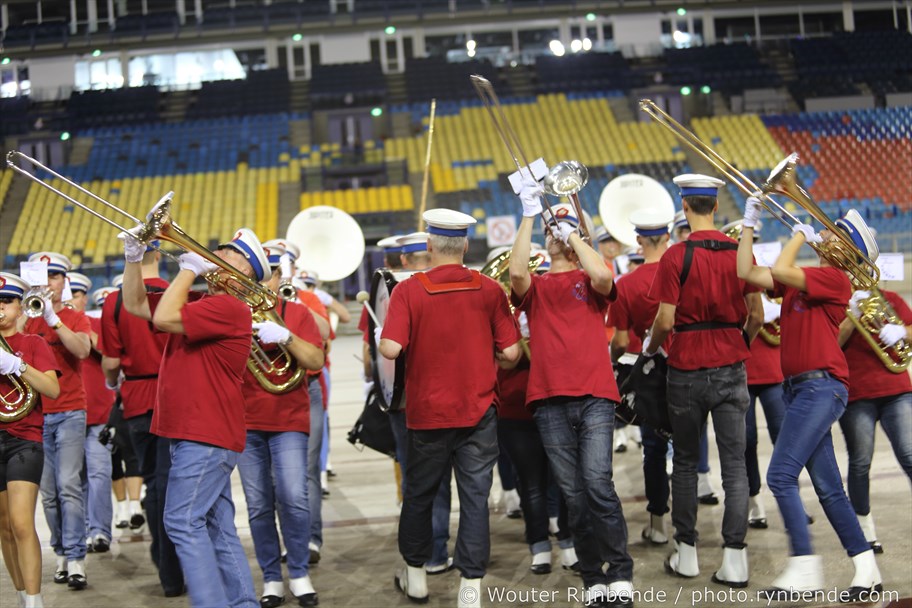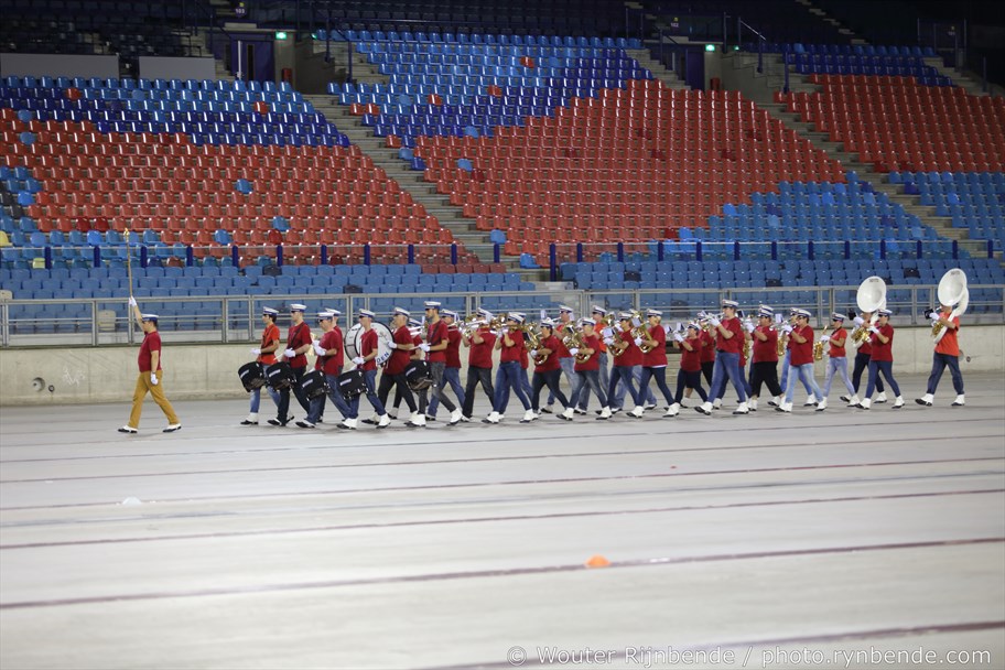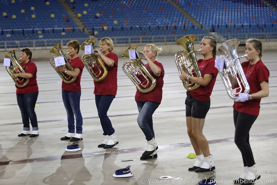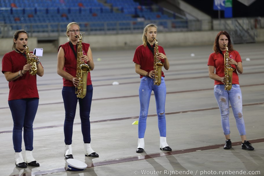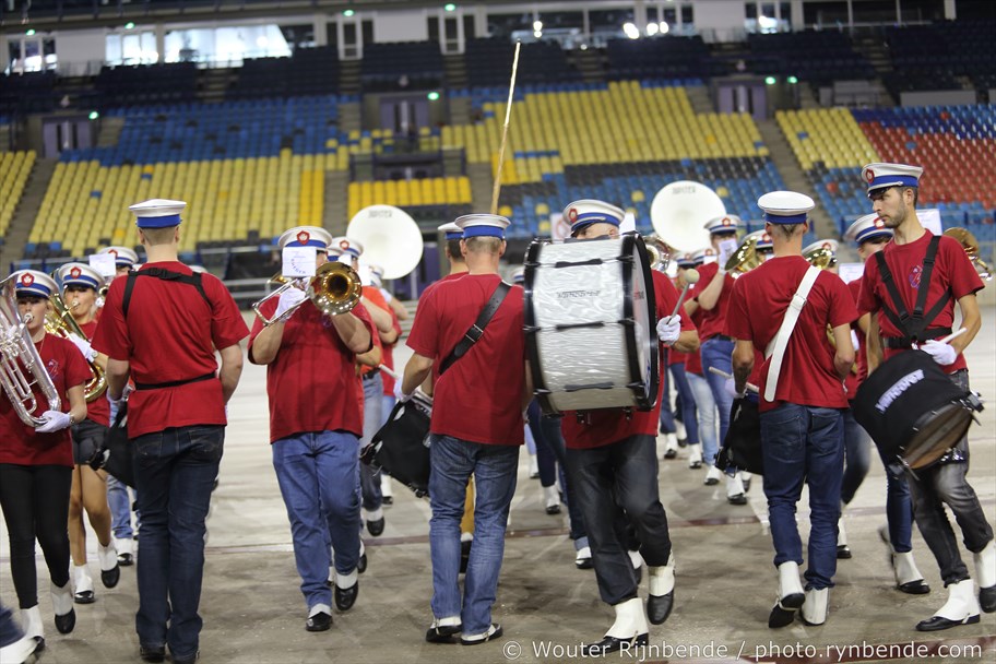 17 juli 2017 - En als je dan in de voorbereiding op het Wereld Muziek Concours nog de mogelijkheid hebt om in een echt stadion te kunnen oefenen, dan grijp je dat natuurlijk met twee handen vast. March- & Showband Rheden vandaag druk aan het repeteren in Gelredome Arnhem.