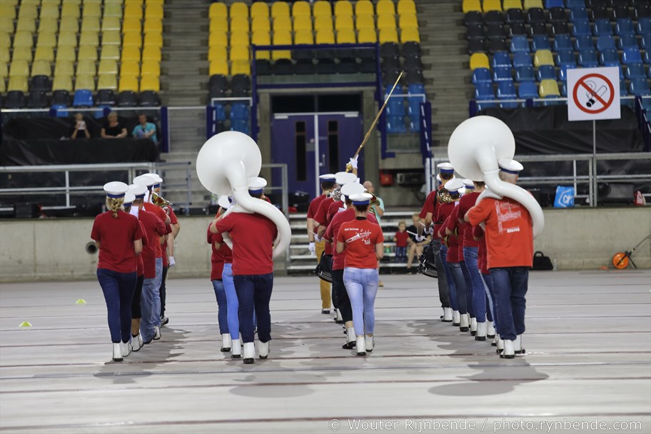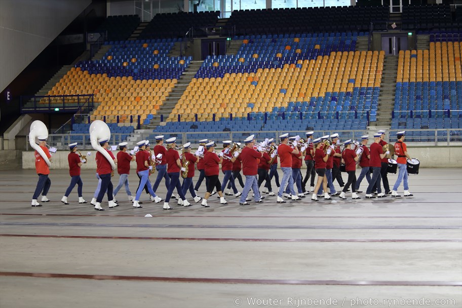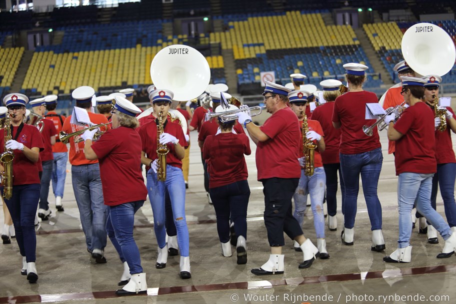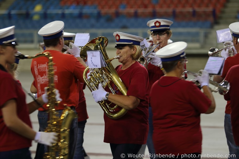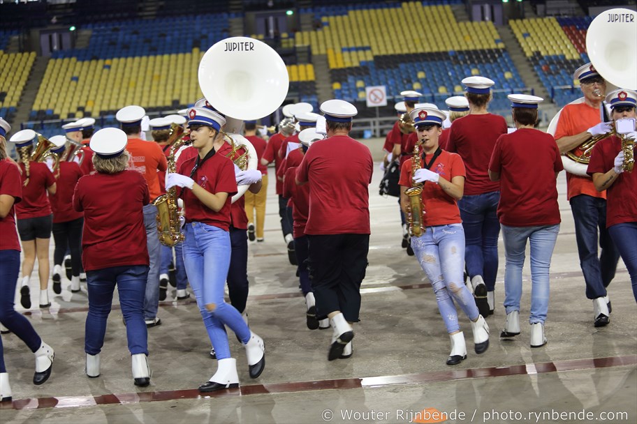17 juli 2017 - En als je dan in de voorbereiding op het Wereld Muziek Concours nog de mogelijkheid hebt om in een echt stadion te kunnen oefenen, dan grijp je dat natuurlijk met twee handen vast. March- & Showband Rheden vandaag druk aan het repeteren in Gelredome Arnhem.