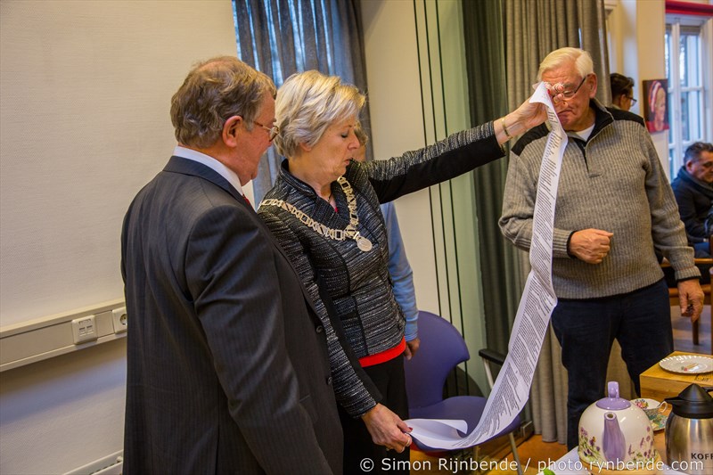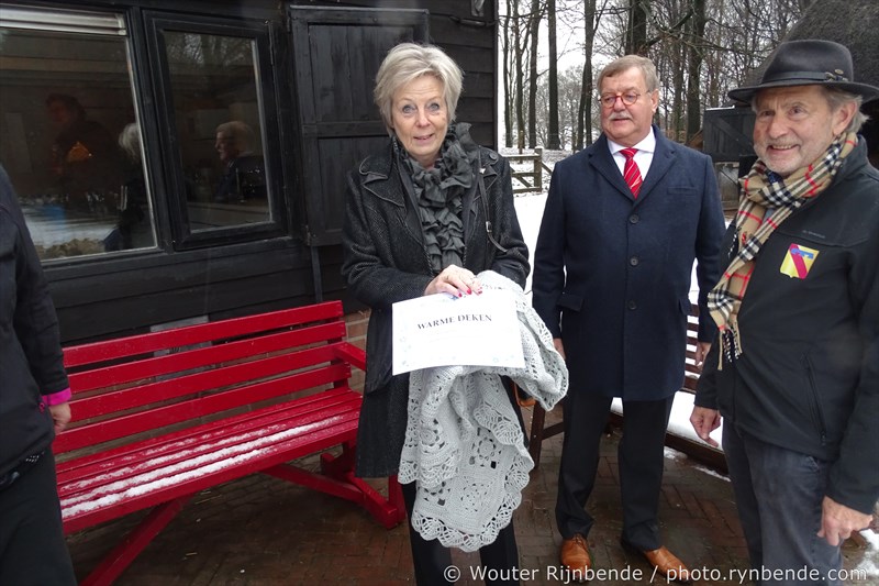 9 december 2017 - Burgemeester Petra van Wingerden-Boers nam afgelopen zaterdag afscheid van Rheden. Het programma begon om 13:30 bij de Rhedense Schaapskooi alwaar ze o.a. een gehaakte warme deken aangeboden kreeg. De burgemeester was er erg blij mee: 'precies mijn kleur'! Ook werden vanuit de Schaapskudde presentjes overhandigd. Daarna vertrok de burgemeester en haar gevolg naar het Mr. B. van Leeuwenplein.