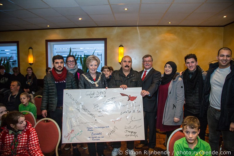 9 december 2017 - Burgemeester Petra van Wingerden-Boers nam afgelopen zaterdag afscheid van Rheden. Het programma begon om 13:30 bij de Rhedense Schaapskooi alwaar ze o.a. een gehaakte warme deken aangeboden kreeg. De burgemeester was er erg blij mee: 'precies mijn kleur'! Ook werden vanuit de Schaapskudde presentjes overhandigd. Daarna vertrok de burgemeester en haar gevolg naar het Mr. B. van Leeuwenplein.
