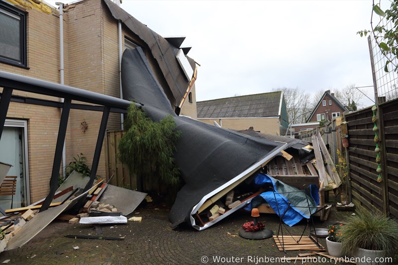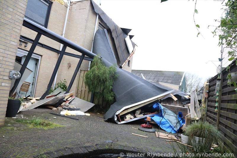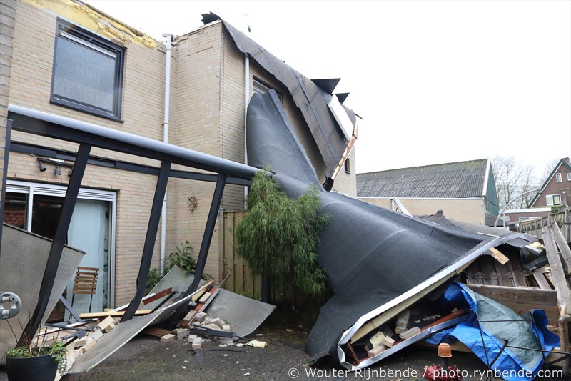 18 januari 2018 - Bewoners aan de Smederijstraat in Rheden kregen vanmorgen de schrik van hun leven toen zij plots een hard knal hoorden. "Het was alsof er een bom in sloeg". In eerste instantie dachten ze nog dat het enkel de serre was die ingestort was, maar toen ze buiten kwamen, bleek het vorig jaar vernieuwde dak van de woning te zijn gedrukt.