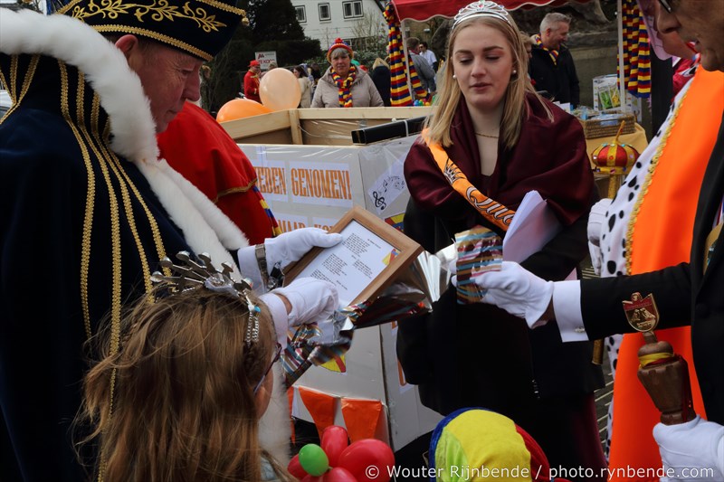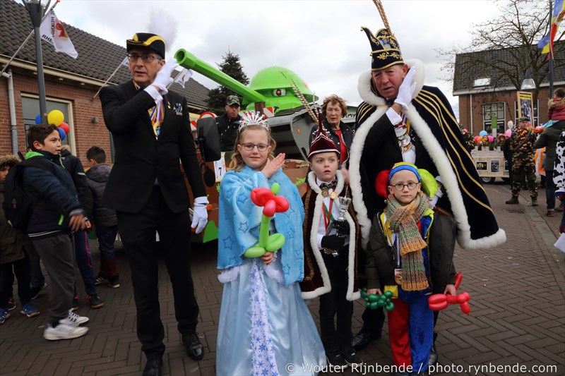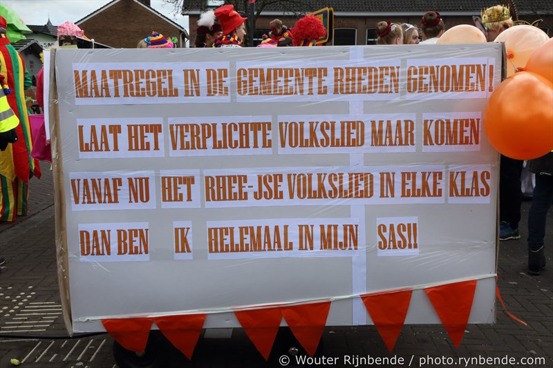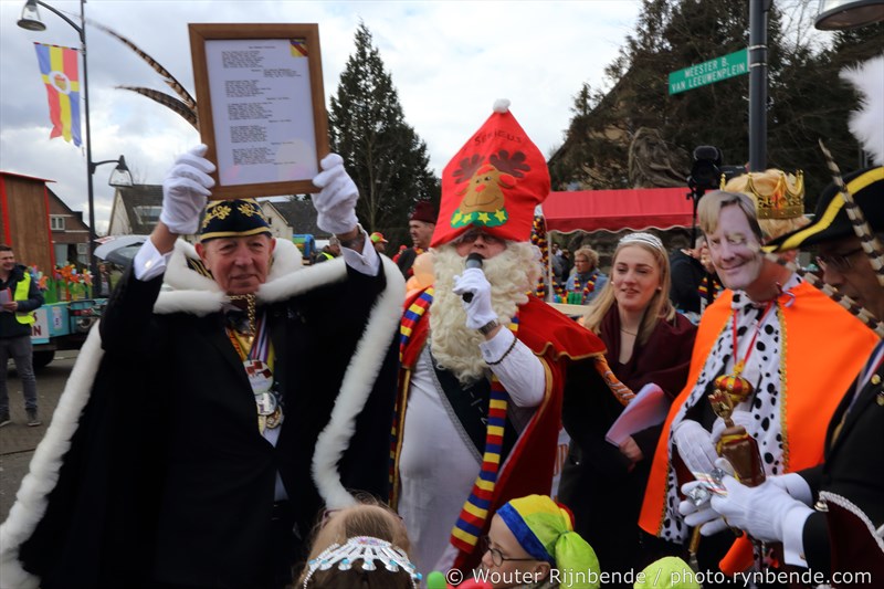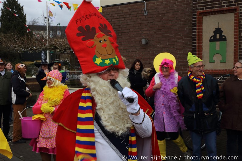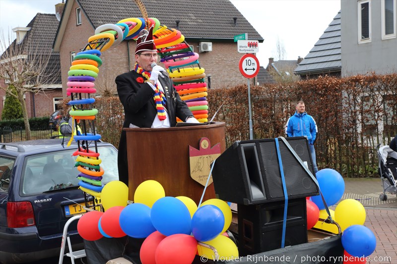 11 februari 2018 - Klûnen door de Groenestraat, een Prinsenwagen die z'n wielen kwijt raakt, een hagelbui tijdens de optocht... niets kon de Carnavalsoptocht van de Heiknüüters er van weerhouden er een groot feest van te maken. En als klap op de vuurpijl was zelfs Koning Willem Alexander naar Rheden afgereisd om de optocht te openen met een Rhedens volkslied.