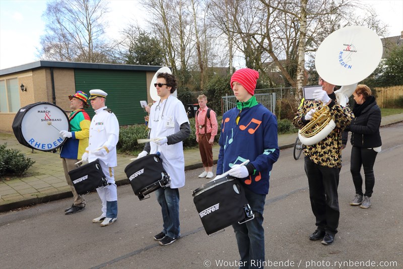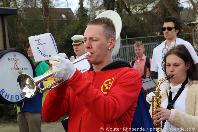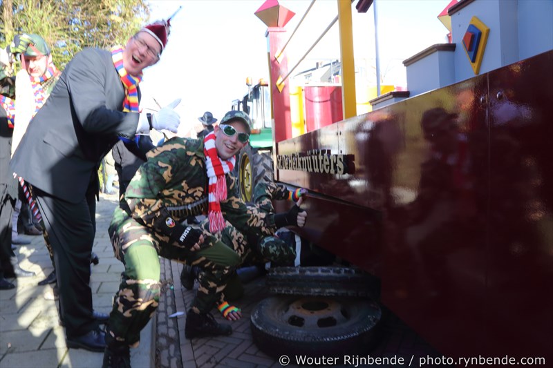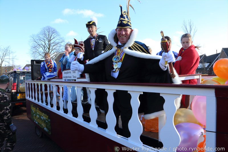 11 februari 2018 - Klûnen door de Groenestraat, een Prinsenwagen die z'n wielen kwijt raakt, een hagelbui tijdens de optocht... niets kon de Carnavalsoptocht van de Heiknüüters er van weerhouden er een groot feest van te maken. En als klap op de vuurpijl was zelfs Koning Willem Alexander naar Rheden afgereisd om de optocht te openen met een Rhedens volkslied.