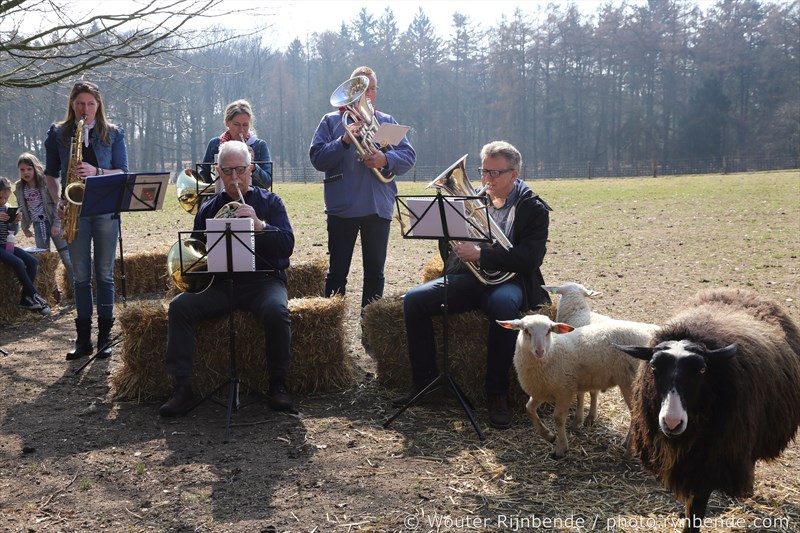 25 maart 2018 - Het mooie weer trok dit jaar duizenden bezoekers naar Lammetjesdag bij de Rhedense Schaapskooi. Voor kinderen was er van alles te doen: een groot springkussen, schaapjes kleuren en tekenen, een mini-zweefmolen, ponyritjes, een zwevend tapijt, schminken en spelen met wol. Het Rhedens Fanfare Corps gaf een concert tussen de schaapjes.
