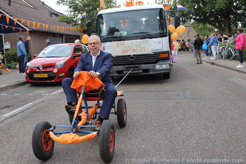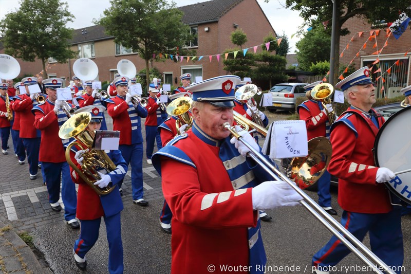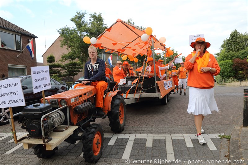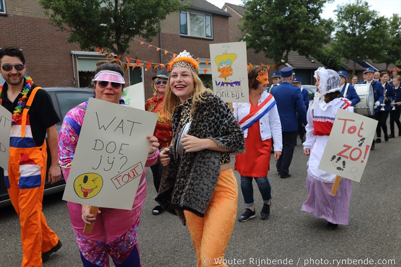 22 juni 2018 - Fotoverslag van de oranje optocht door Spankeren. De optocht werd muzikaal begeleid door muziekvereniging Wilhelmina uit Spankeren, ondersteund door MDVS Doesburg en March & Showband (Jong) Rheden uit Rheden.