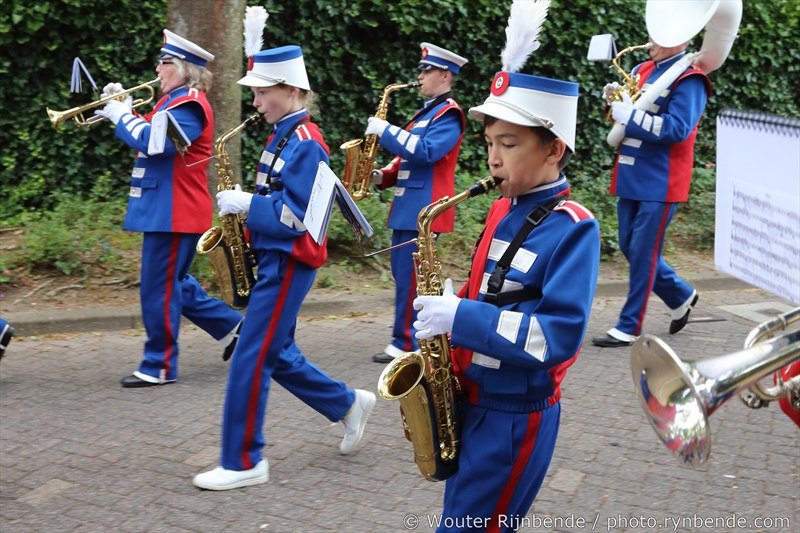 22 juni 2018 - Fotoverslag van de oranje optocht door Spankeren. De optocht werd muzikaal begeleid door muziekvereniging Wilhelmina uit Spankeren, ondersteund door MDVS Doesburg en March & Showband (Jong) Rheden uit Rheden.
