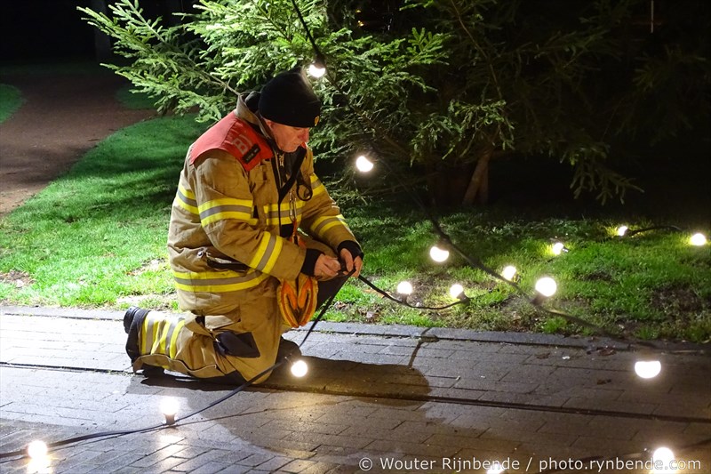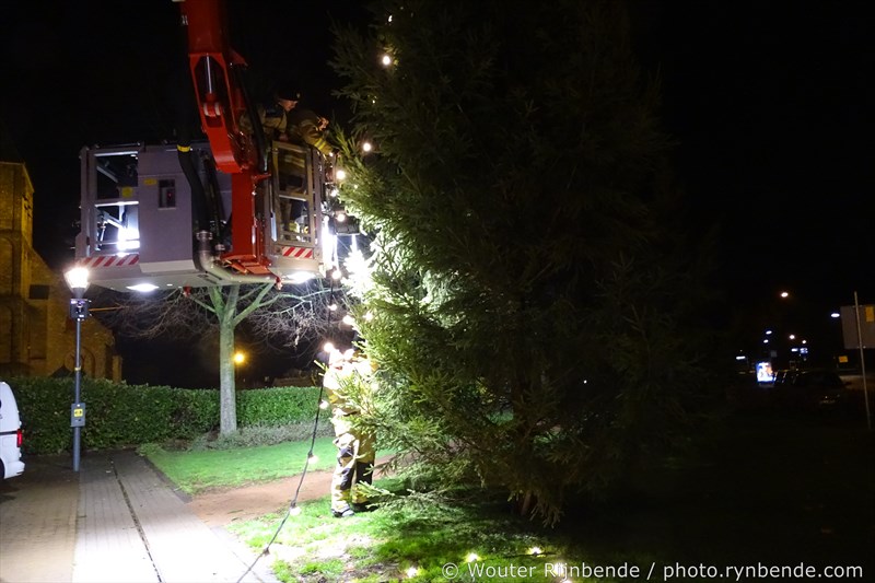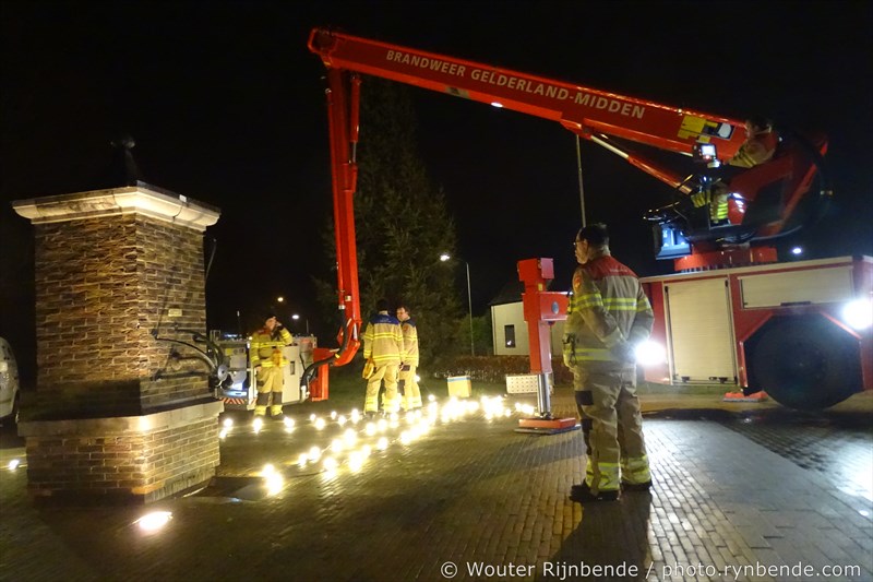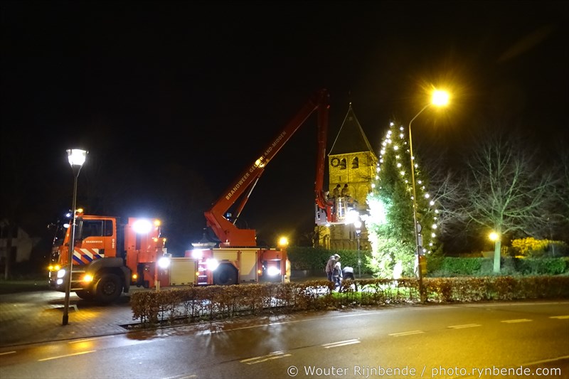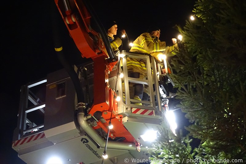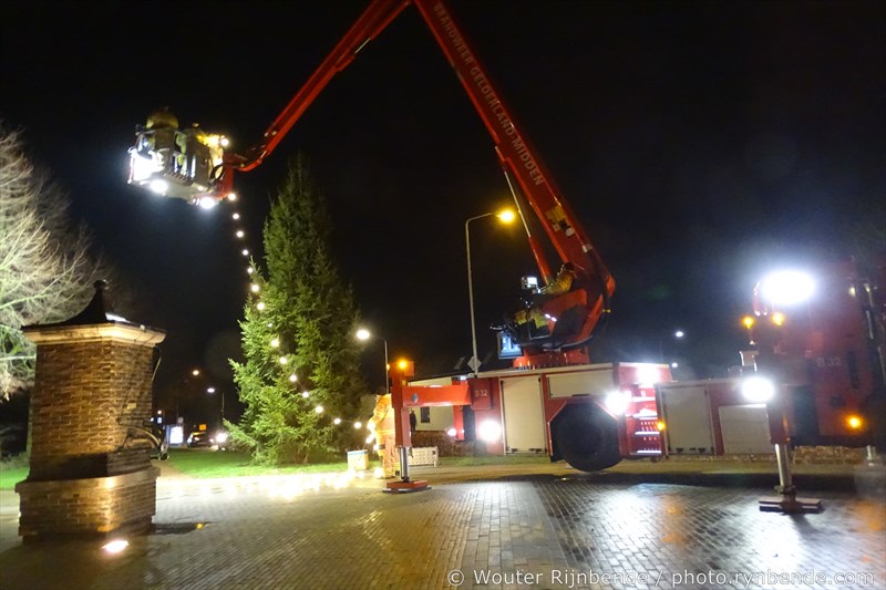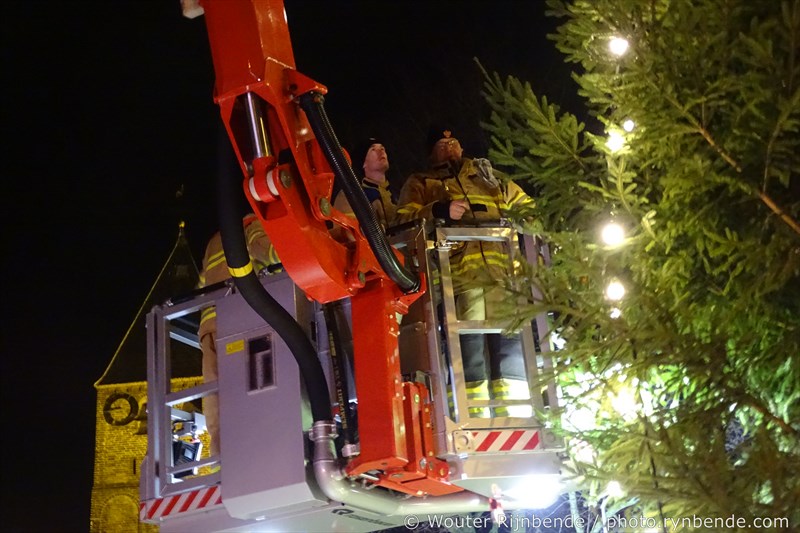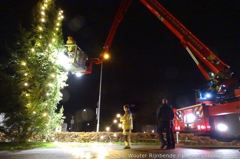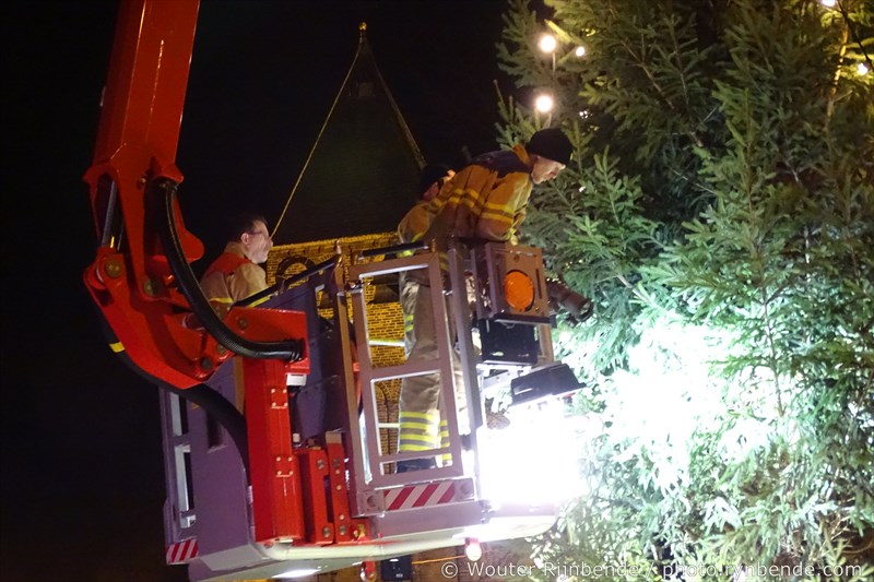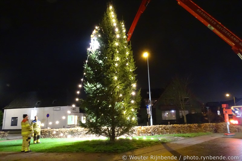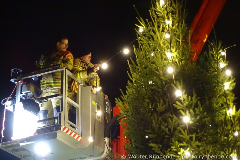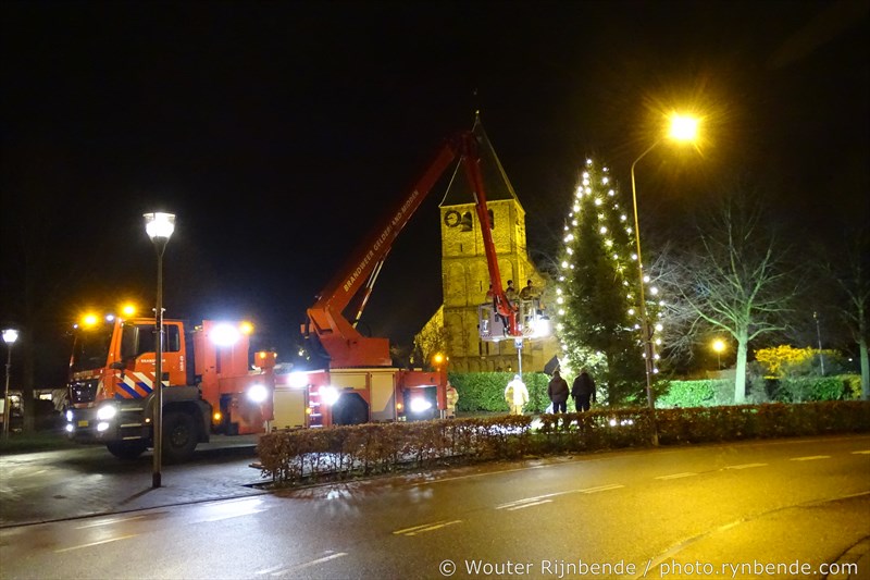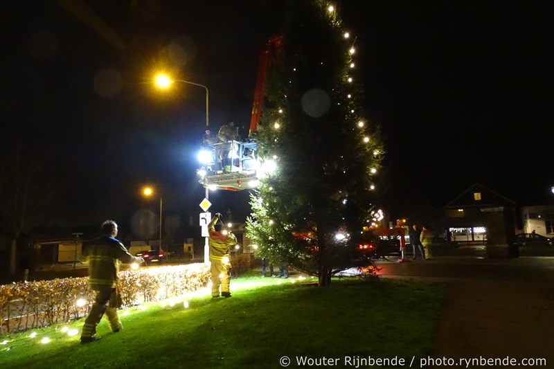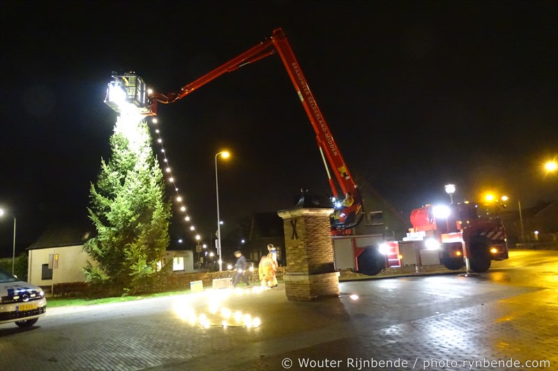 6 december 2018 - De vrijwillige brandweer van Dieren & Rheden heeft donderdagavond lampjes opgehangen in de kerstboom op het plein bij De Pomp in Rheden. De boom is mogelijk gemaakt door bijdragen van Hans Westdijk van Pannekoekhuis Strijland, Hoveniersbedrijf Kapona, Drukkerij Hesse, Reklamat Reklame en de Vrijwillige Brandweer Dieren. JD Security systems houdt met een camerasysteem een oogje in het zeil.