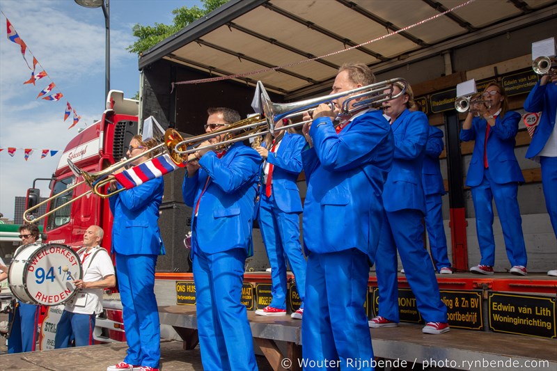 30 juni 2019 - Aan het Mr. Bart van Leeuwenplein werd zondag 30 juni de 21e editie van de Rhedense Dweildag georganiseerd. Mede organiserend dweilorkest 94½ vierde dit jaar haar 25 jarig jubileum en had zich tijdens hun 2e optreden deze dag helemaal in het nieuw gestoken.