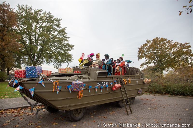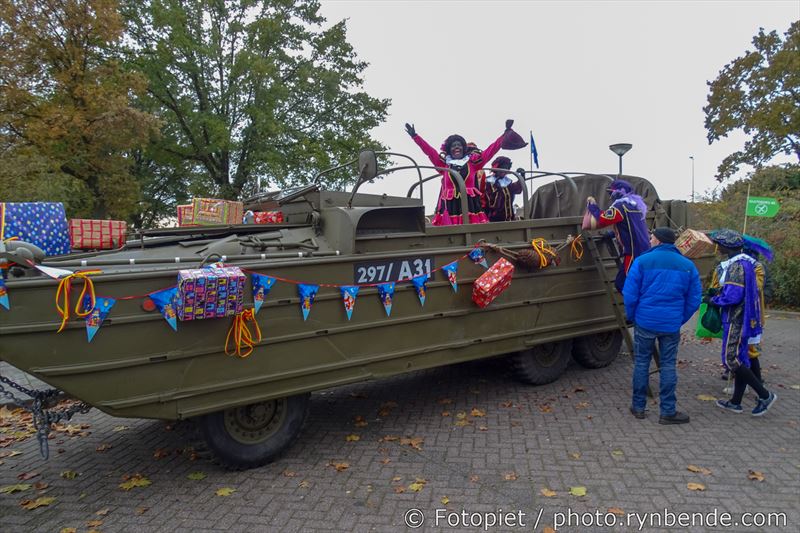 16 november 2019 - Sinterklaas is weer in Rheden! Tóch met de boot, maar over het land. In een amphibievoertuig en een aantal Jeeps van Keep them Rolling (in de stijl van 75 bevrijding Rheden) arriveerde de goedheiligman bij een druk bezochte Muziektent aan de Havelandseweg.